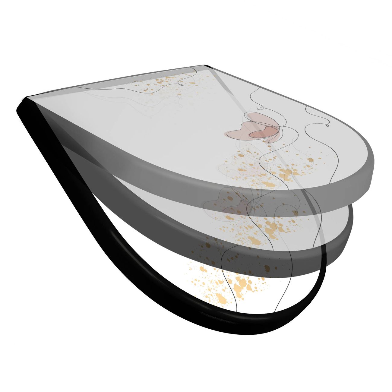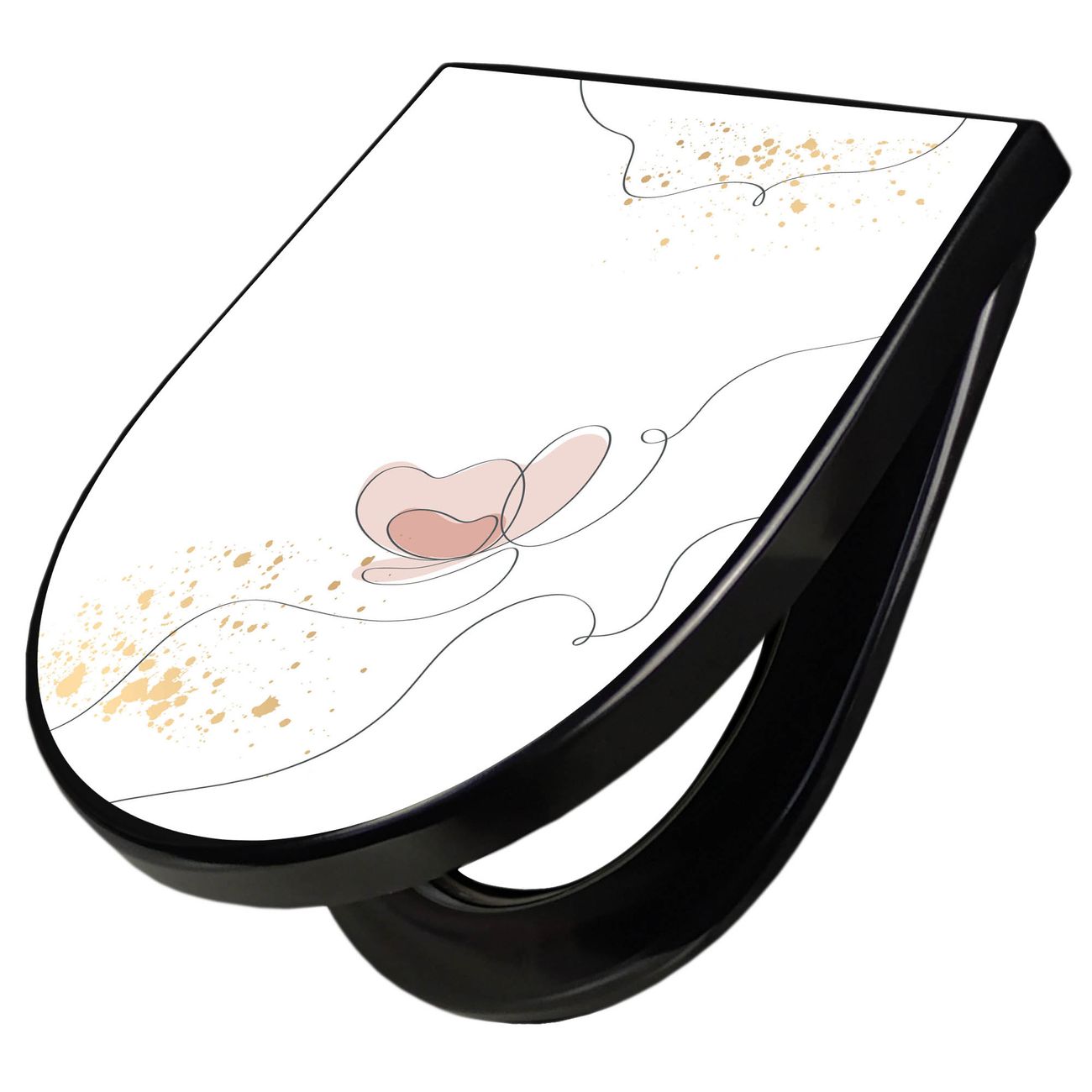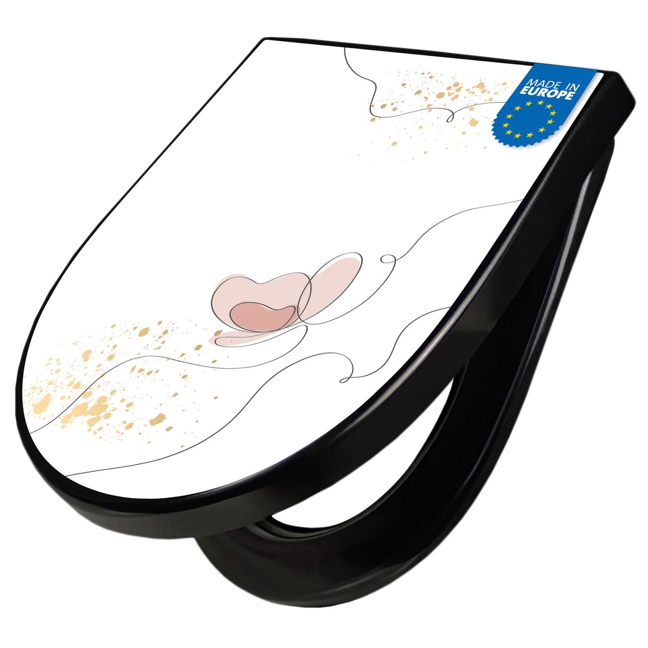 WC Sitz D-Form Schwarz mit Absenkautomatik Motiv Zarte Schmetterlingslinie
