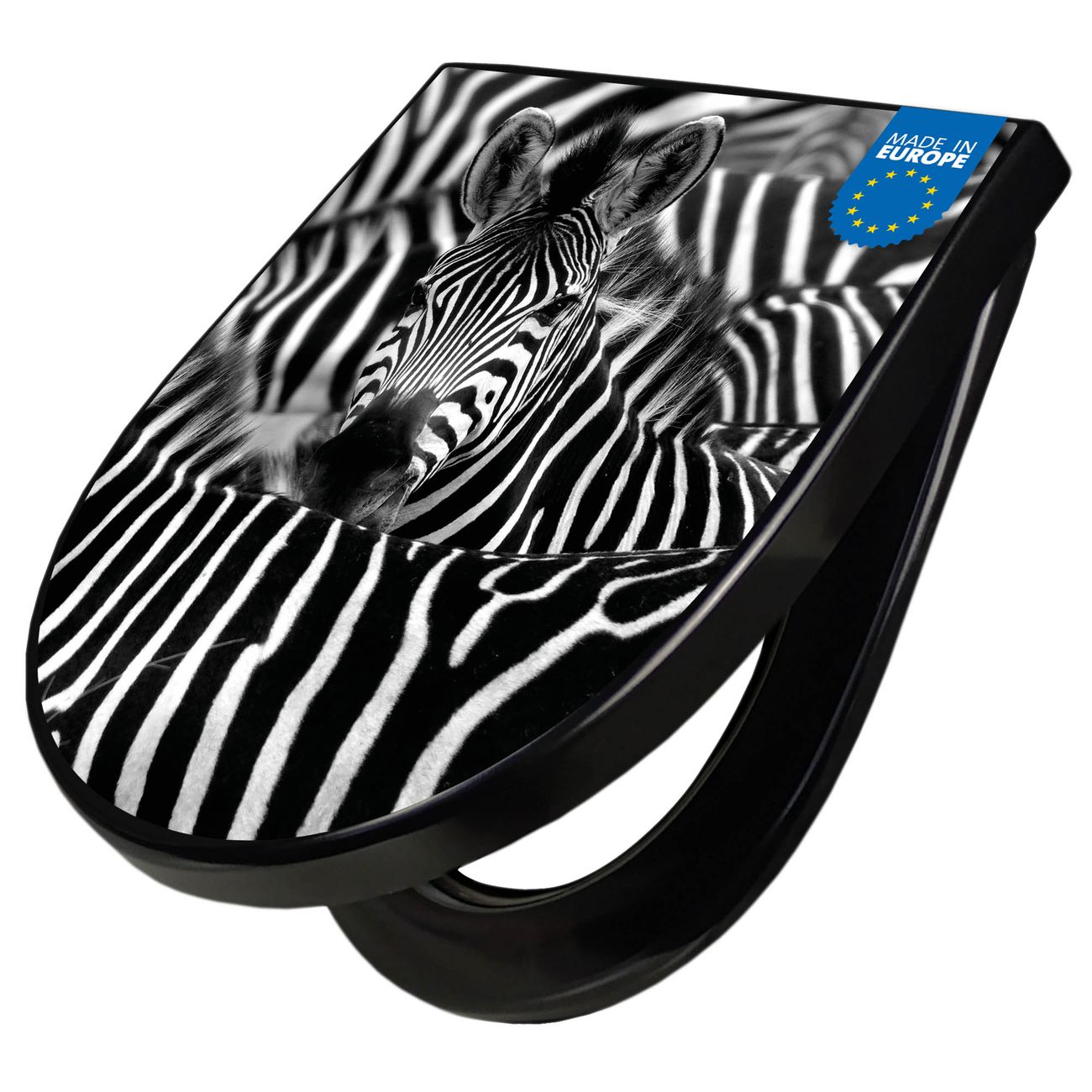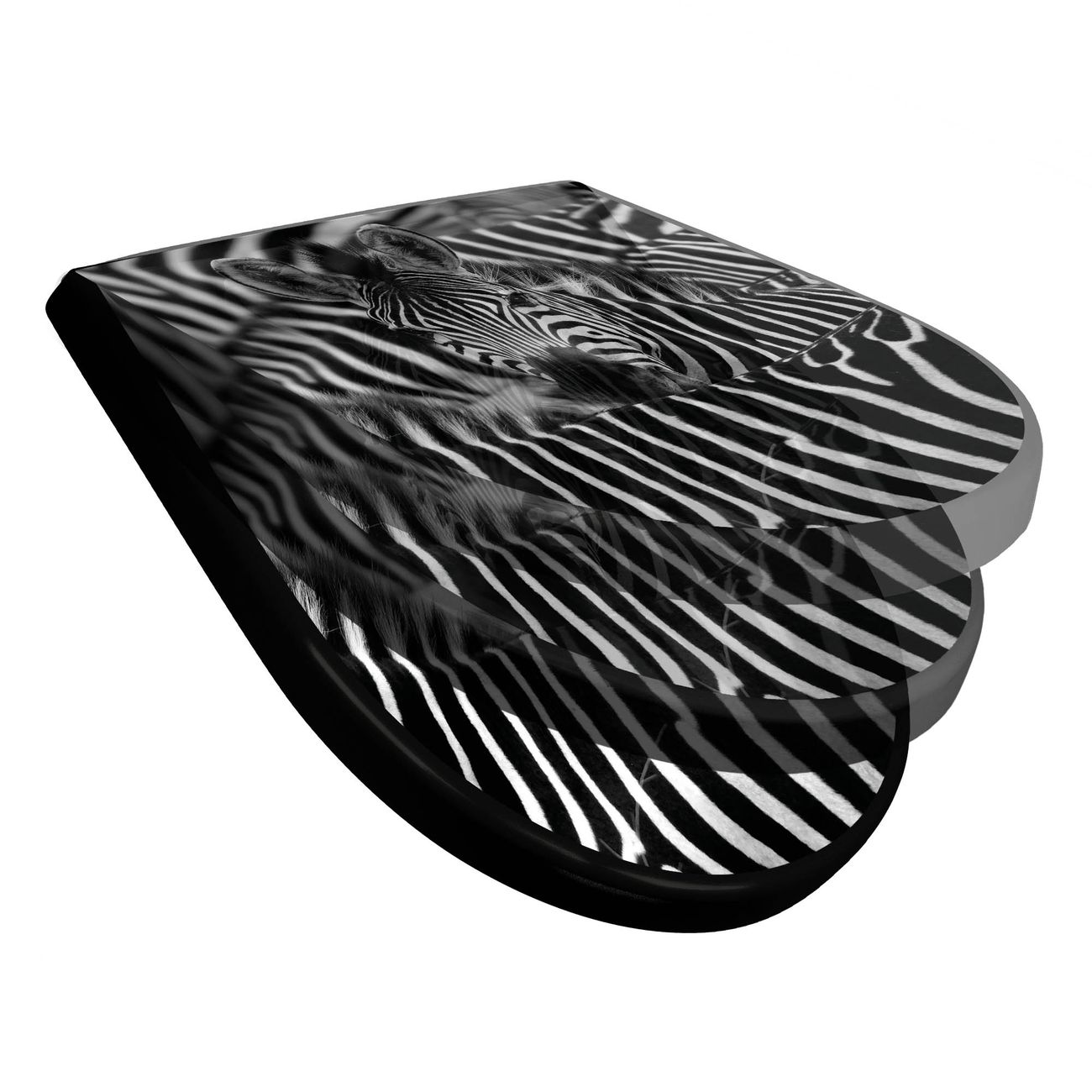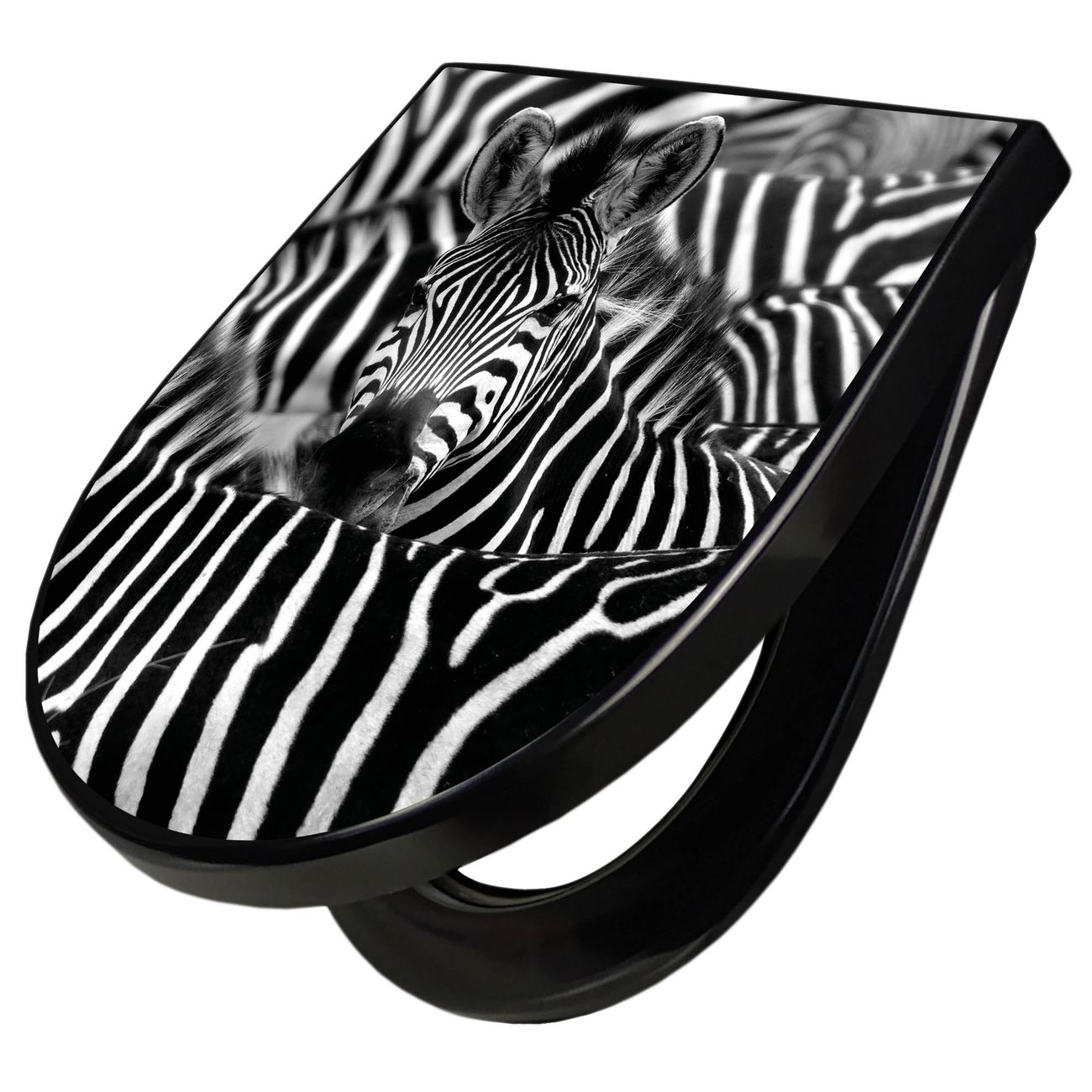 WC Sitz D-Form Schwarz mit Absenkautomatik Motiv Zebras
