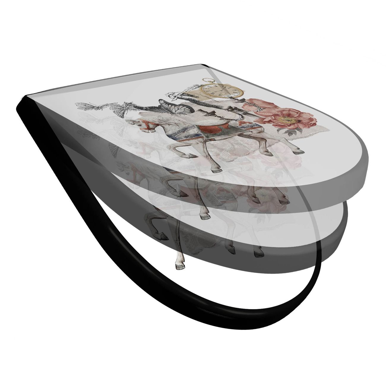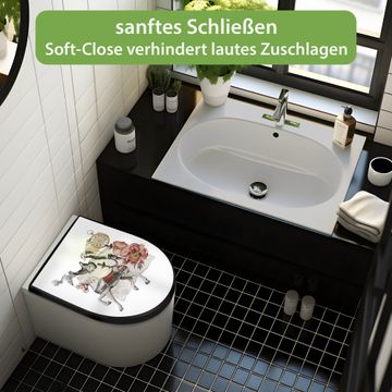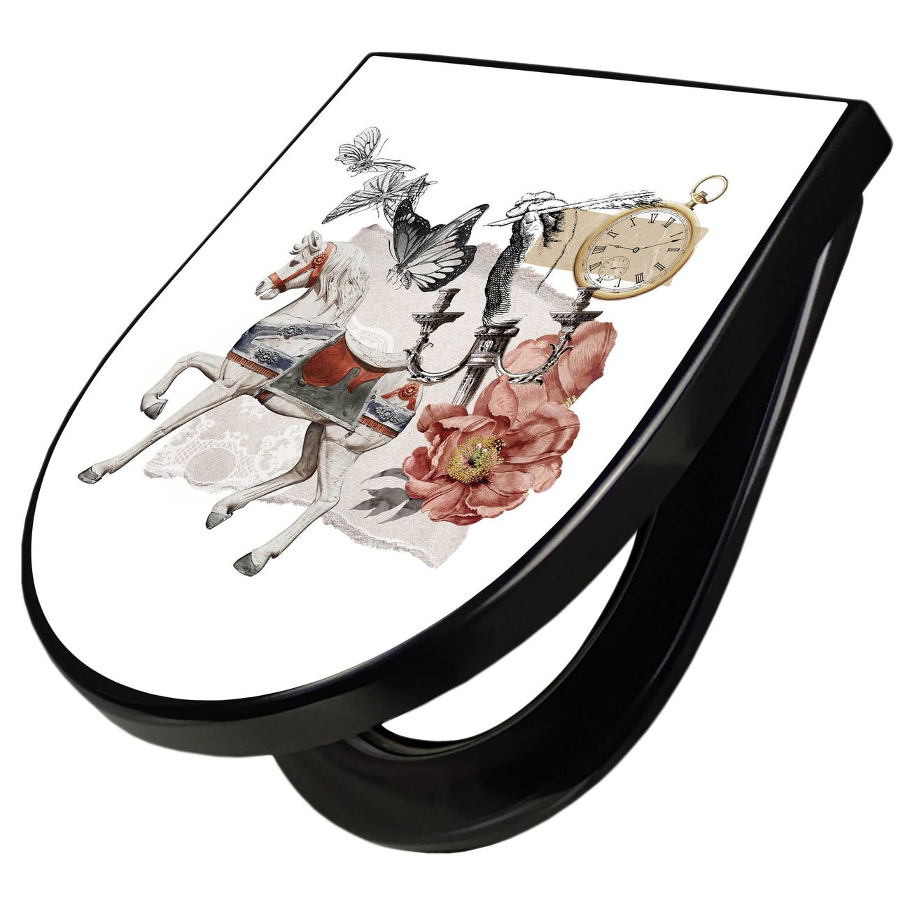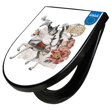 WC Sitz D-Form Schwarz mit Absenkautomatik Motiv Zeitreise-Kollage Vintage
