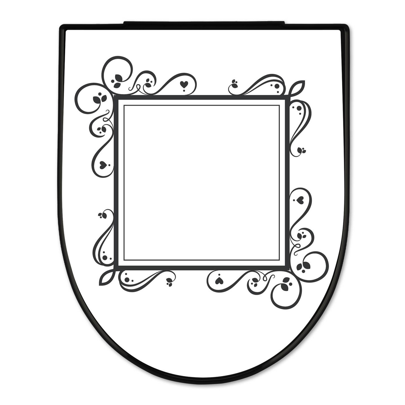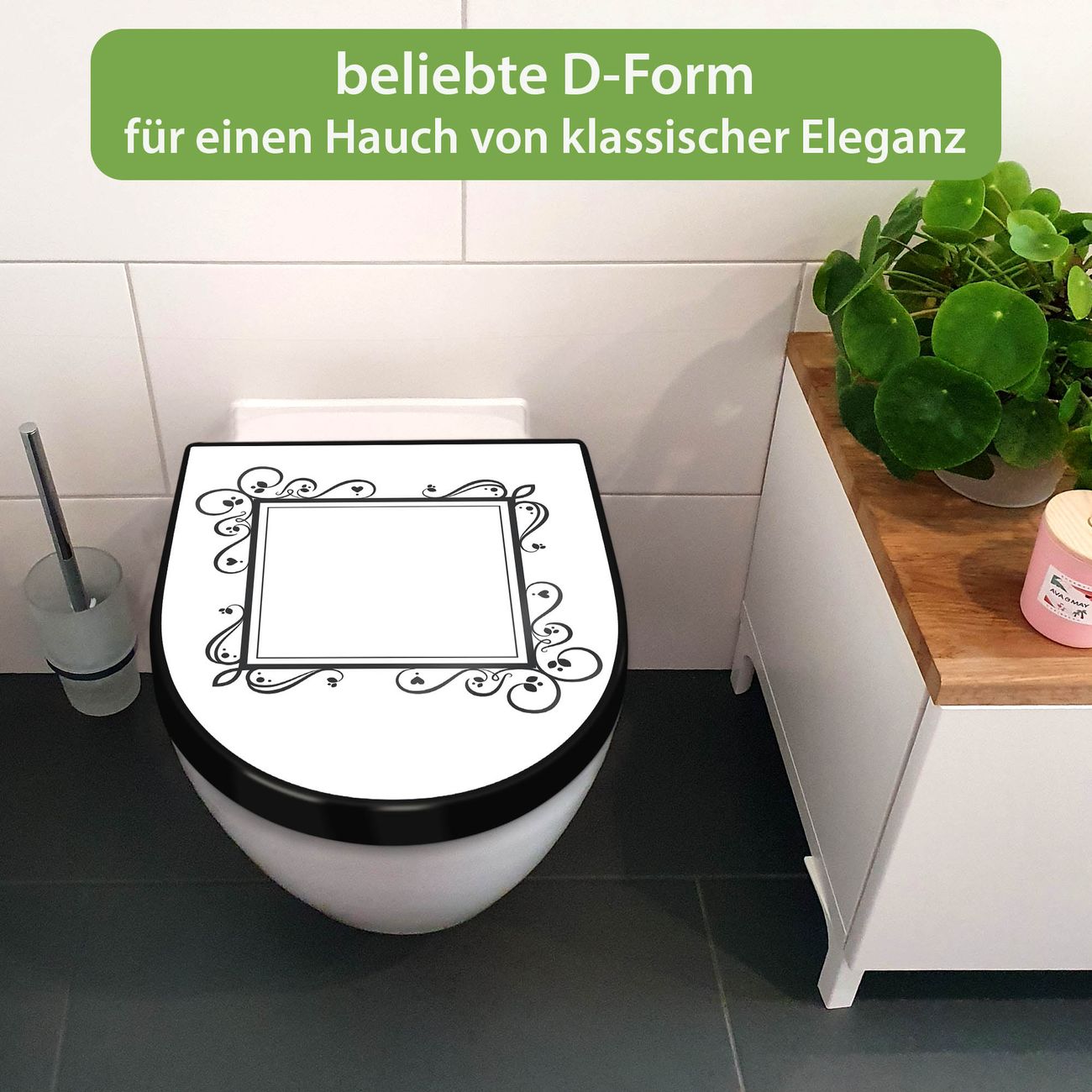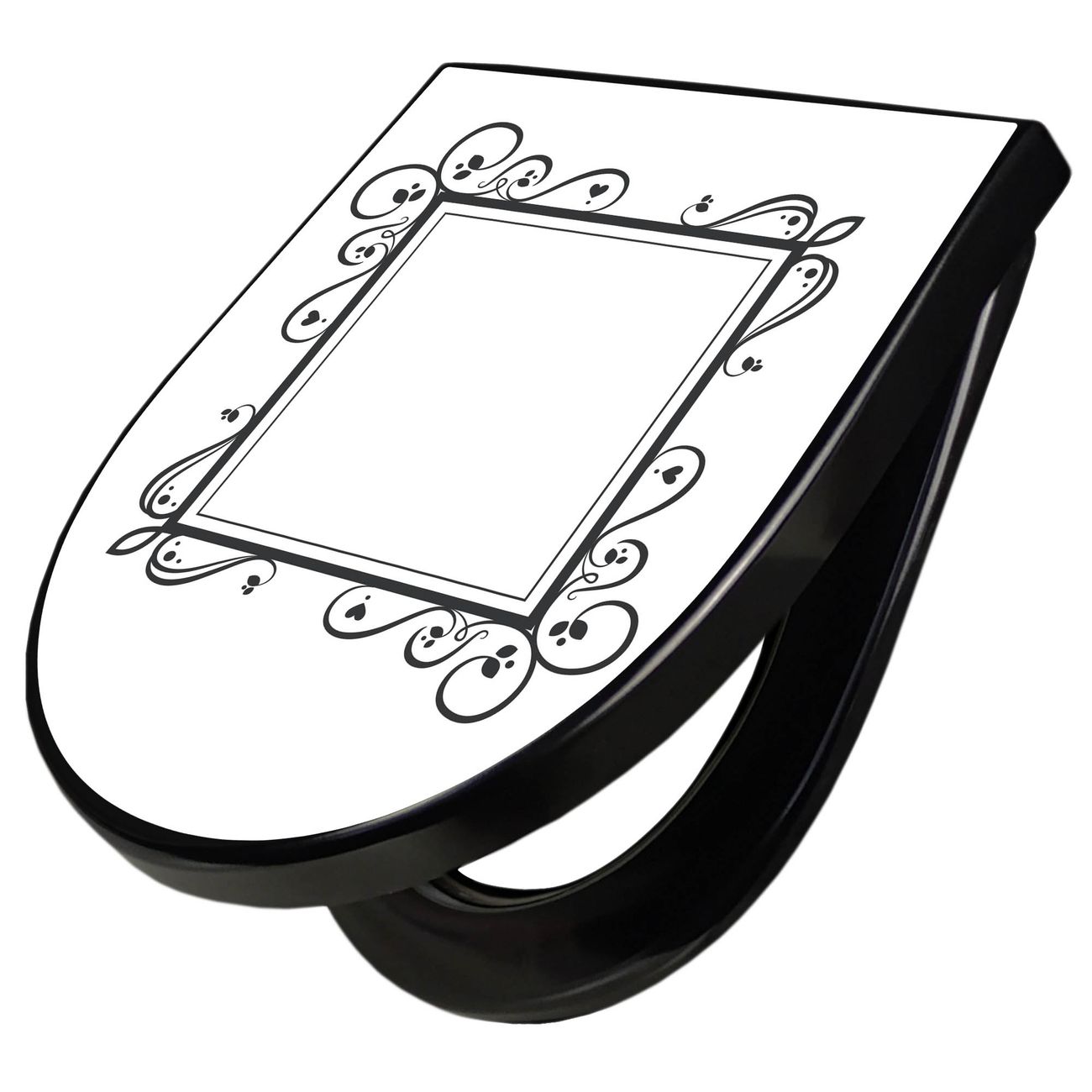 WC Sitz D-Form Schwarz mit Absenkautomatik Motiv Zierlicher Rahmen mit Herzen