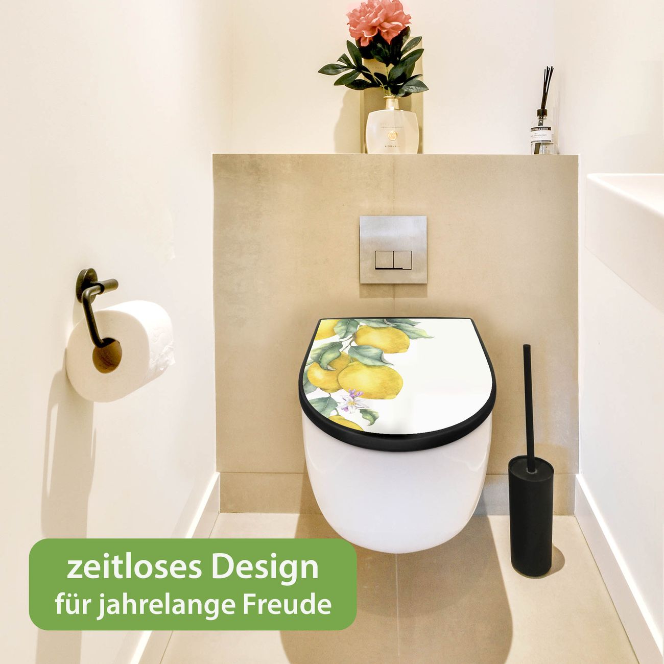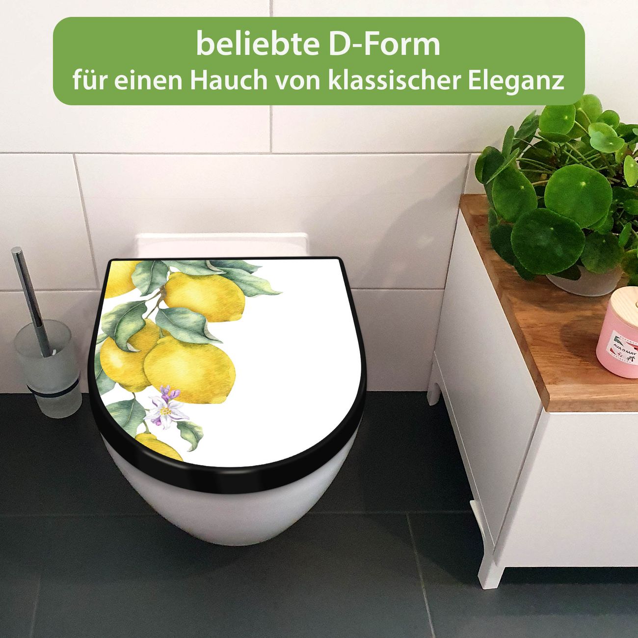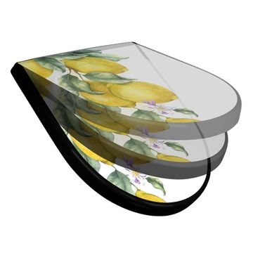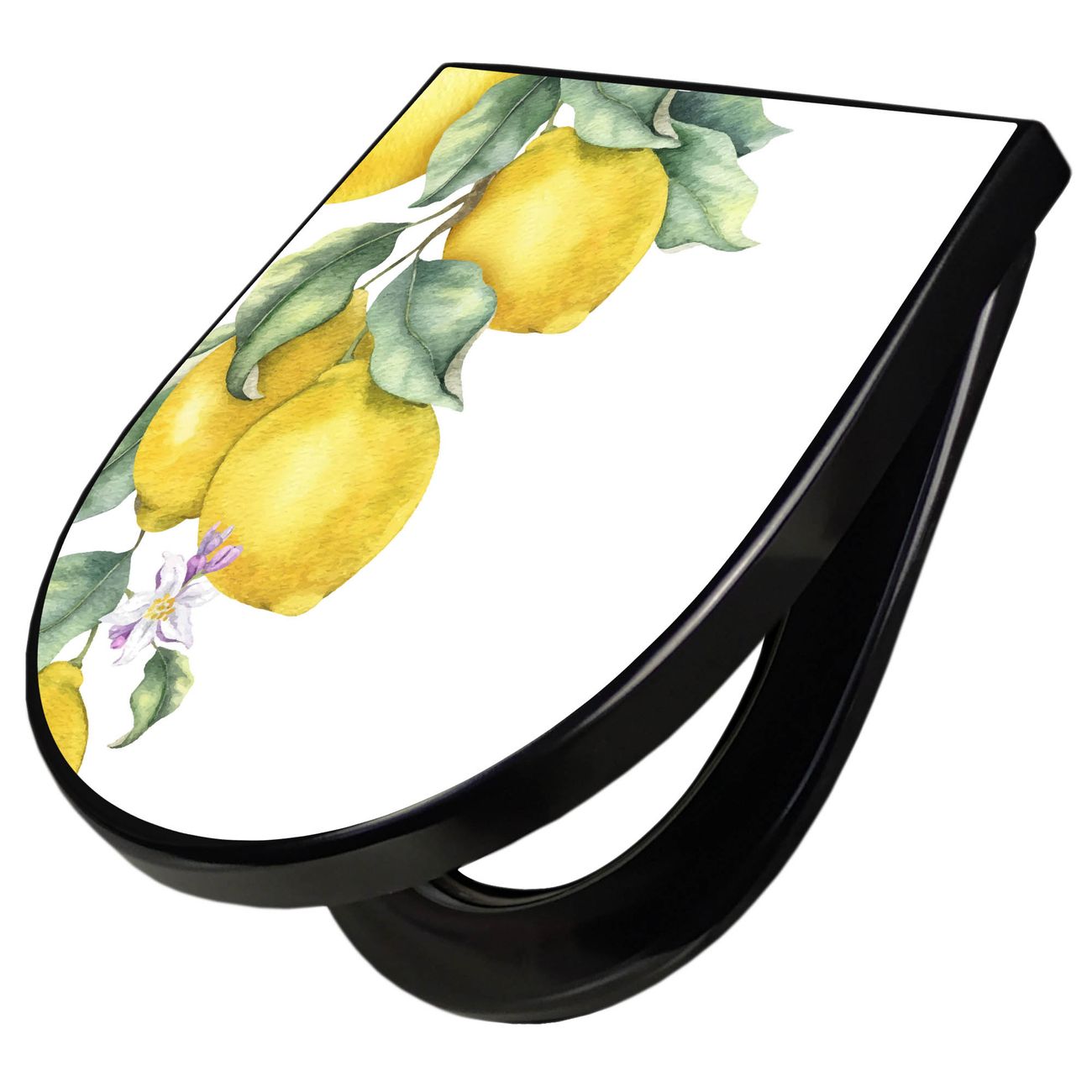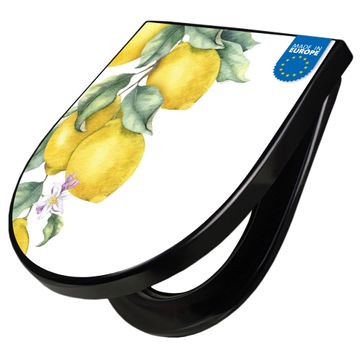 WC Sitz D-Form Schwarz mit Absenkautomatik Motiv Zitronenzweig Aquarell