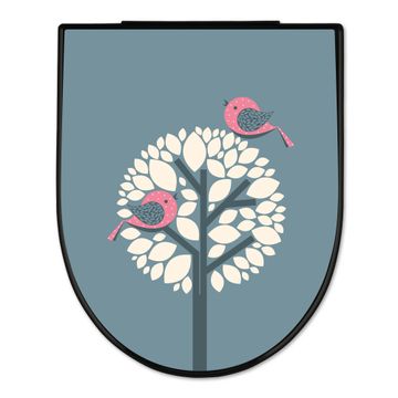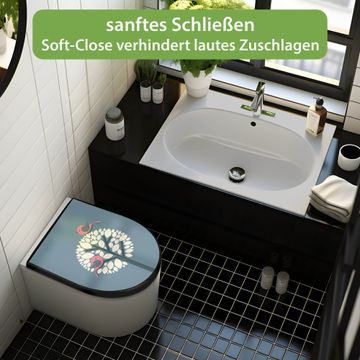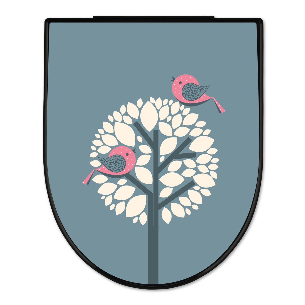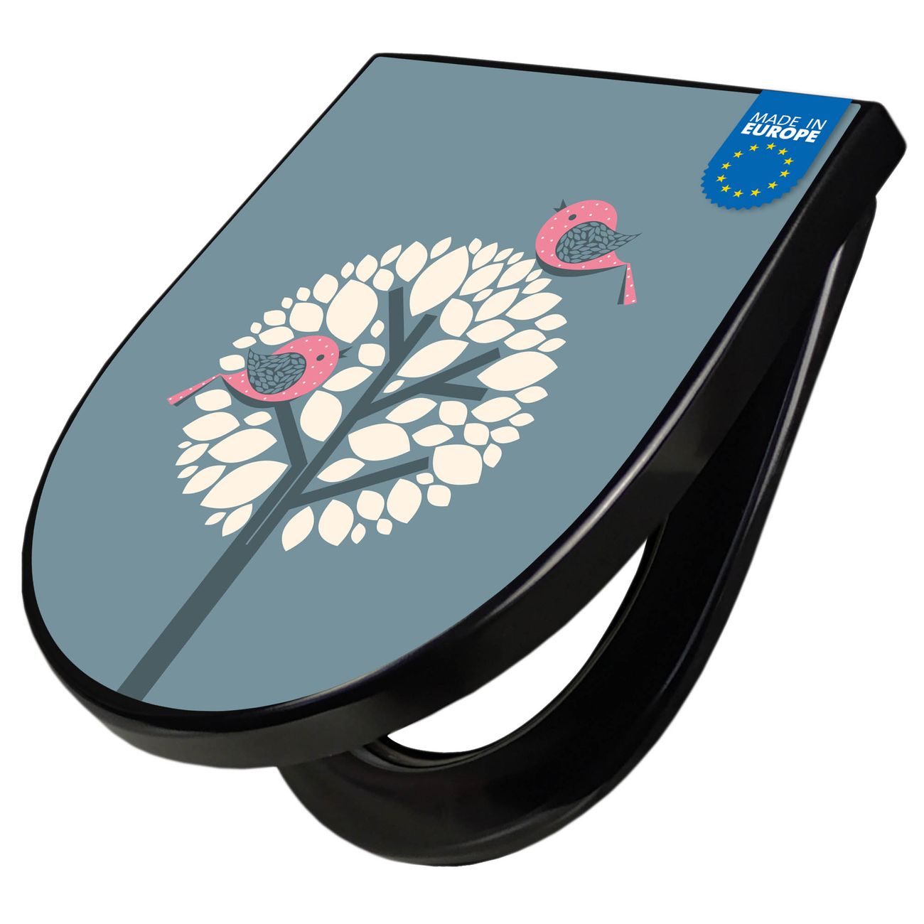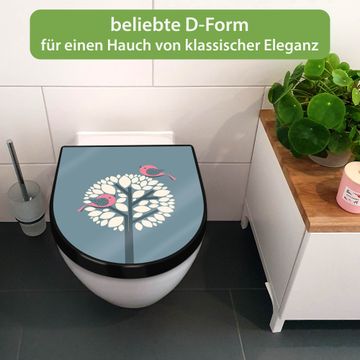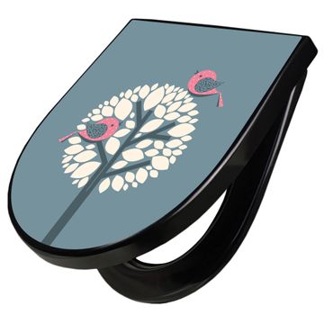 WC Sitz D-Form Schwarz mit Absenkautomatik Motiv Zwei Rosa Vögel
