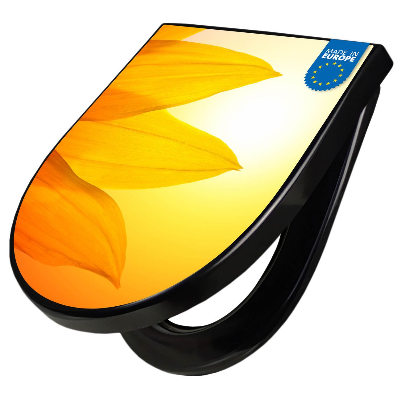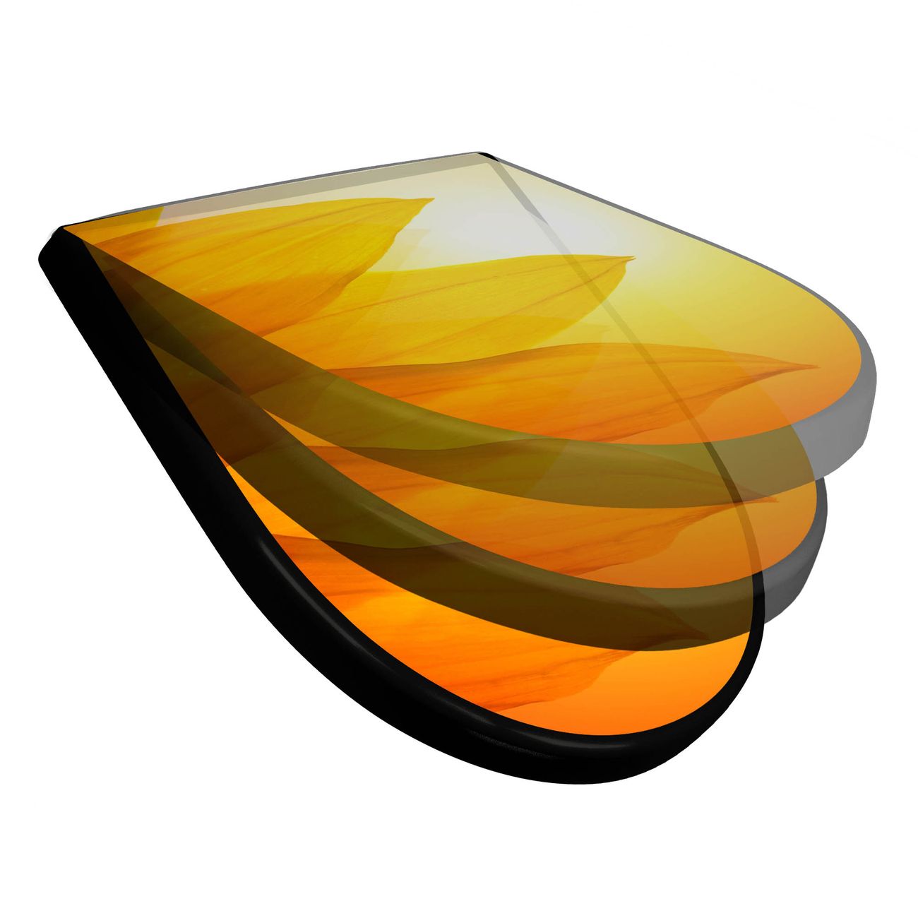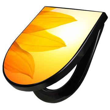WC Sitz D-Form Schwarz mit Absenkautomatik Motiv Zwei Sonnen