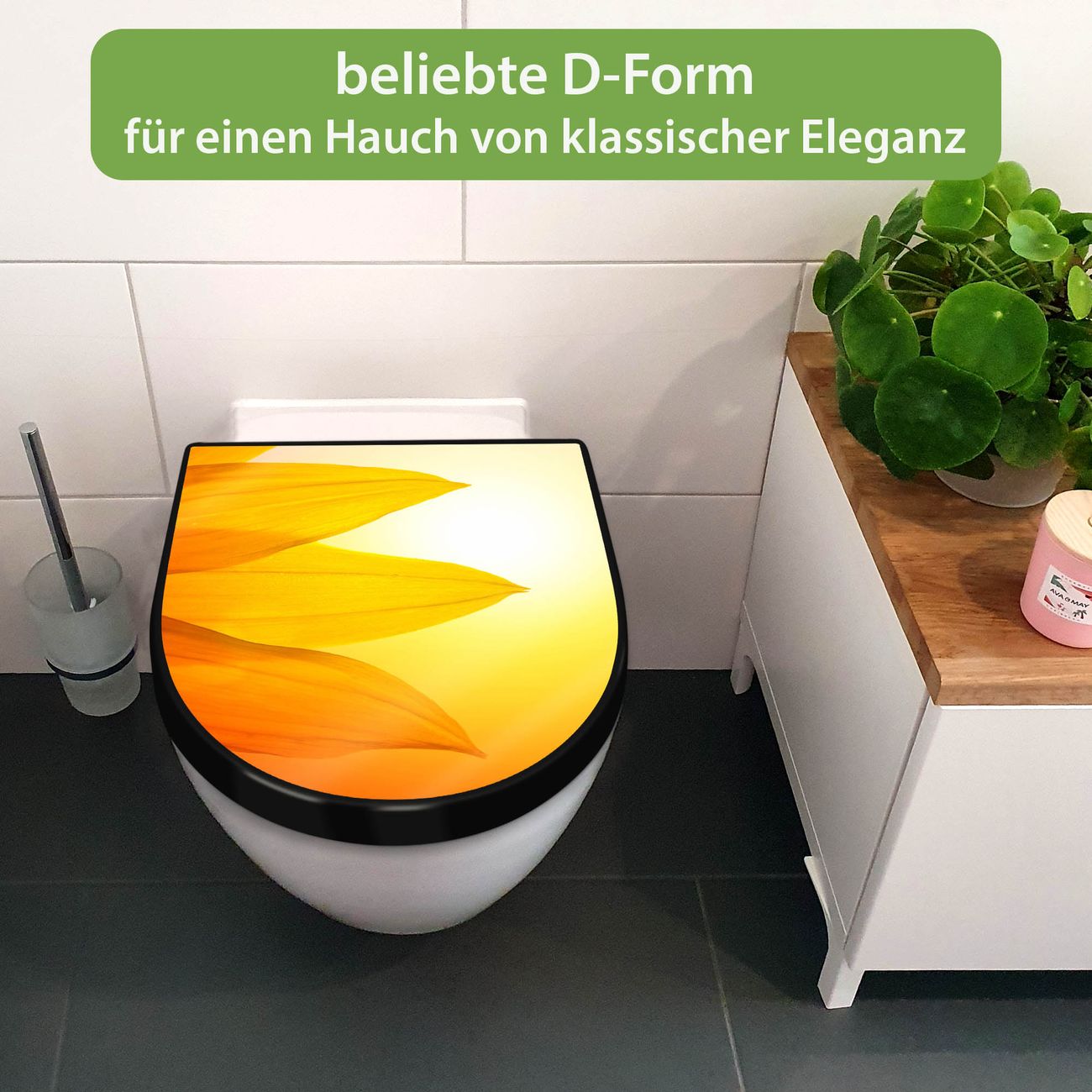 Der WC-Deckel wird in Europa gefertigt und im Herzen von Sachsen für Sie mit dem gewünschten Motiv veredelt. Die hierfür verwendete Folie ist lösungsmittelfrei und schutzlaminiert.