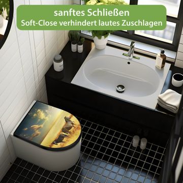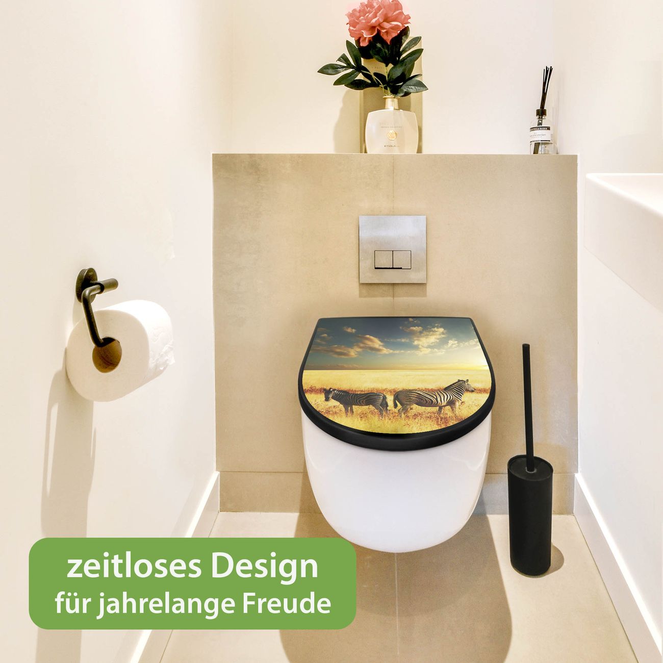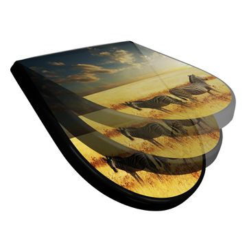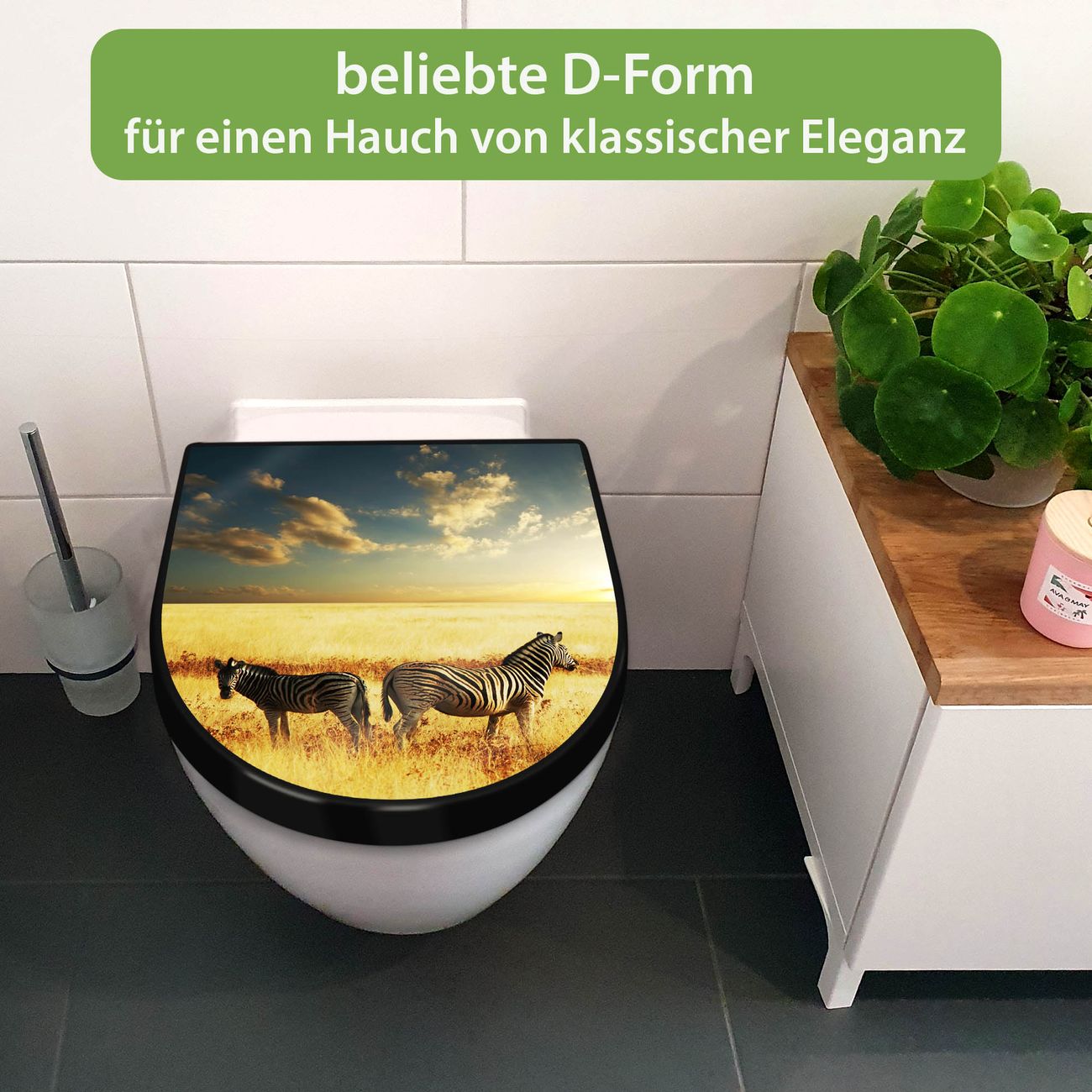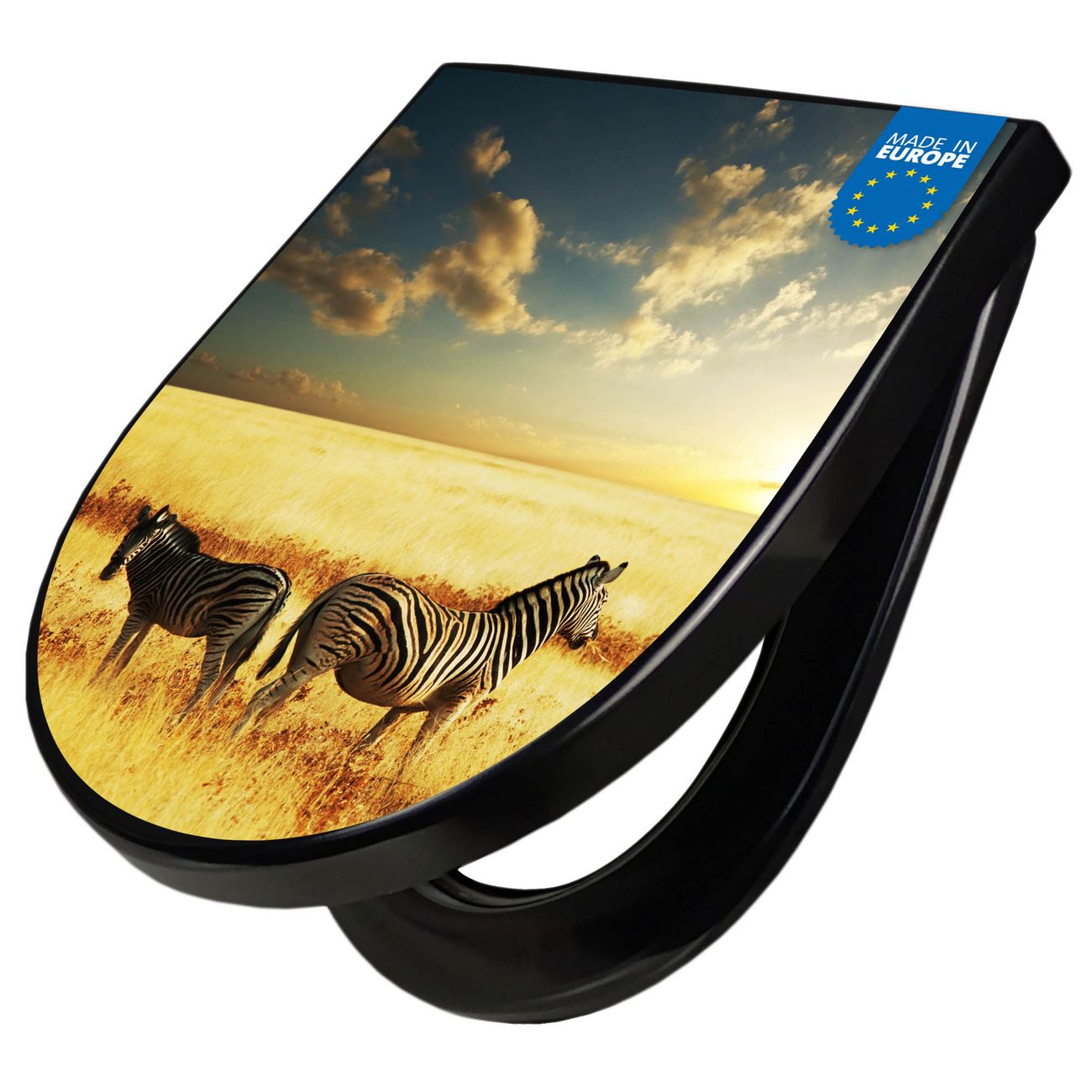 WC Sitz D-Form Schwarz mit Absenkautomatik Motiv Zwei Zebras