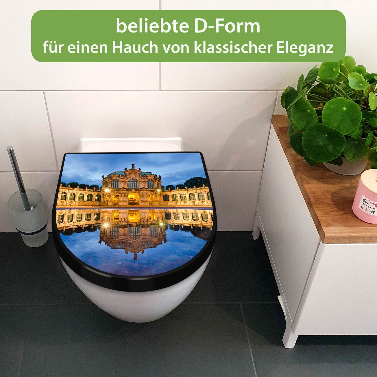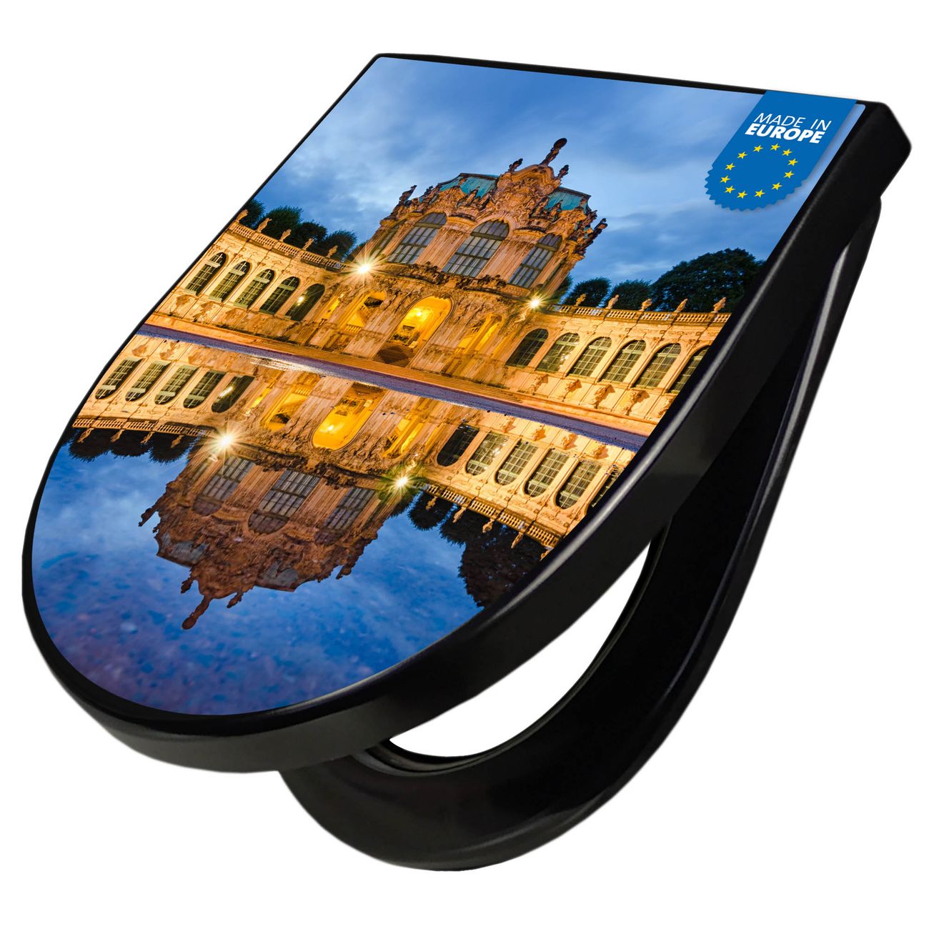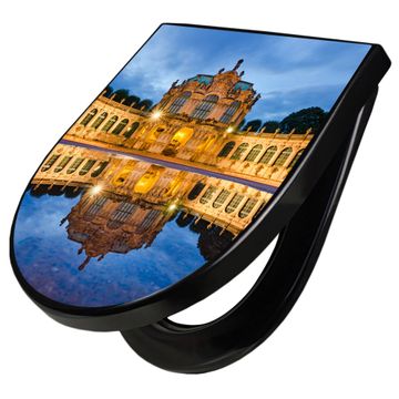WC Sitz D-Form Schwarz mit Absenkautomatik Motiv Zwinger Dresden