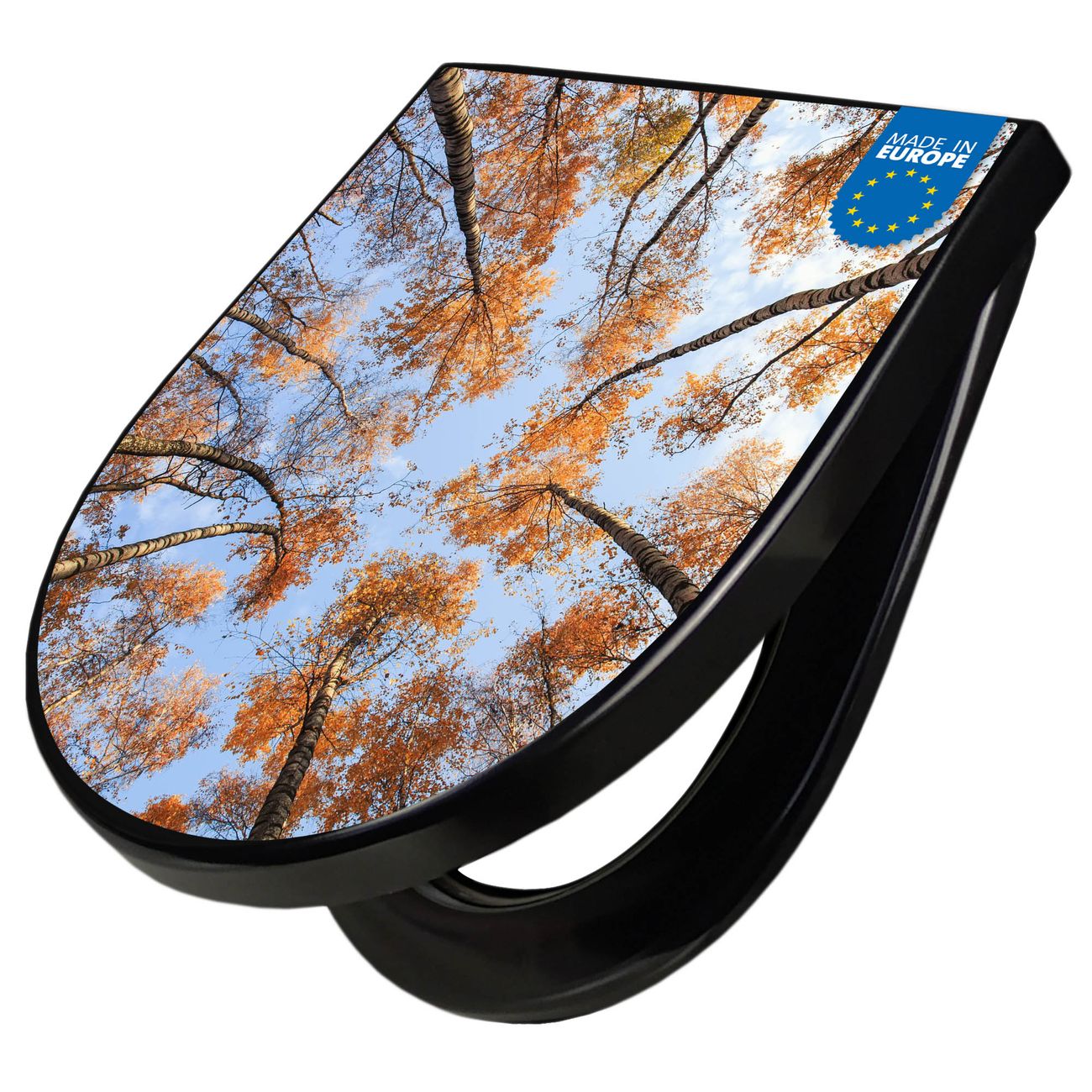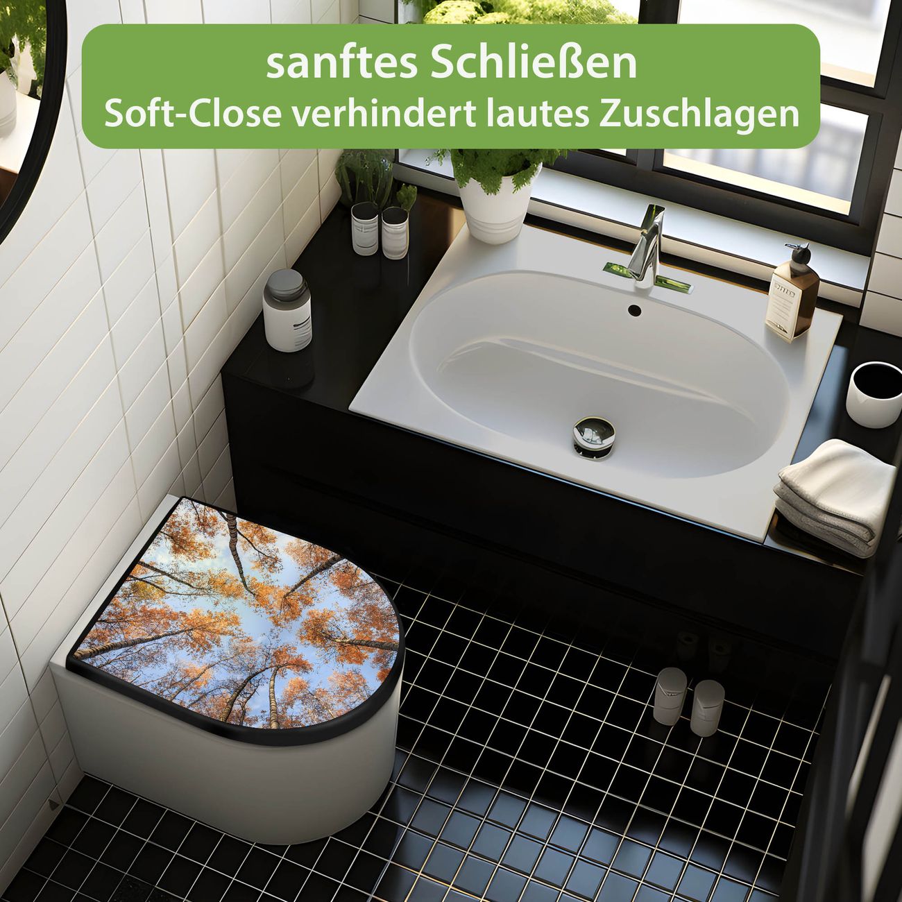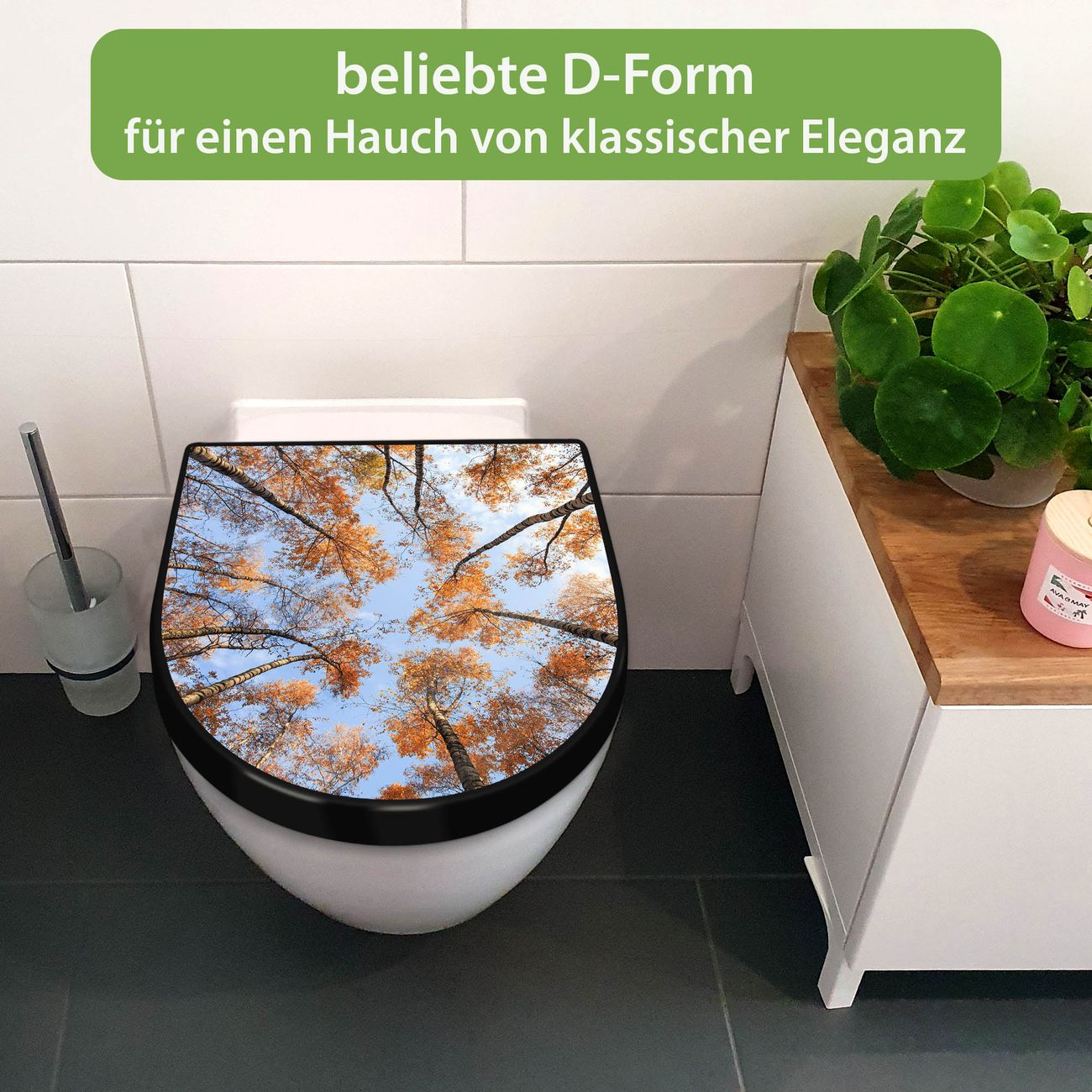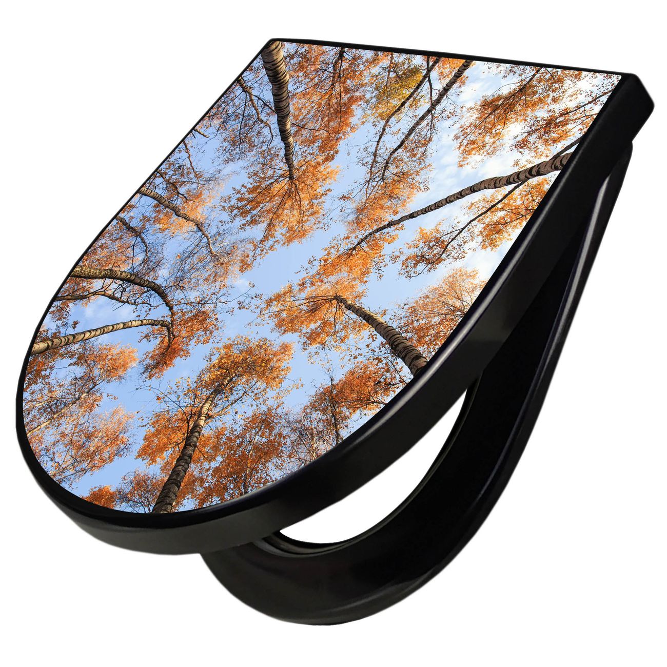 WC Sitz D-Form Schwarz mit Absenkautomatik Motiv Zwischen Bäumen 4