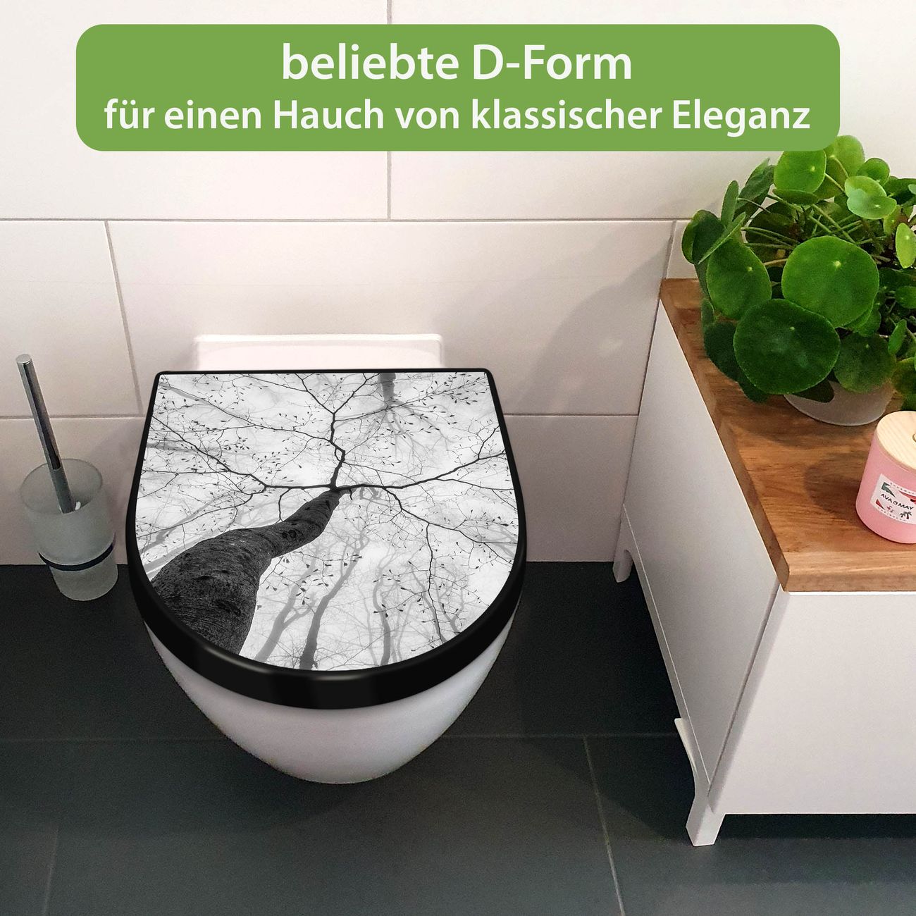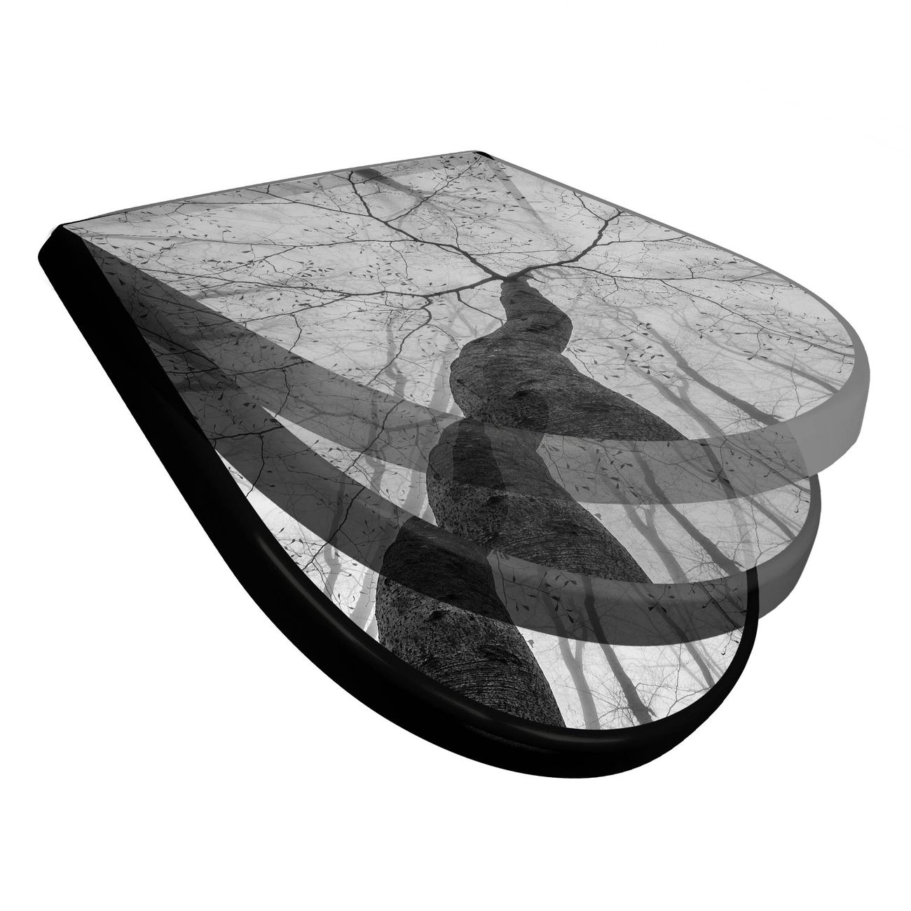 WC Sitz D-Form Schwarz mit Absenkautomatik Motiv Zwischen Bäumen 6