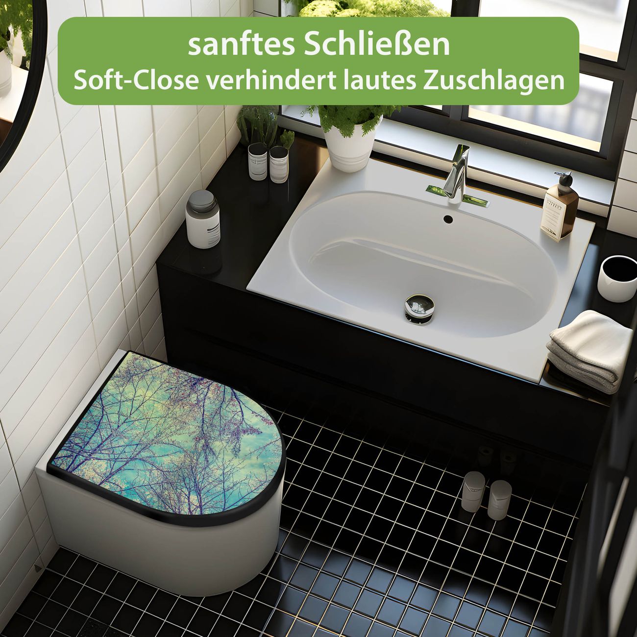 WC Sitz D-Form Schwarz mit Absenkautomatik Motiv Zwischen Bäumen 8