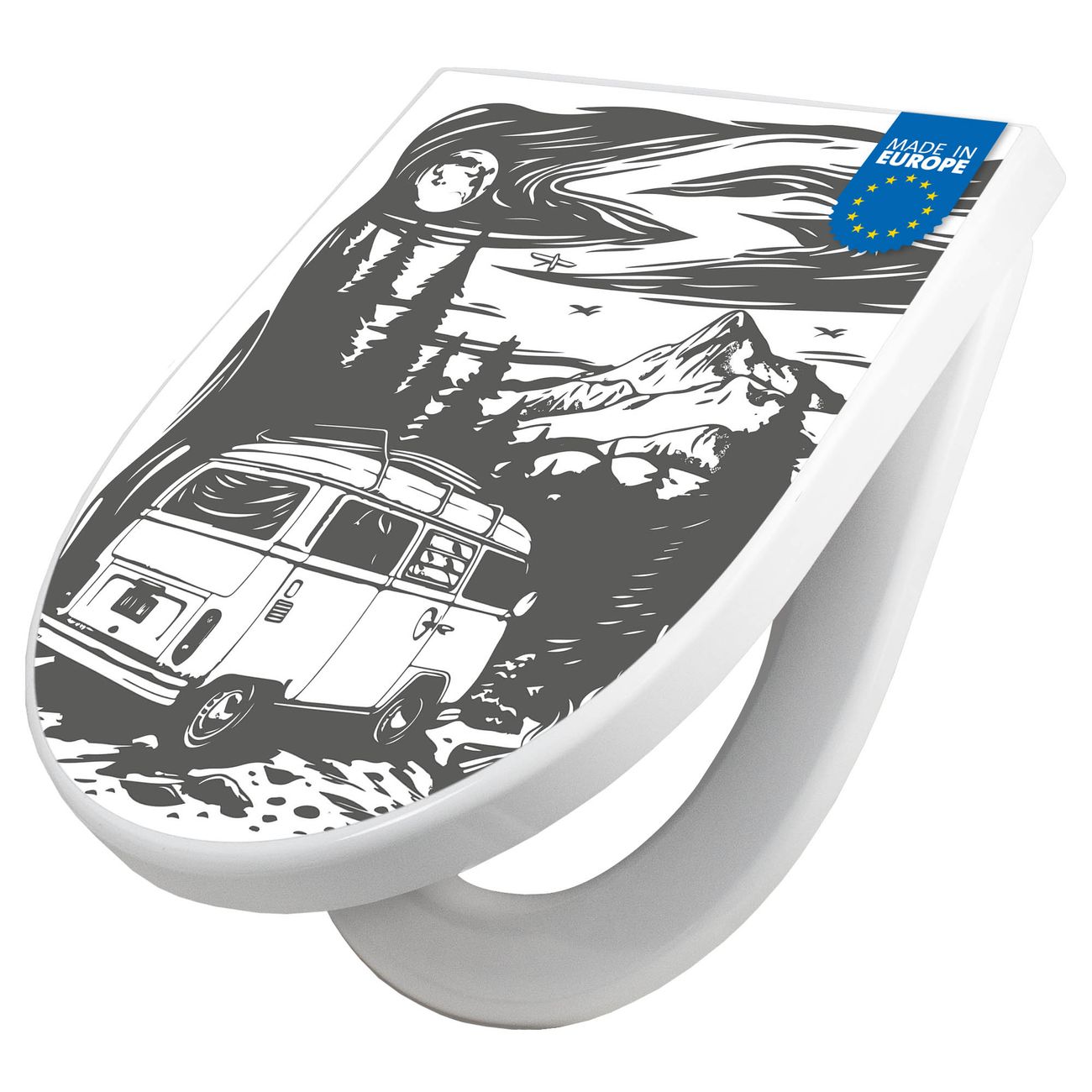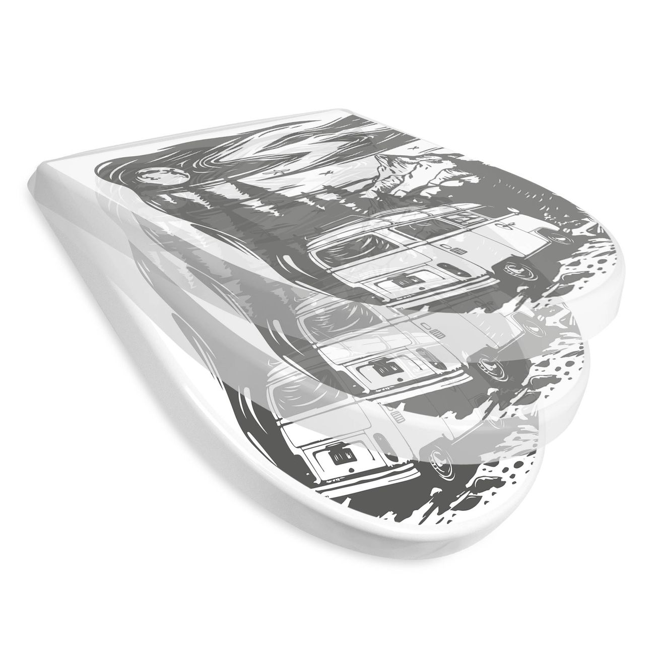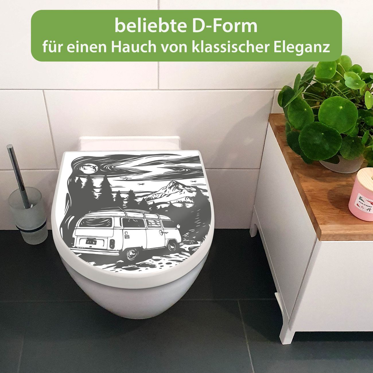 WC Sitz mit Absenkautomatik D Form Motiv Abenteuerliche Campingszene