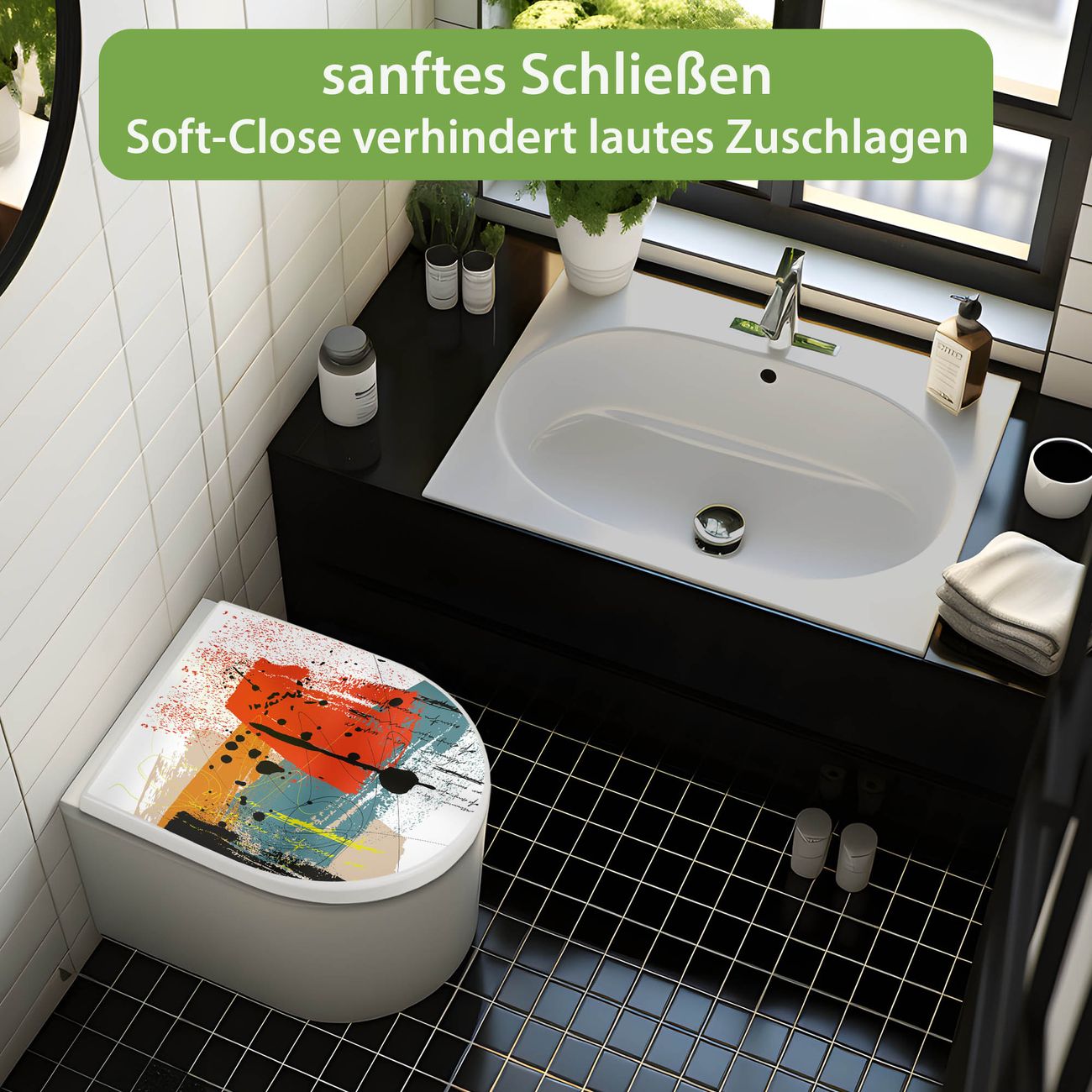 WC Sitz mit Absenkautomatik D Form Motiv Abstrakte Farbexplosion