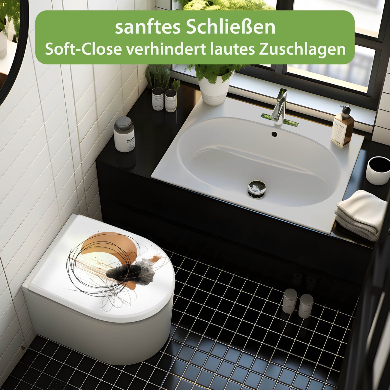 WC Sitz mit Absenkautomatik D Form Motiv Abstrakte Kreisformen