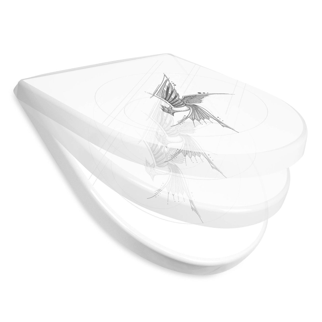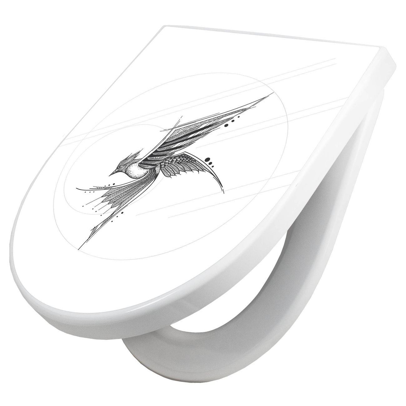 WC Sitz mit Absenkautomatik D Form Motiv Abstrakte Schwalbe