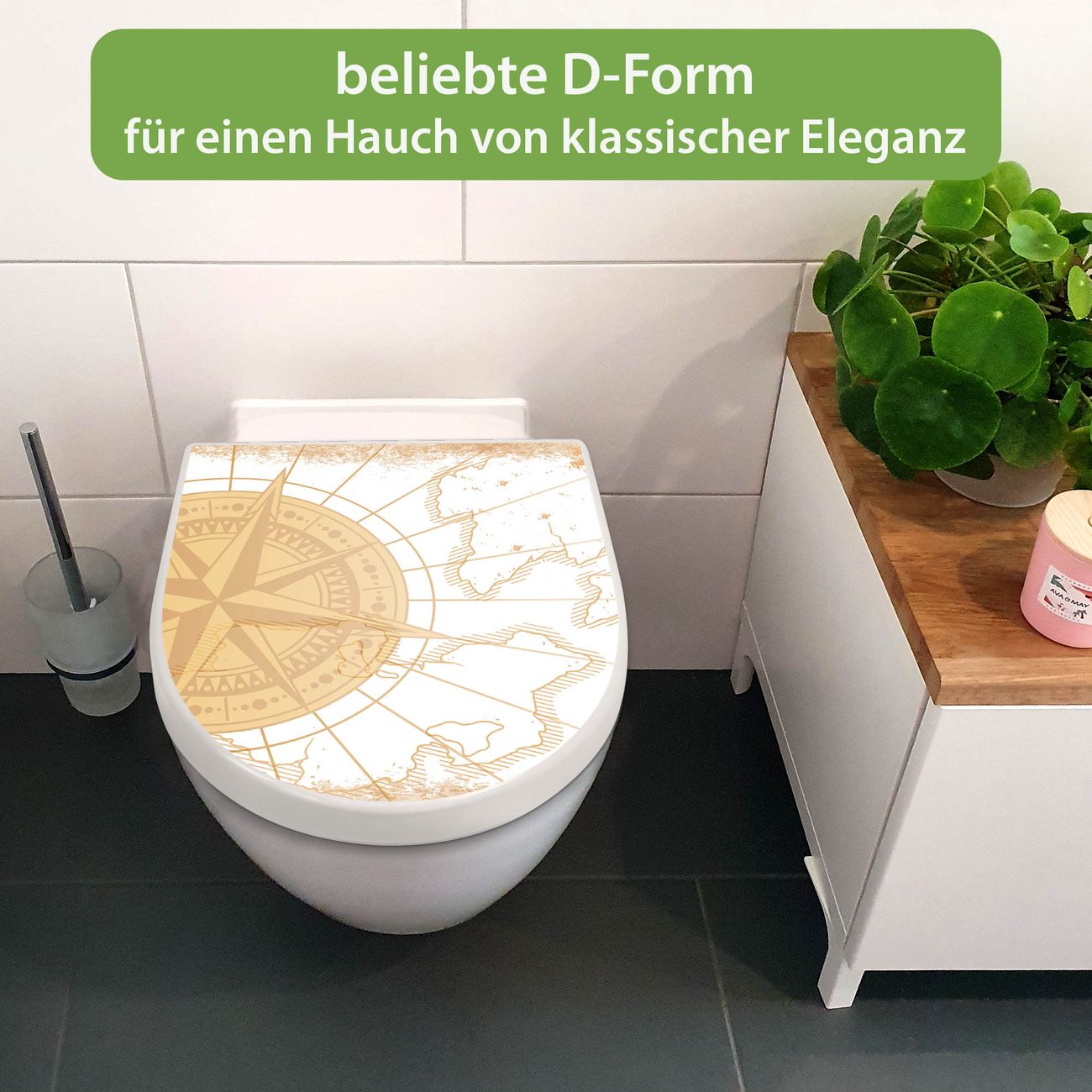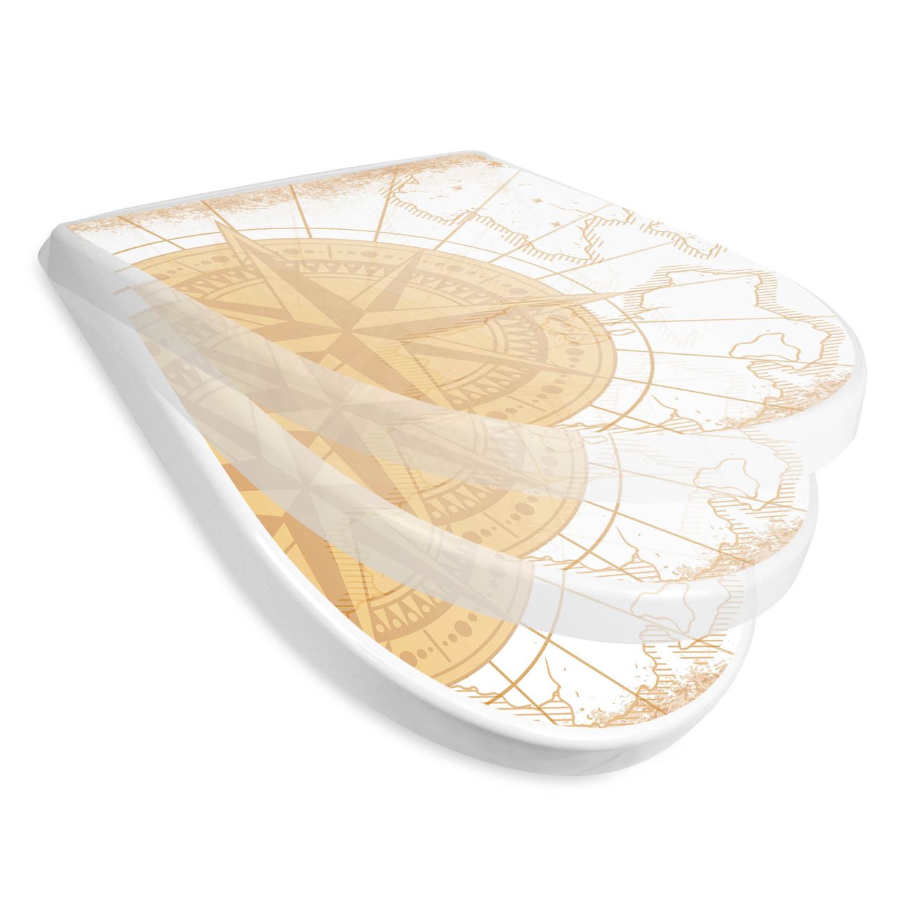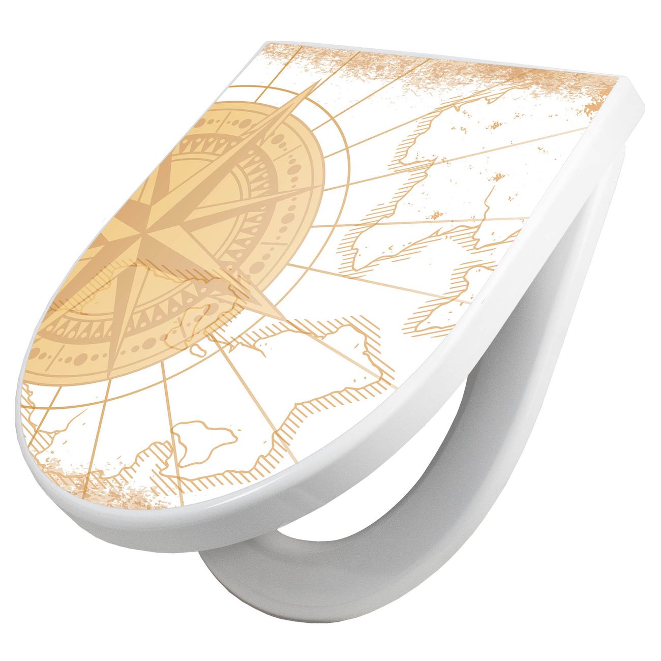 WC Sitz mit Absenkautomatik D Form Motiv Antike Kompassrose