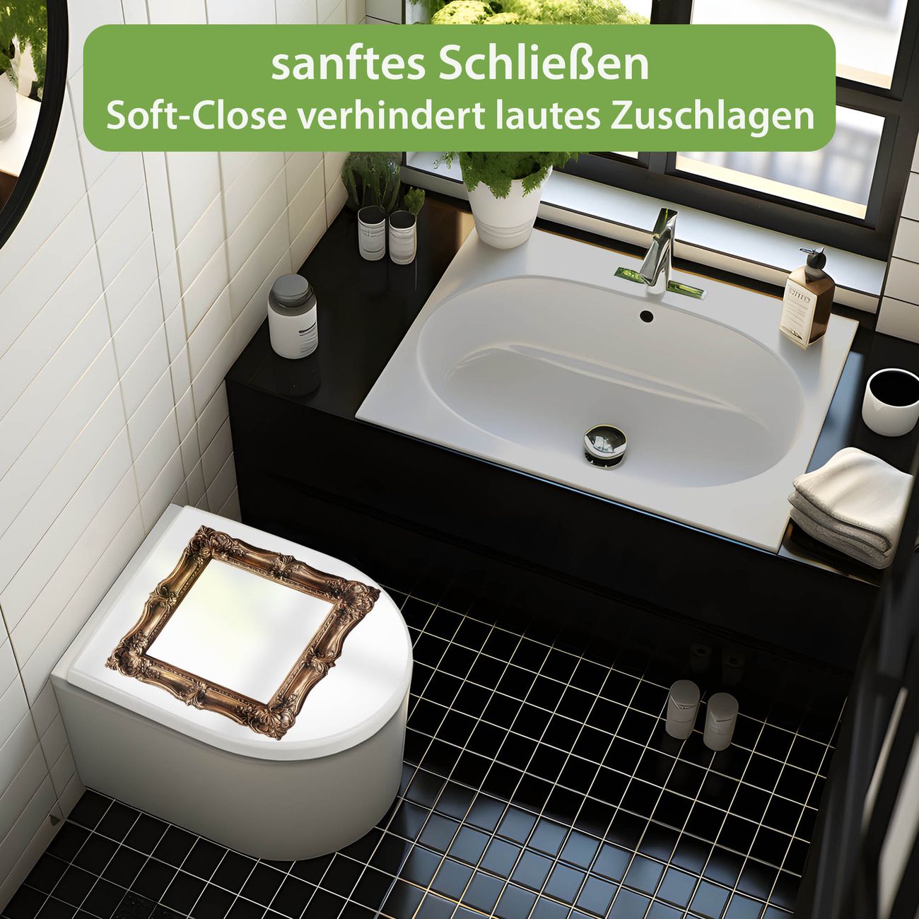 WC Sitz mit Absenkautomatik D Form Motiv Antiker Bilderrahmen 2