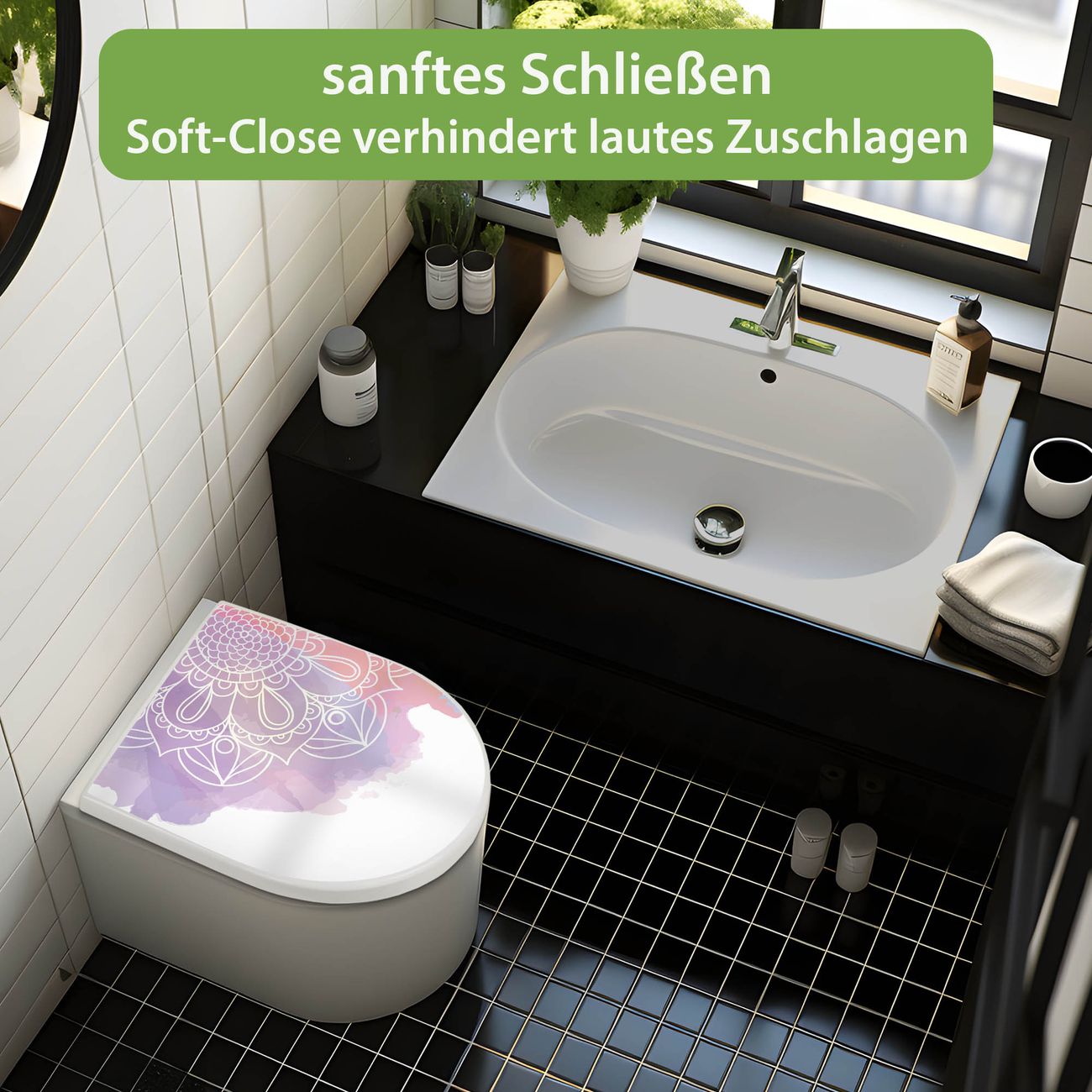 WC Sitz mit Absenkautomatik D Form Motiv Aquarell Mandala