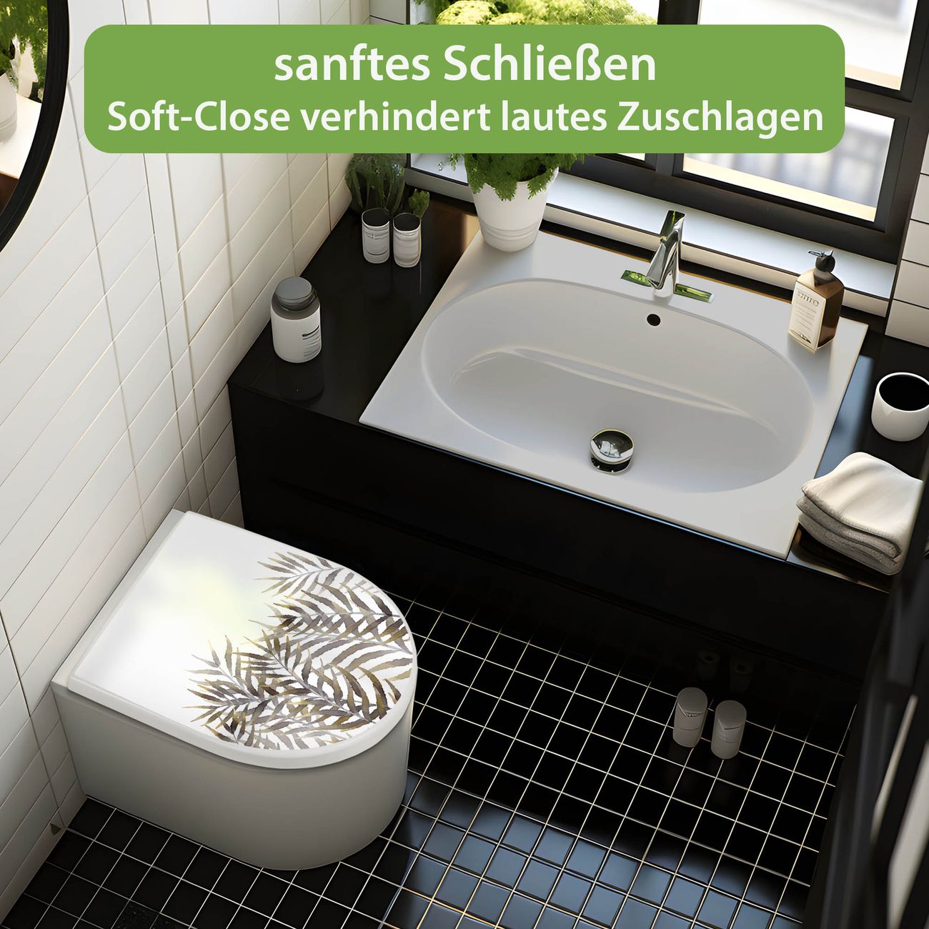 WC Sitz mit Absenkautomatik D Form Motiv Aquarell Palmblätter