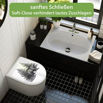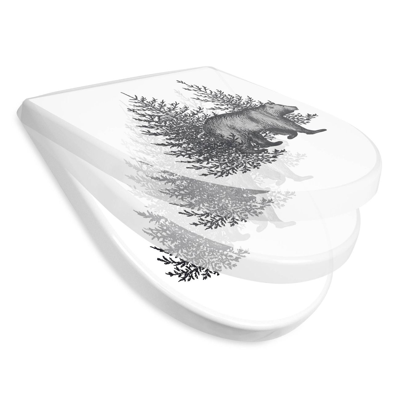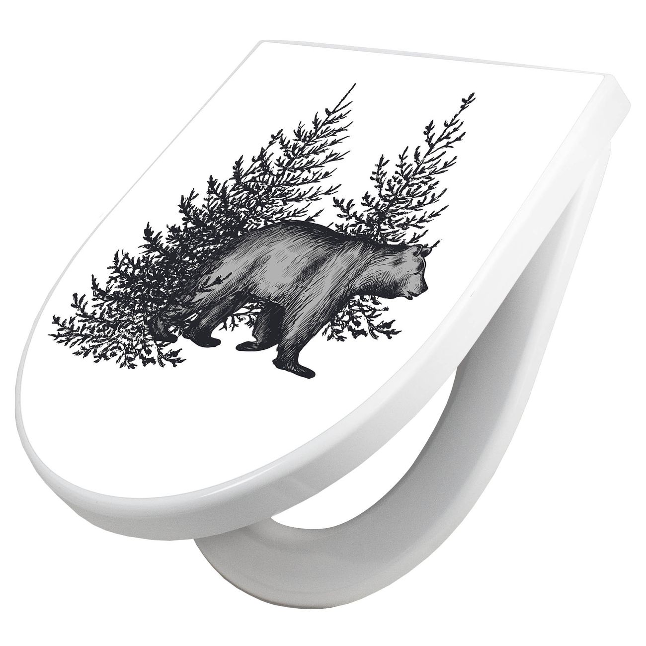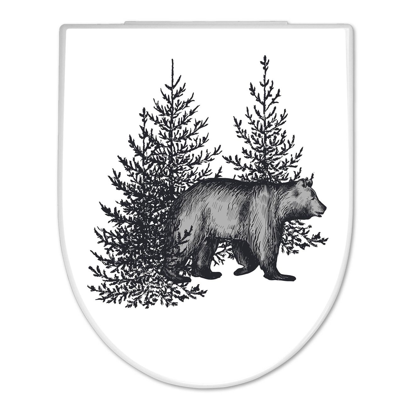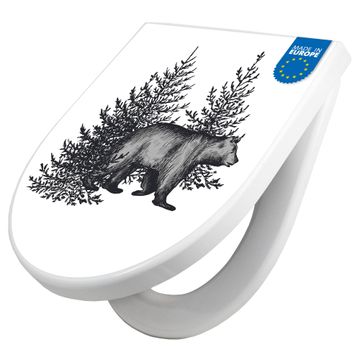 WC Sitz mit Absenkautomatik D Form Motiv Bär in Schwarz-Weiß