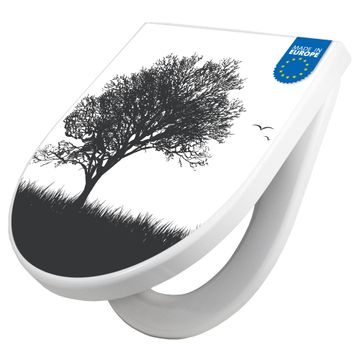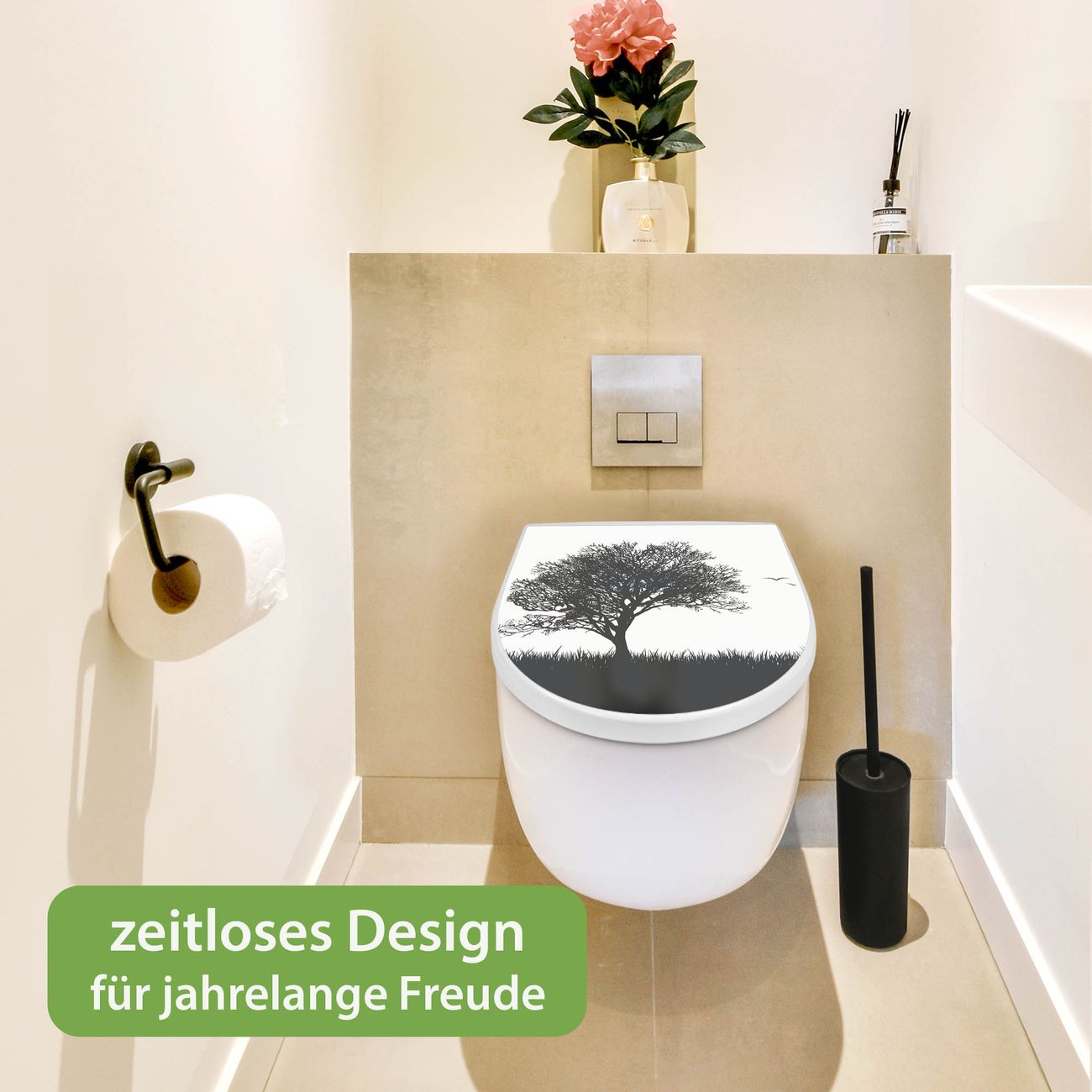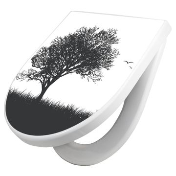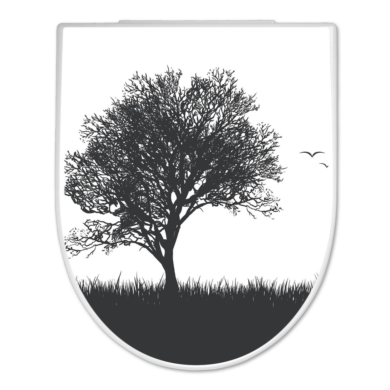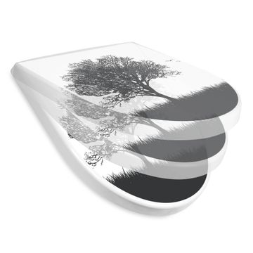 WC Sitz mit Absenkautomatik D Form Motiv Baum und Vögel Silhouette