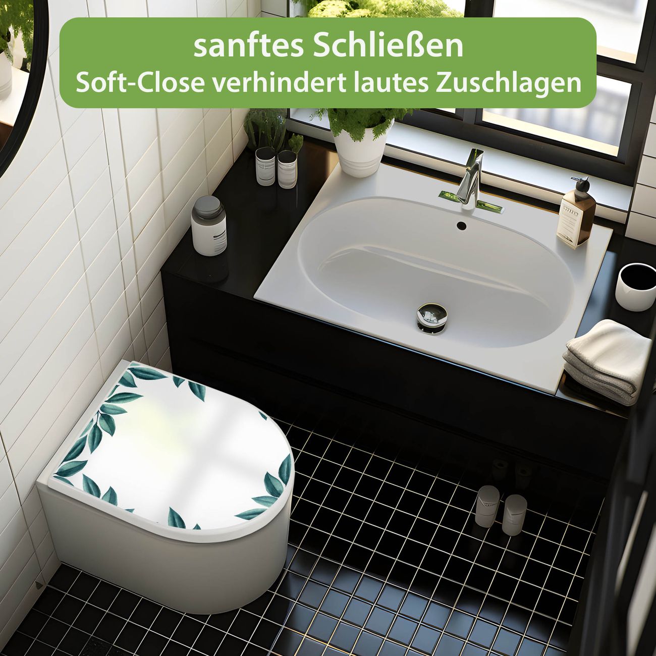 WC Sitz mit Absenkautomatik D Form Motiv Blätterrahmen