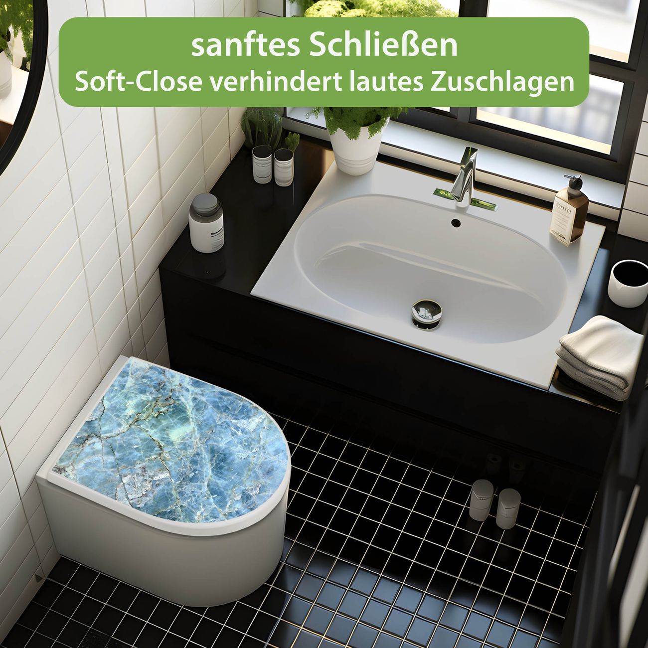 WC Sitz mit Absenkautomatik D Form Motiv Blauer Marmor