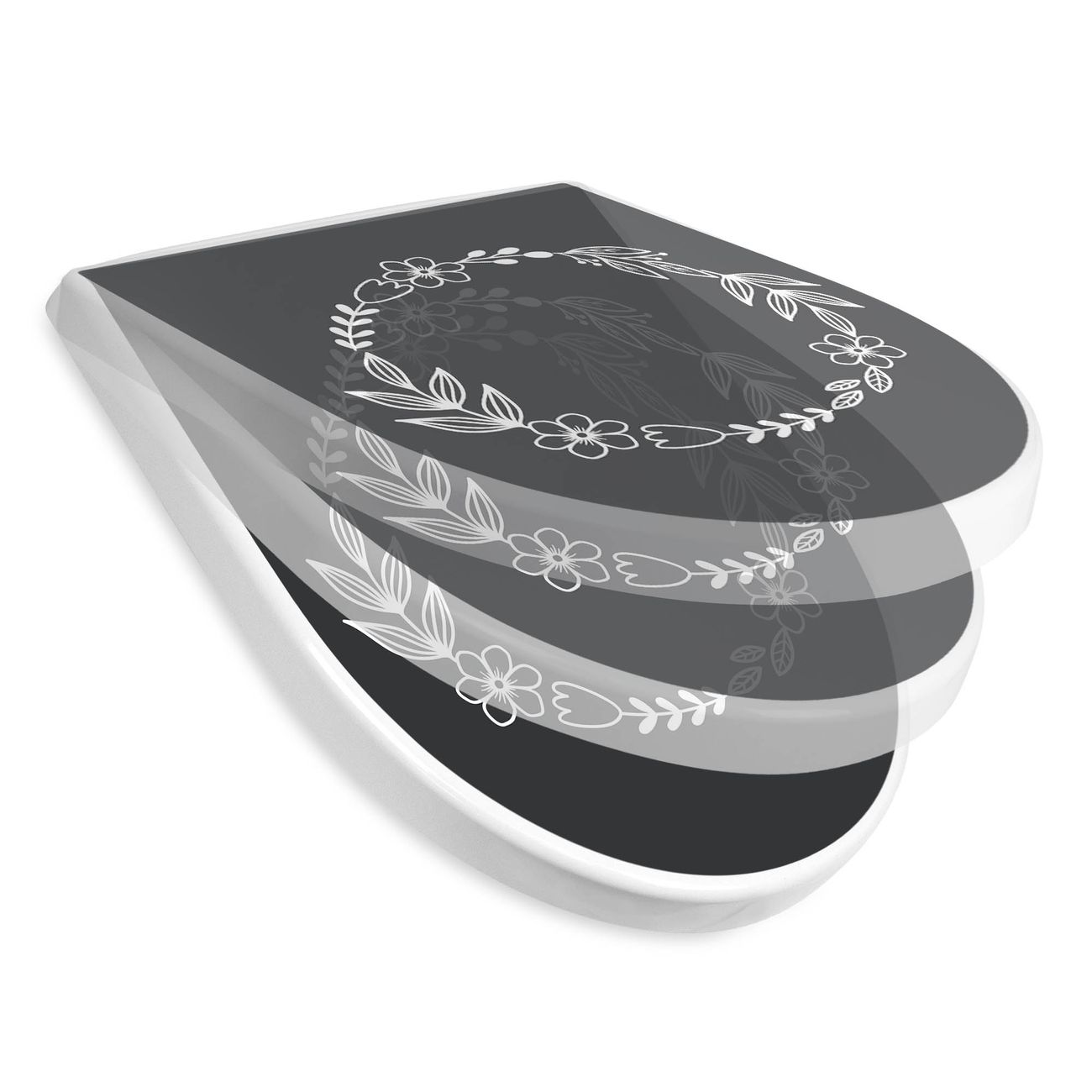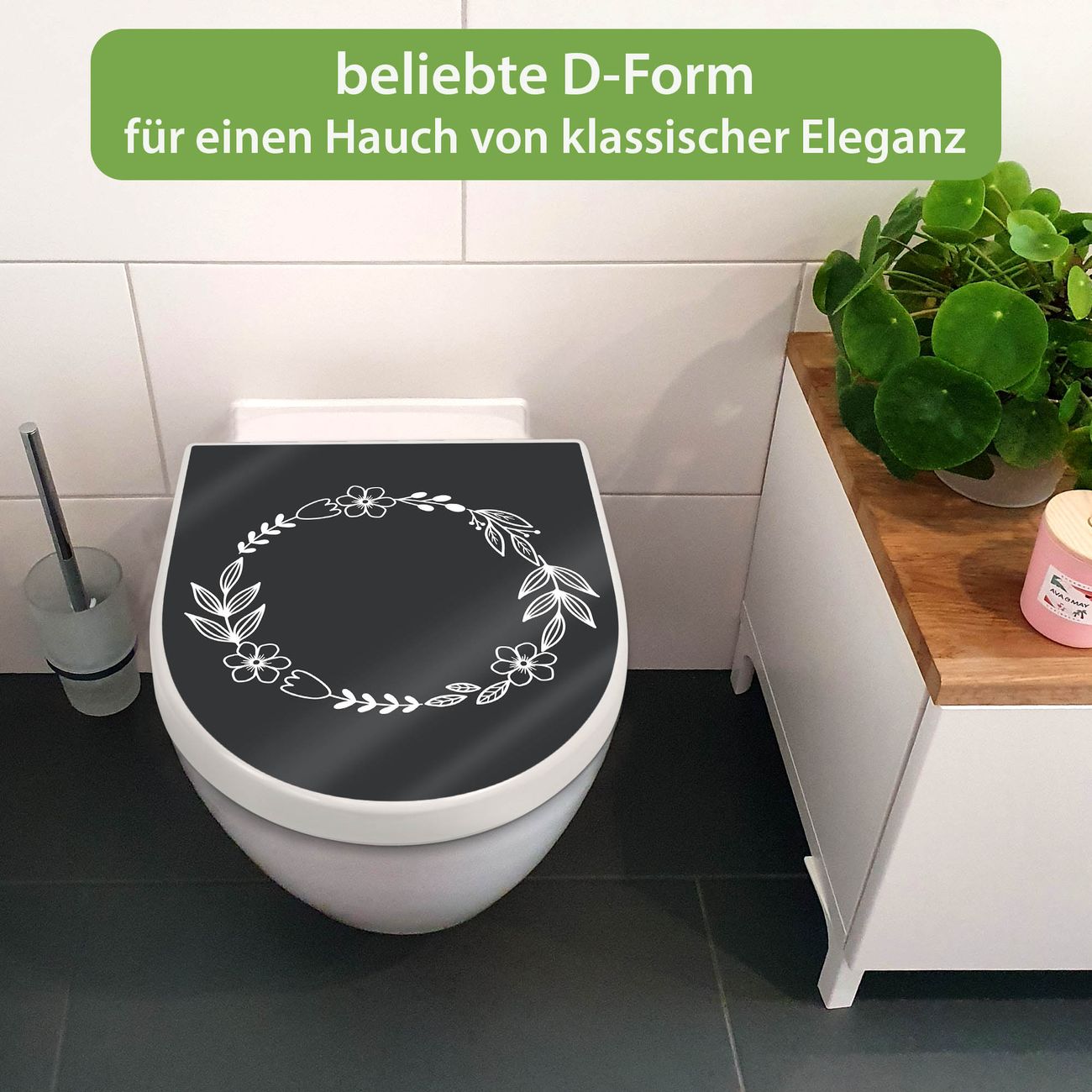 WC Sitz mit Absenkautomatik D Form Motiv Blütenkranz