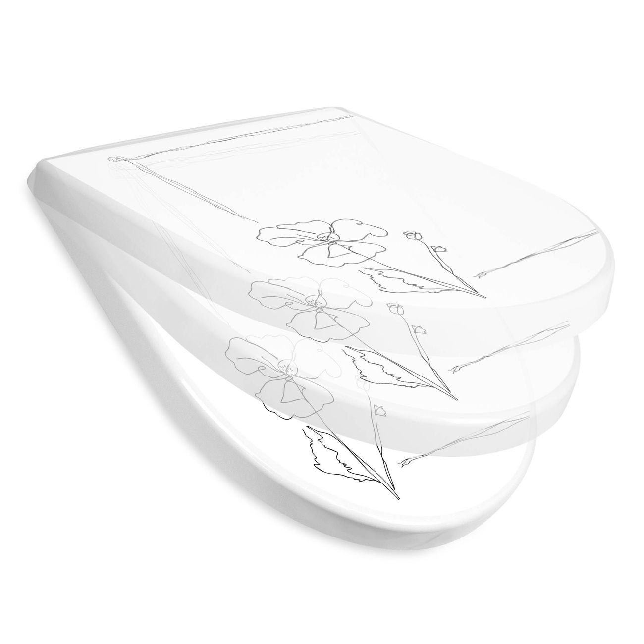WC Sitz mit Absenkautomatik D Form Motiv Blumenrahmen Skizze