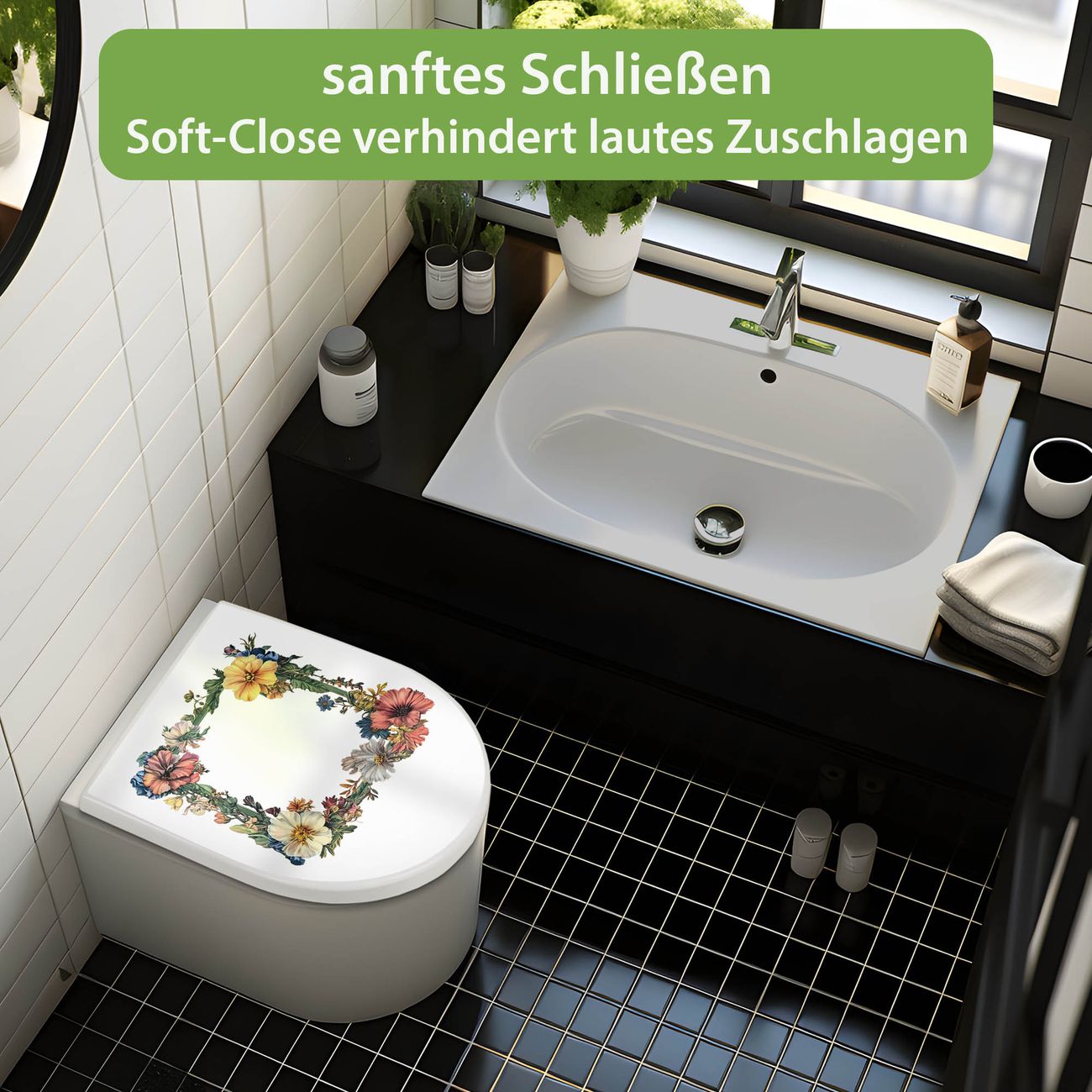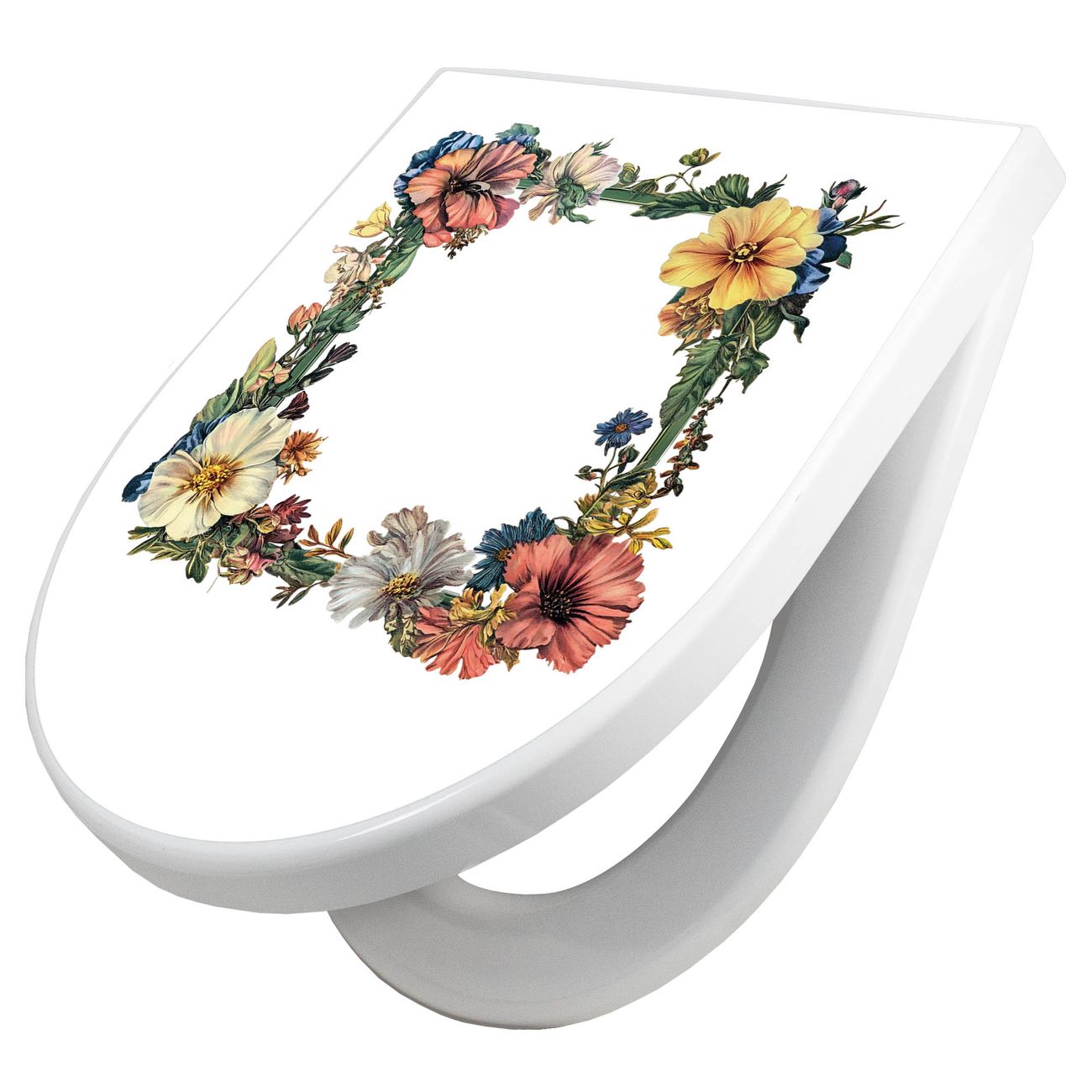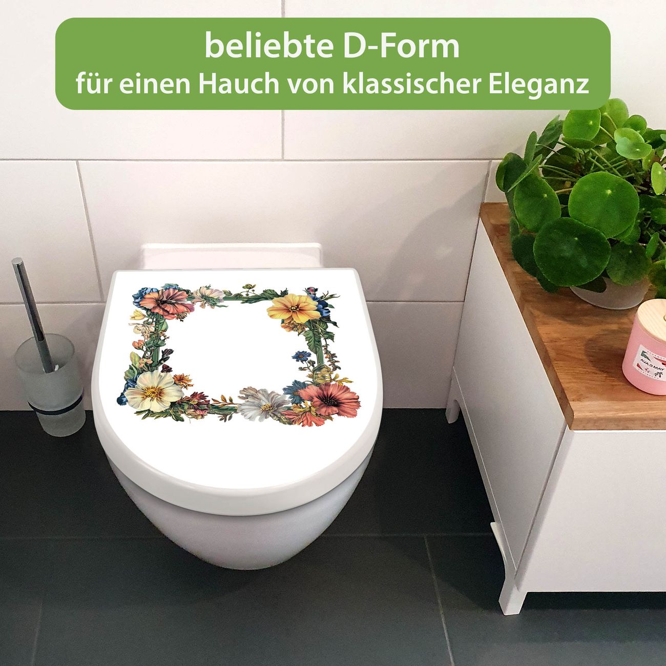 WC Sitz mit Absenkautomatik D Form Motiv Blumenrahmen