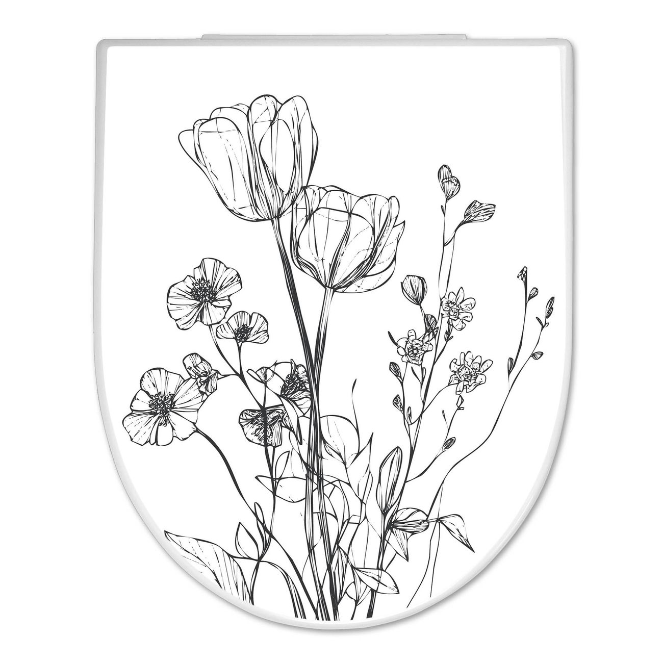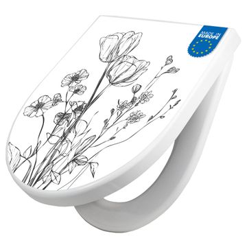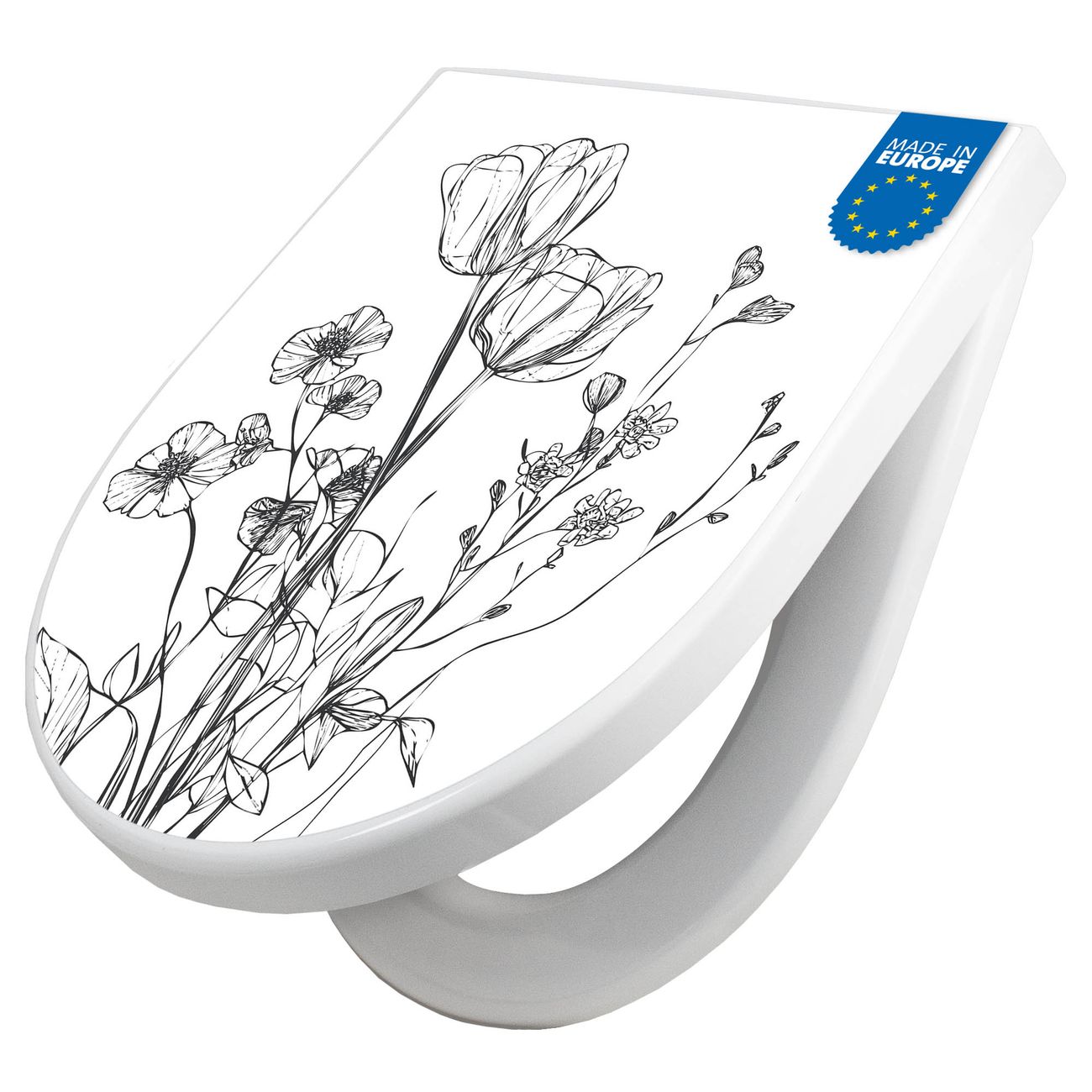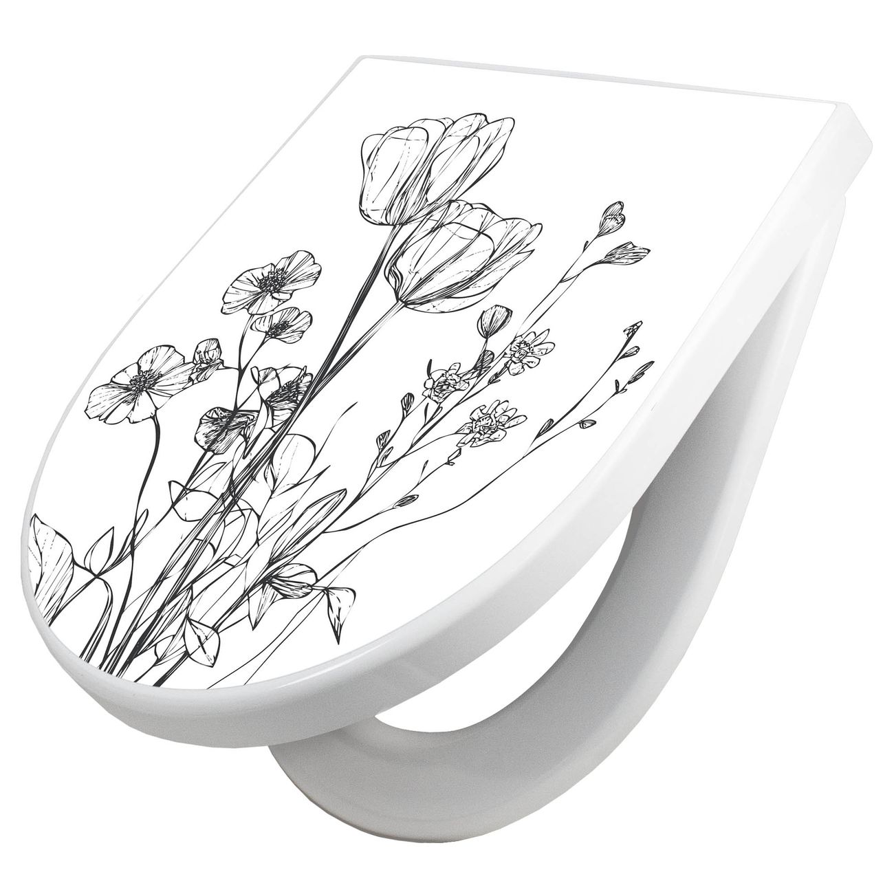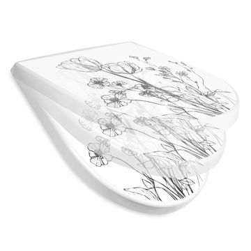 WC Sitz mit Absenkautomatik D Form Motiv Blumenskizze