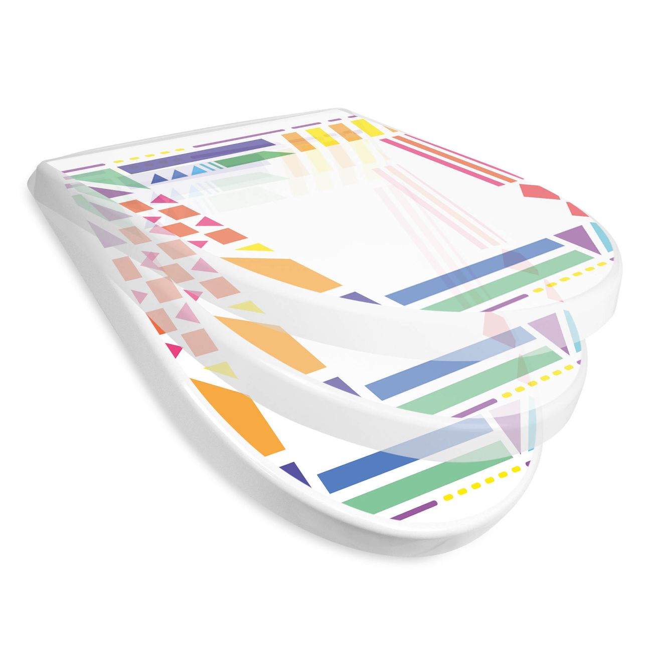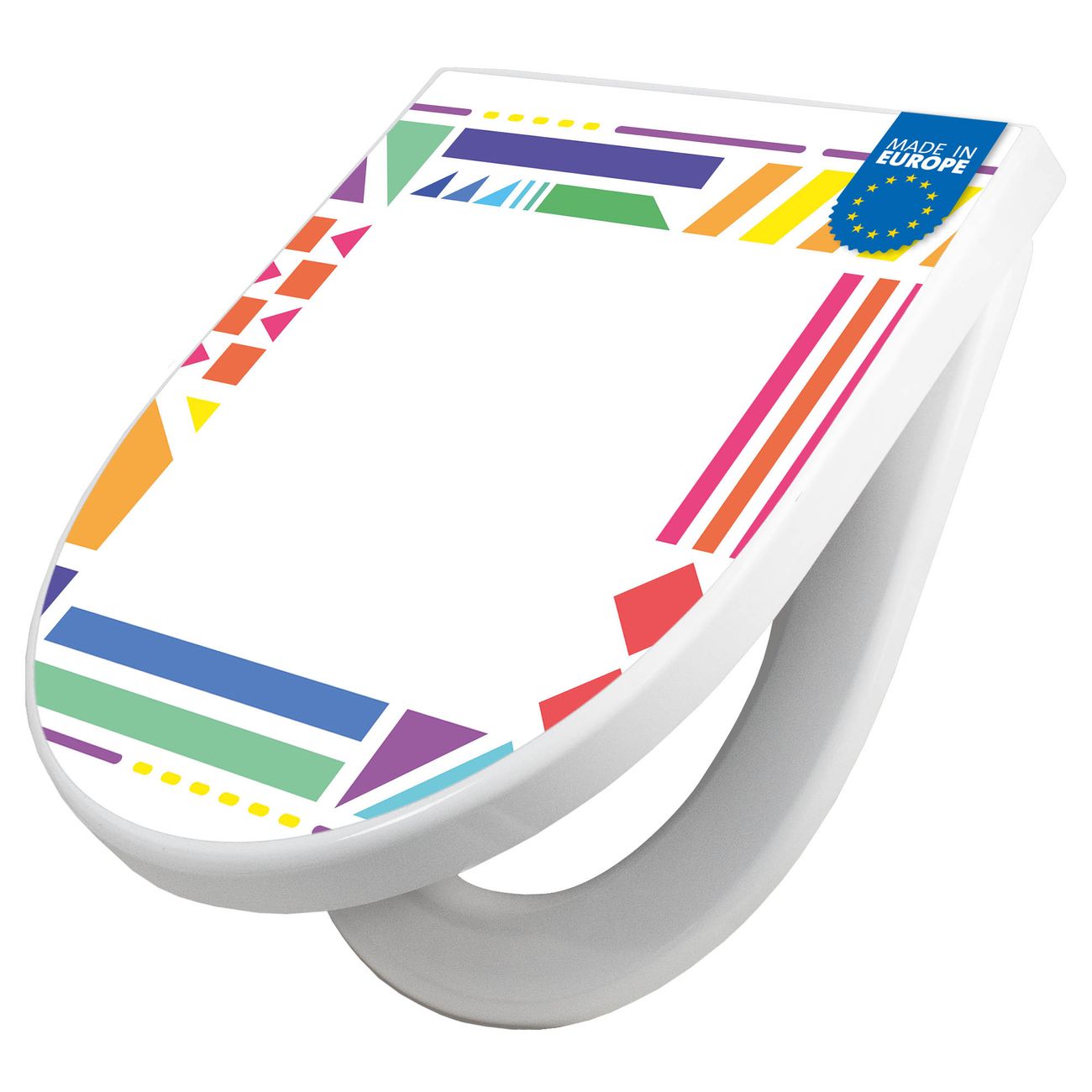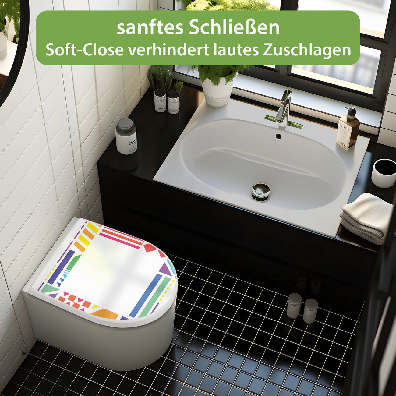 WC Sitz mit Absenkautomatik D Form Motiv Bunter Geometrischer Rahmen 2