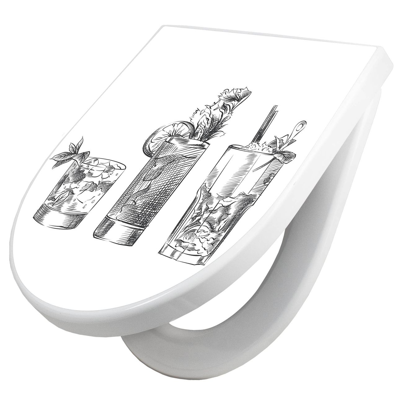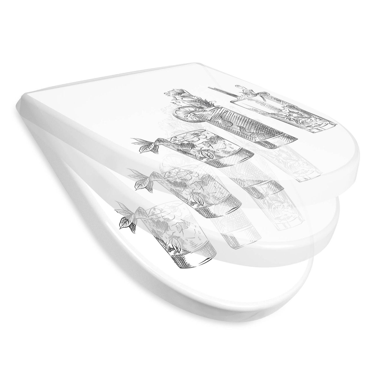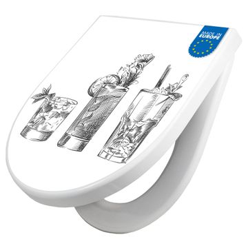 WC Sitz mit Absenkautomatik D Form Motiv Cocktail Skizzen