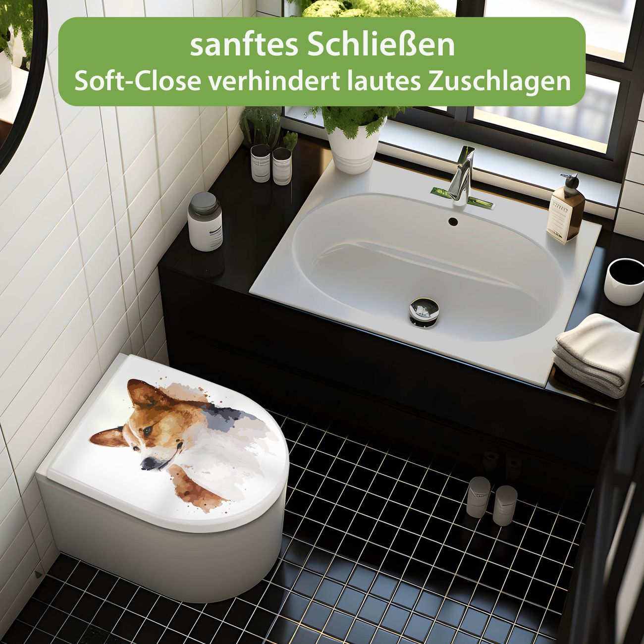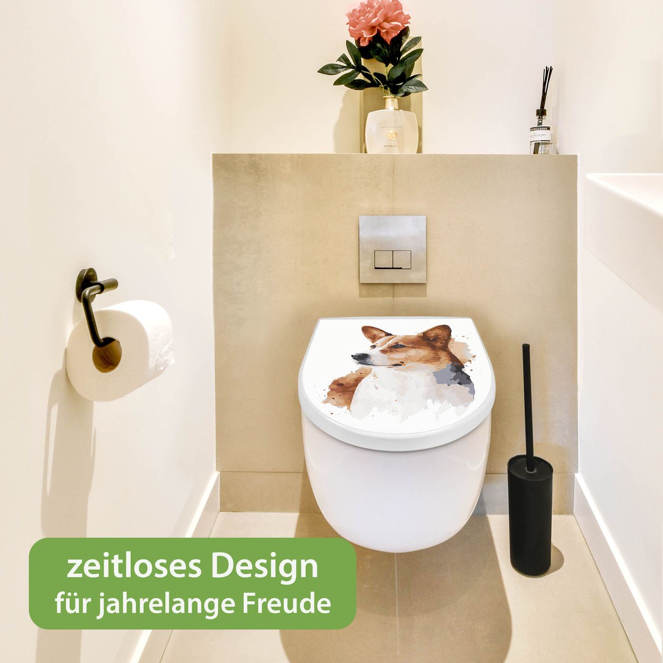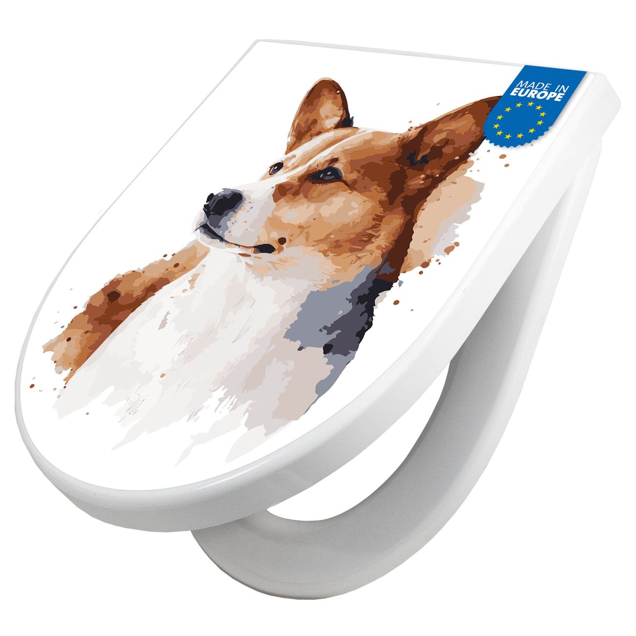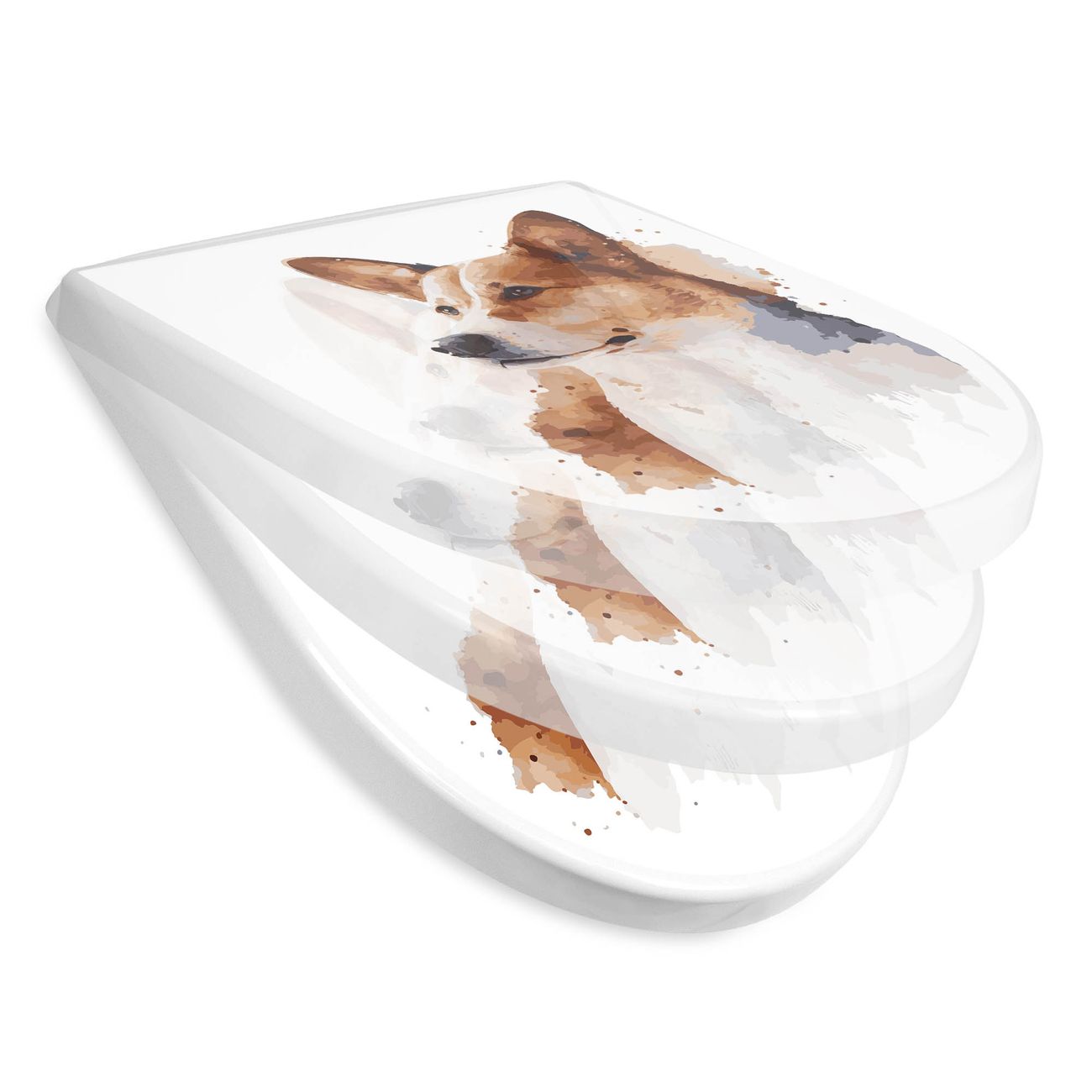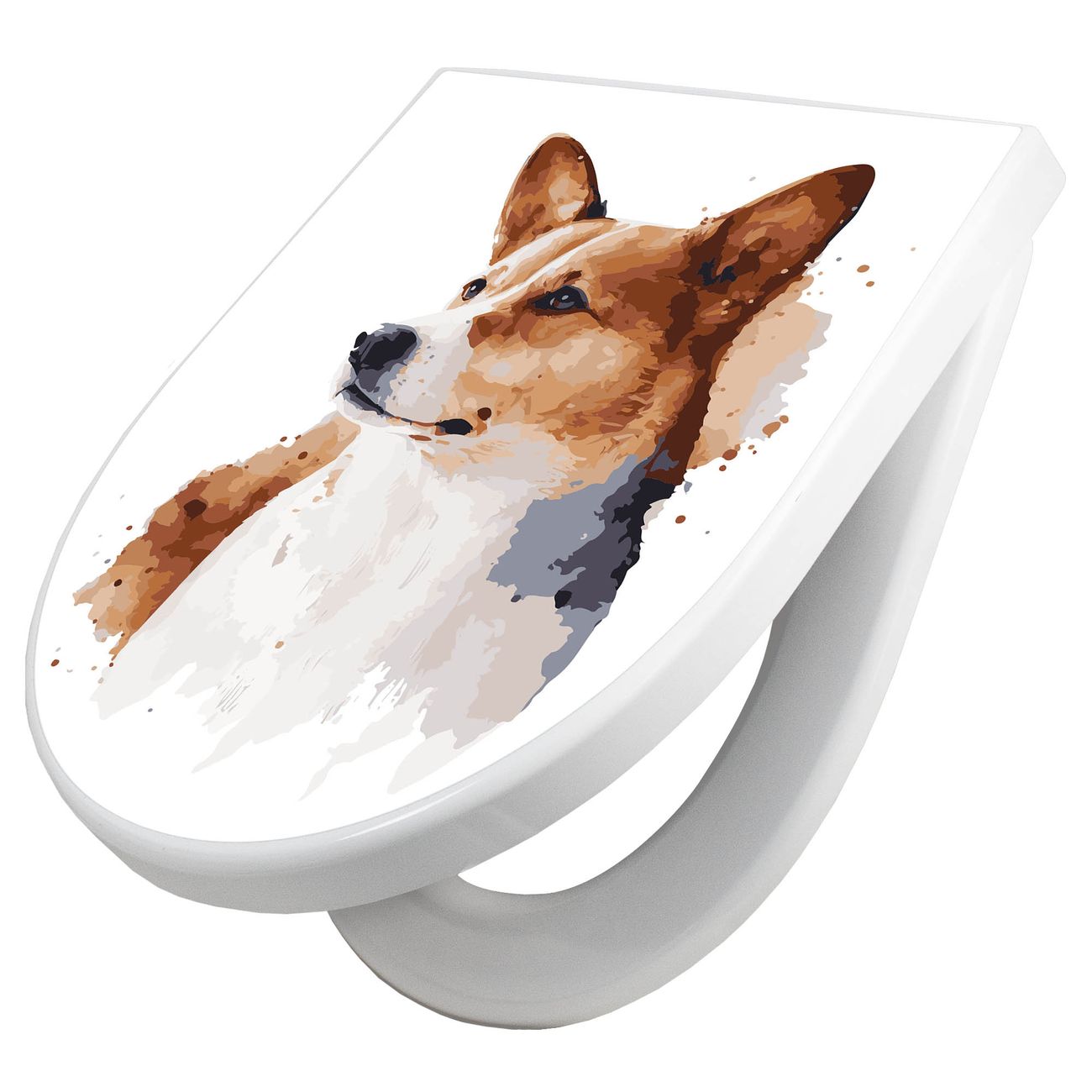 WC Sitz mit Absenkautomatik D Form Motiv Corgi Porträt Aquarell