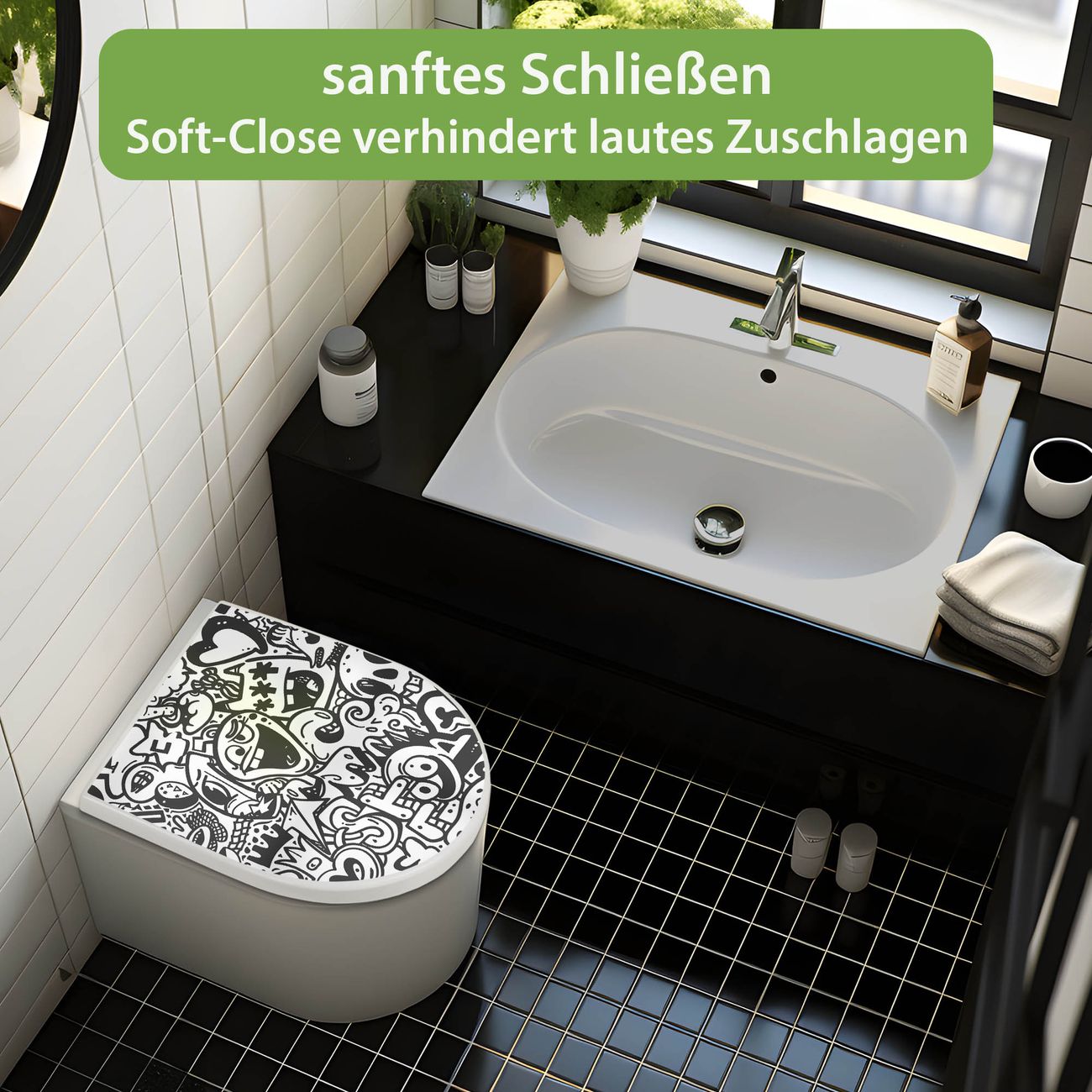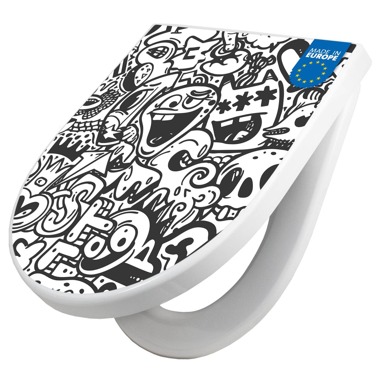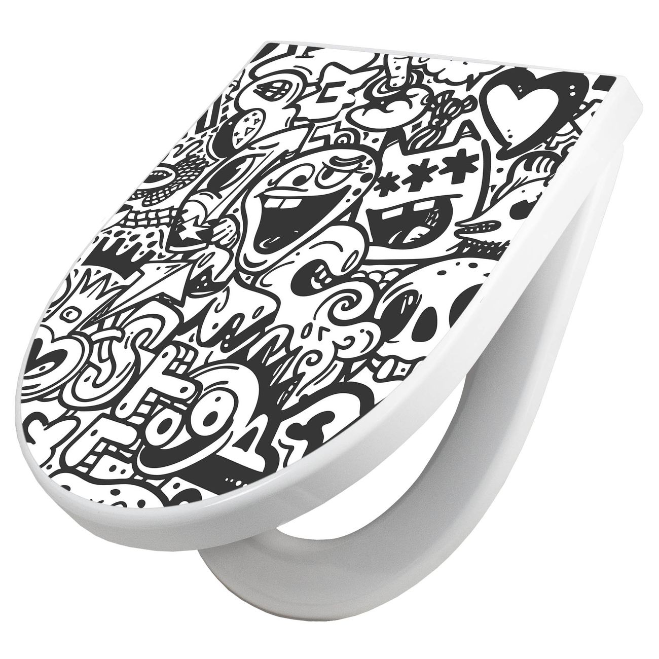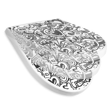 WC Sitz mit Absenkautomatik D Form Motiv Doodle Verrückt
