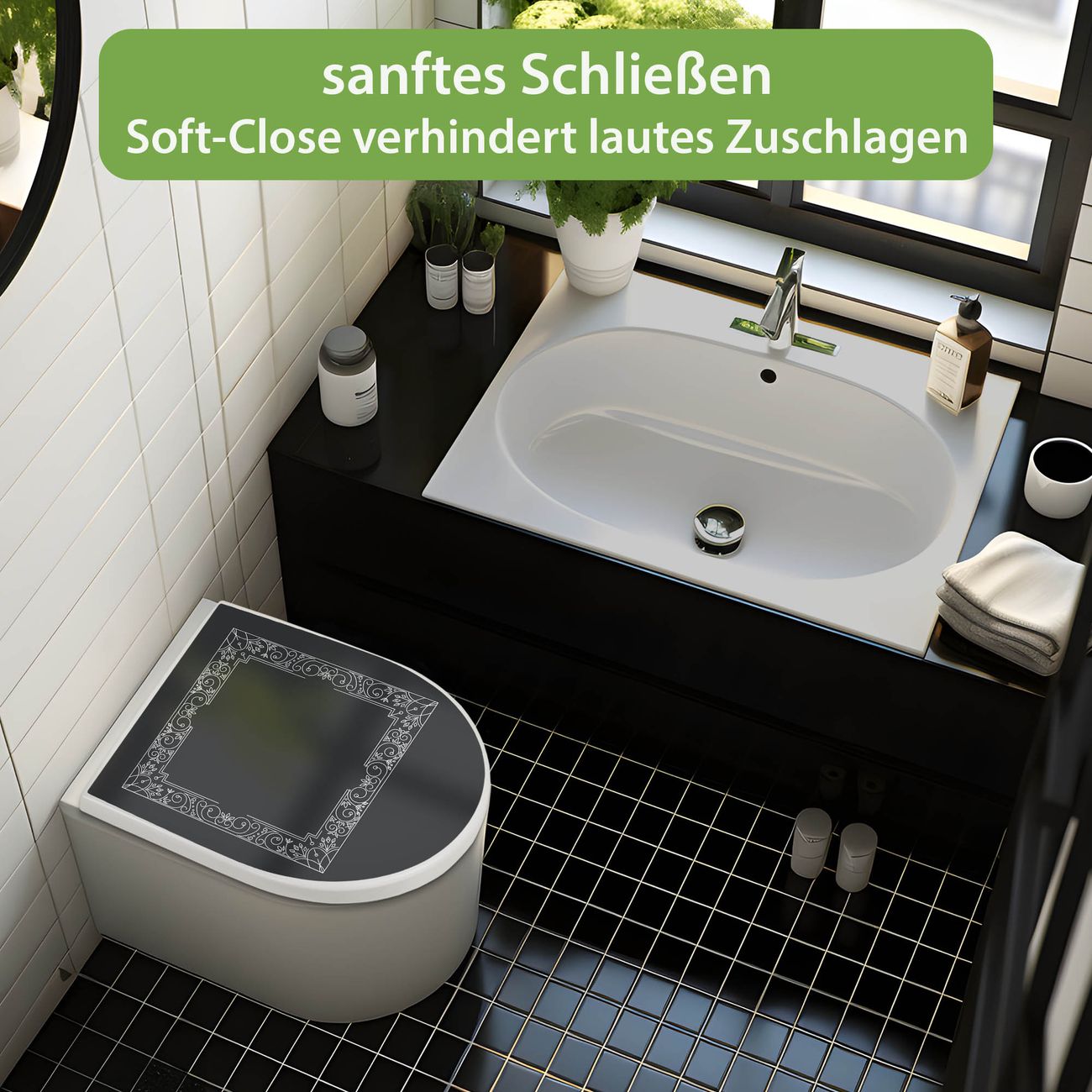 WC Sitz mit Absenkautomatik D Form Motiv Elegantes Ornament