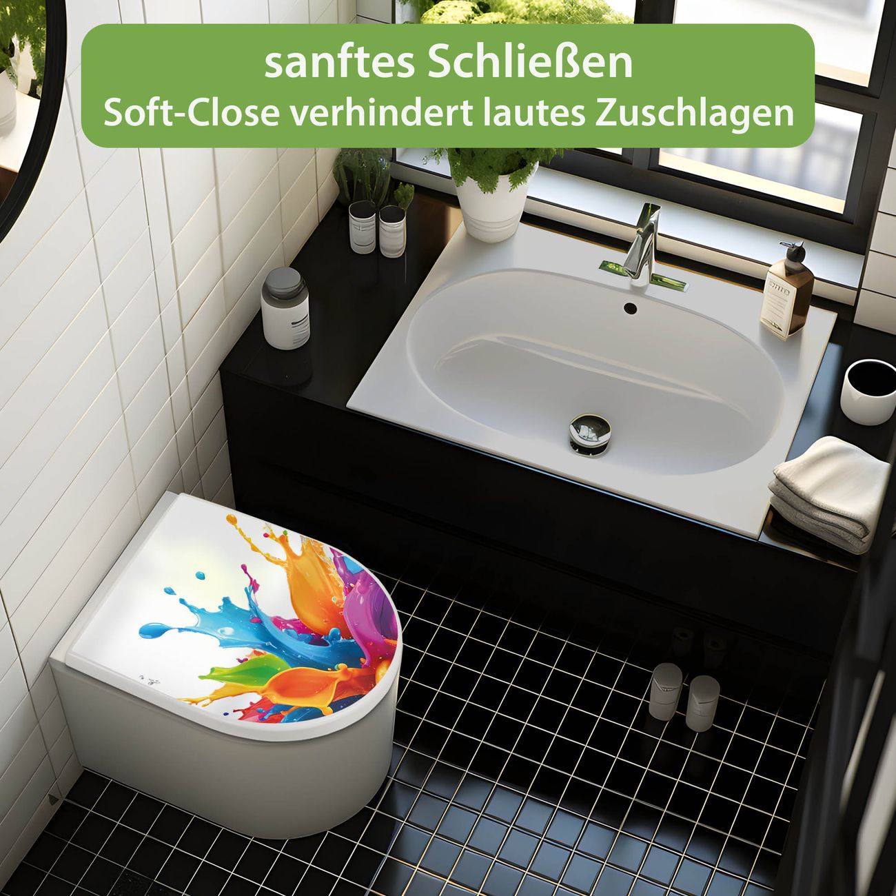 WC Sitz mit Absenkautomatik D Form Motiv Farbspritzer-Explosion