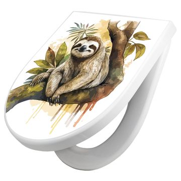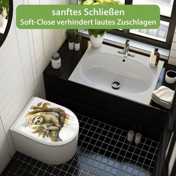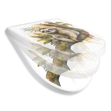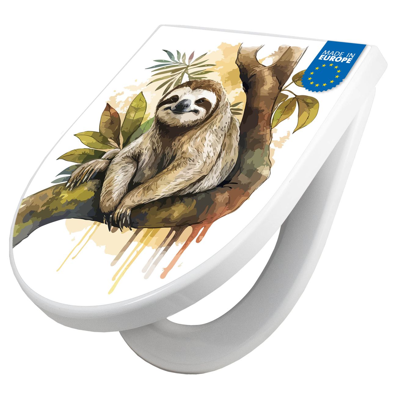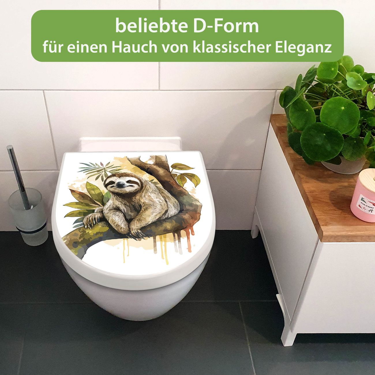 WC Sitz mit Absenkautomatik D Form Motiv Faultier mit Blütenmähne