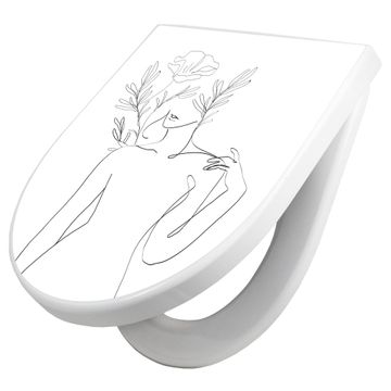 WC Sitz mit Absenkautomatik D Form Motiv Feminin Floral Lineart 2