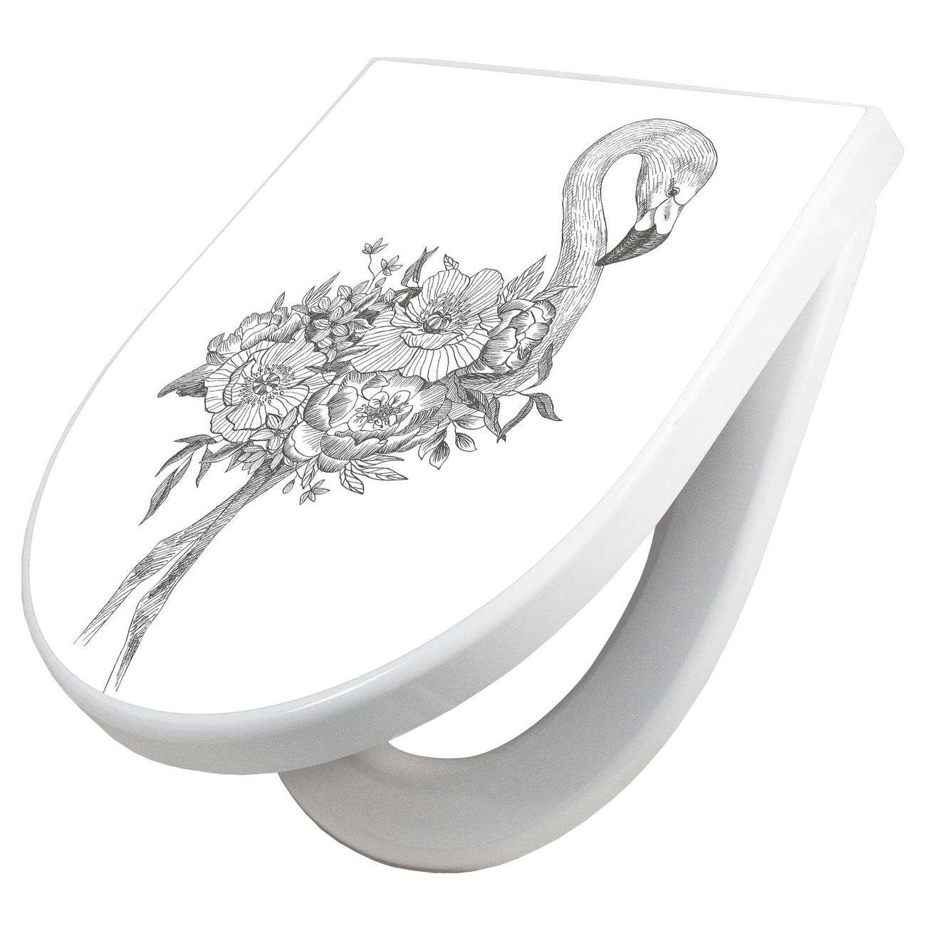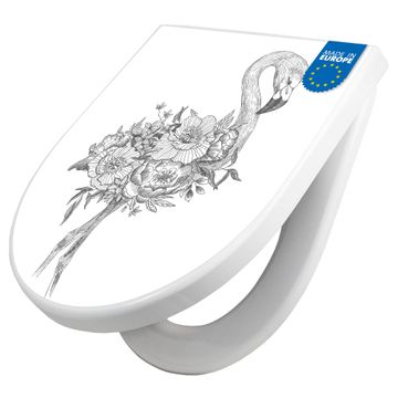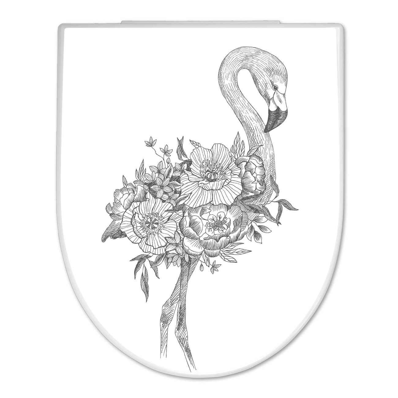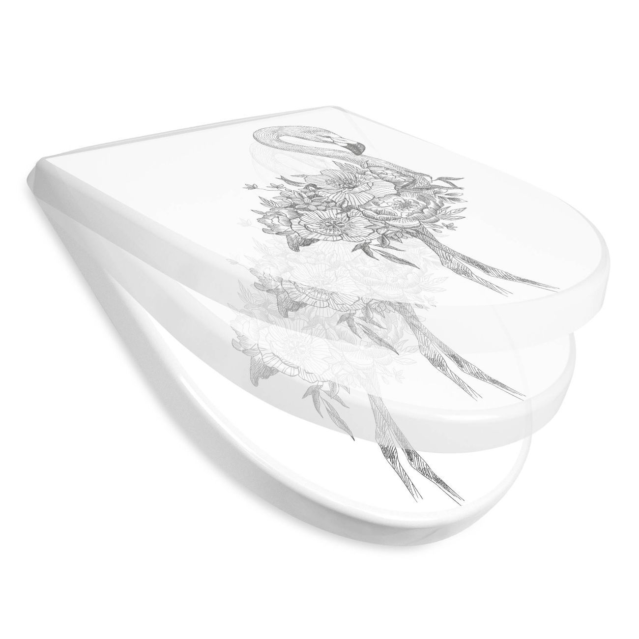 WC Sitz mit Absenkautomatik D Form Motiv Flamingo Blumen 2