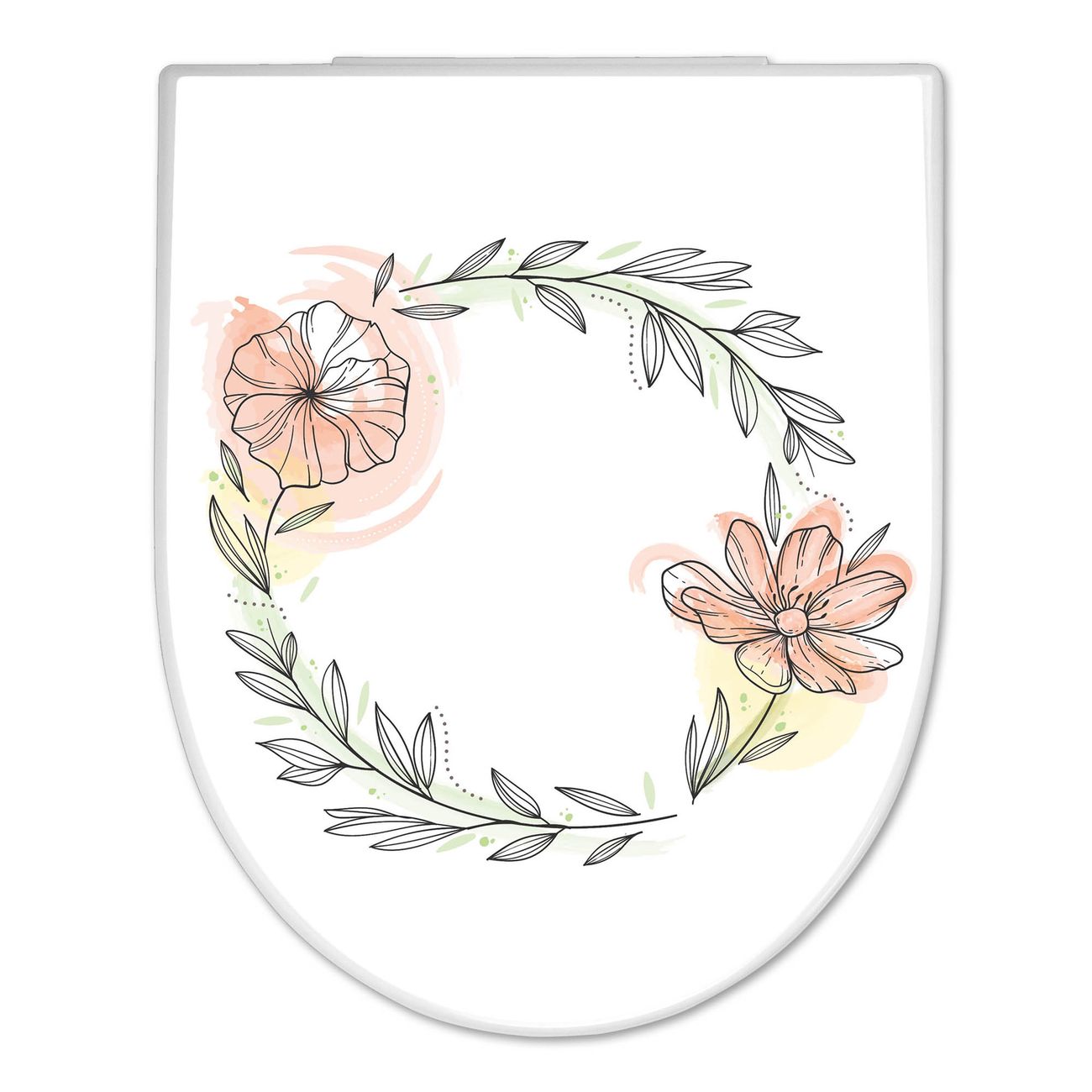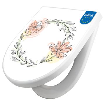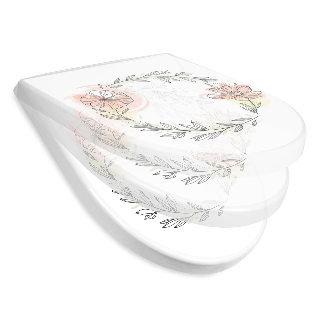 WC Sitz mit Absenkautomatik D Form Motiv Floraler Blütenkranz