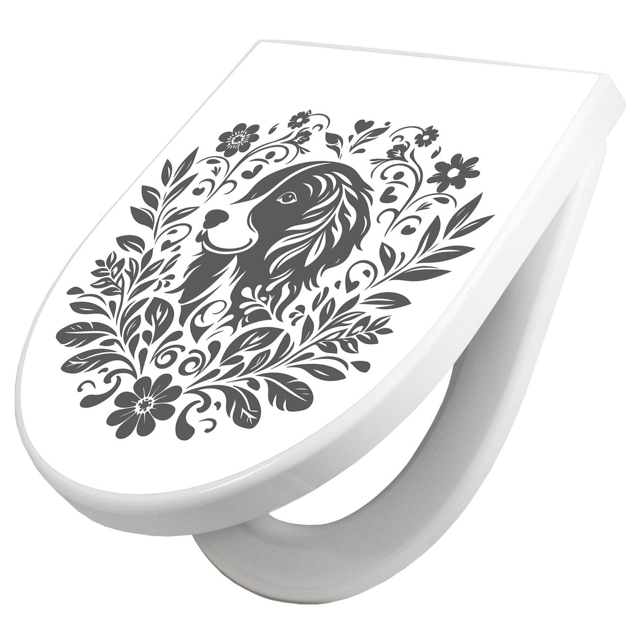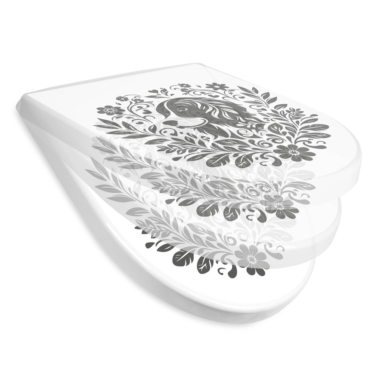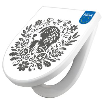 WC Sitz mit Absenkautomatik D Form Motiv Floraler Hund