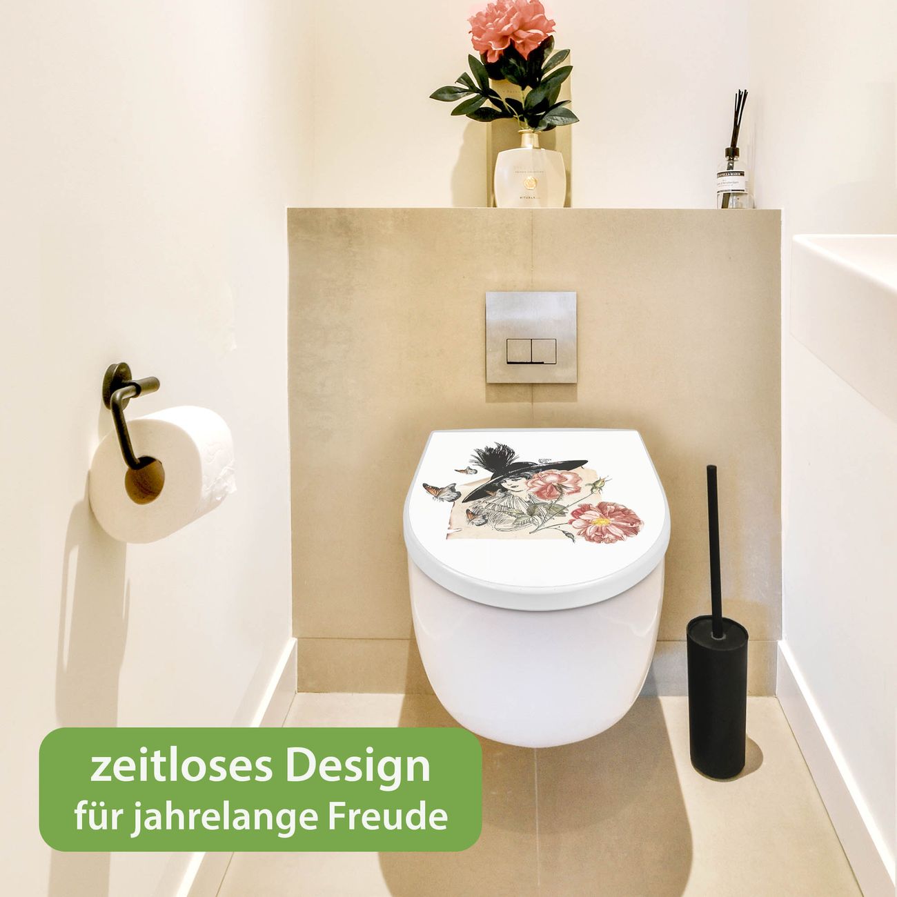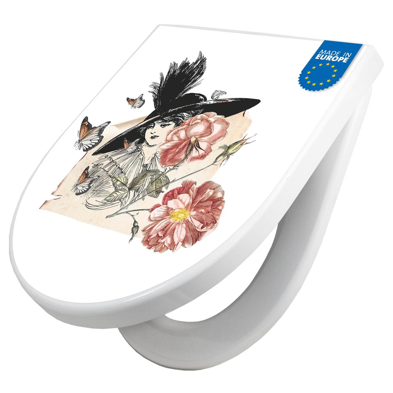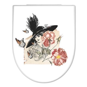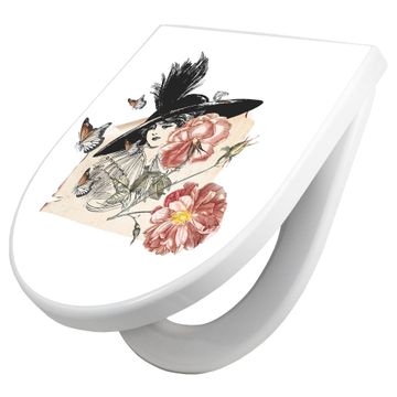 WC Sitz mit Absenkautomatik D Form Motiv Frau und Blühten Vintage