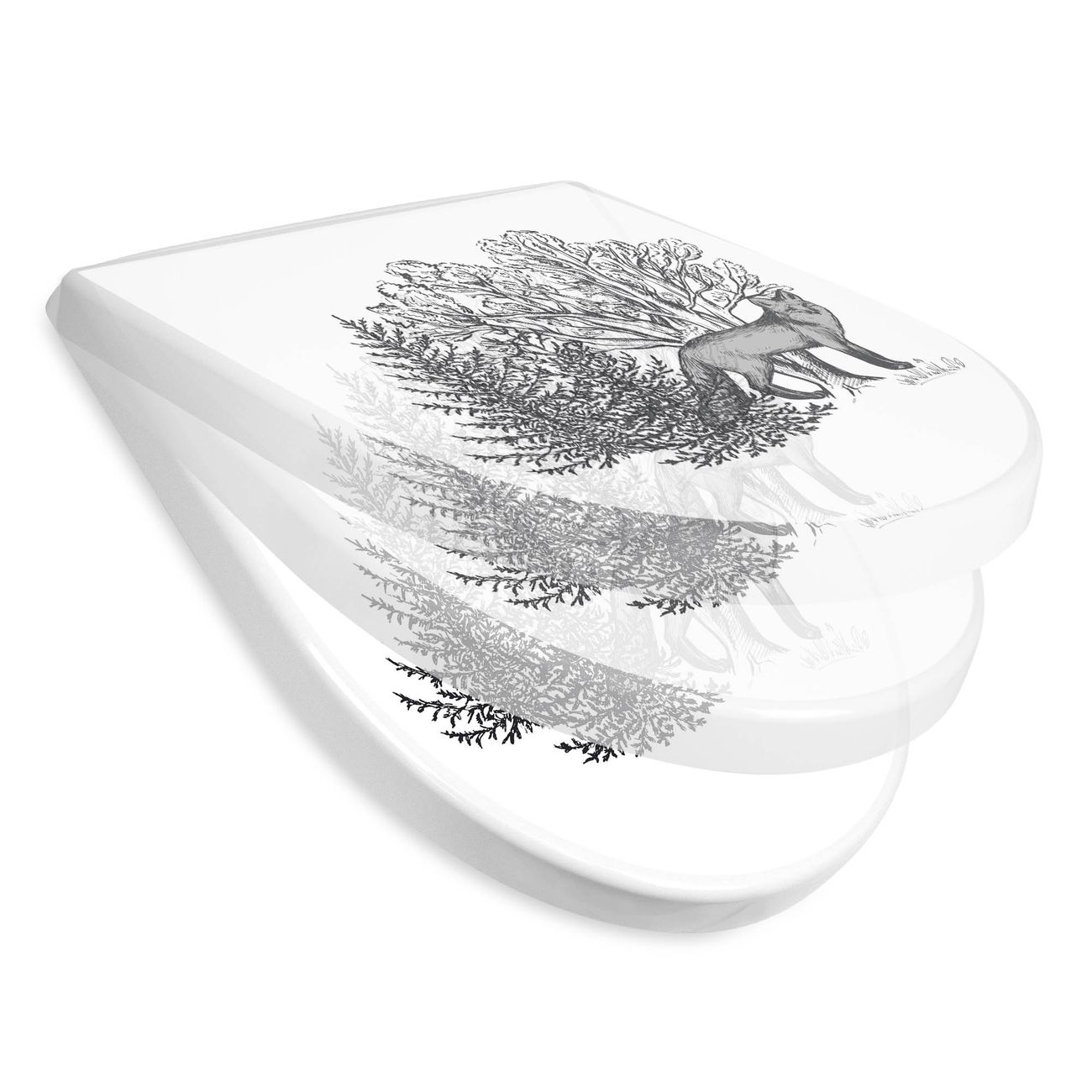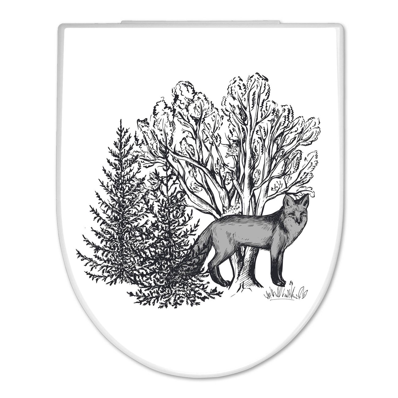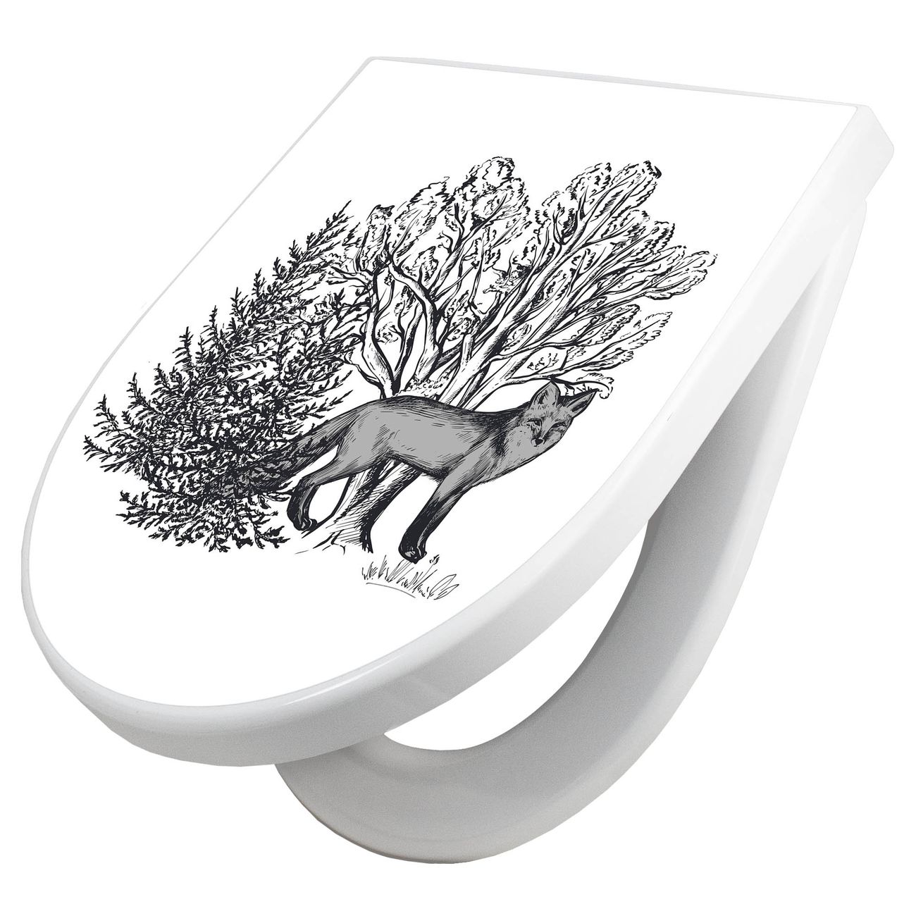 WC Sitz mit Absenkautomatik D Form Motiv Fuchs in Schwarz-Weiß