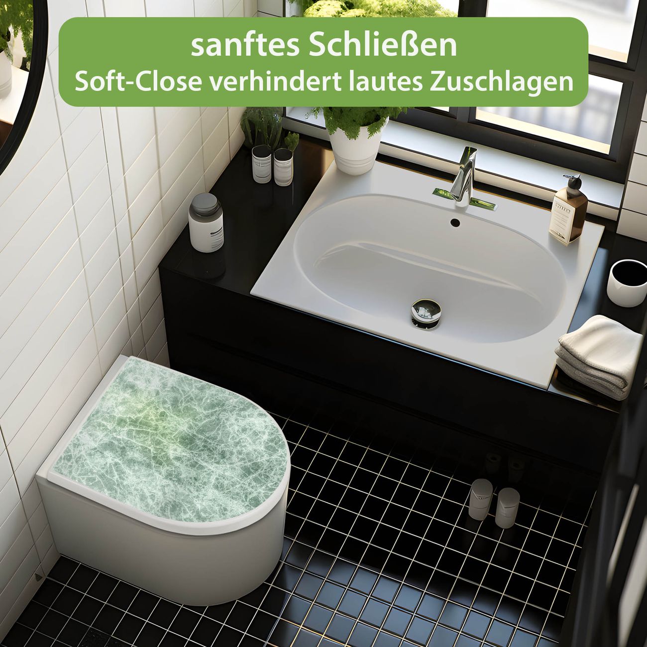 WC Sitz mit Absenkautomatik D Form Motiv Grüner Marmor 1