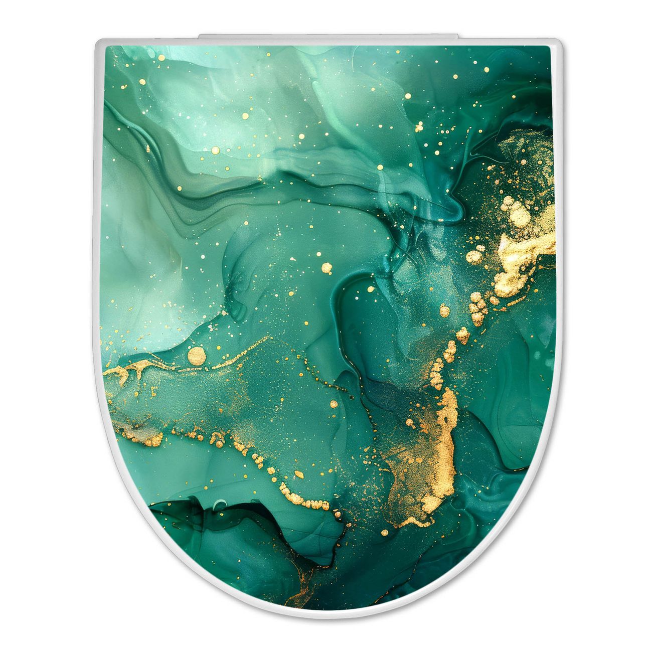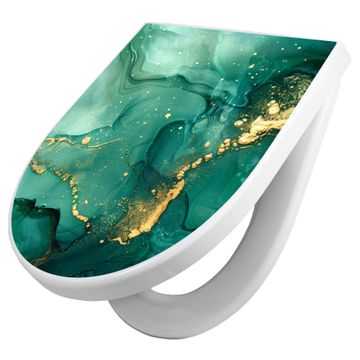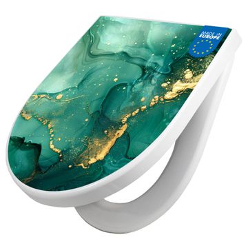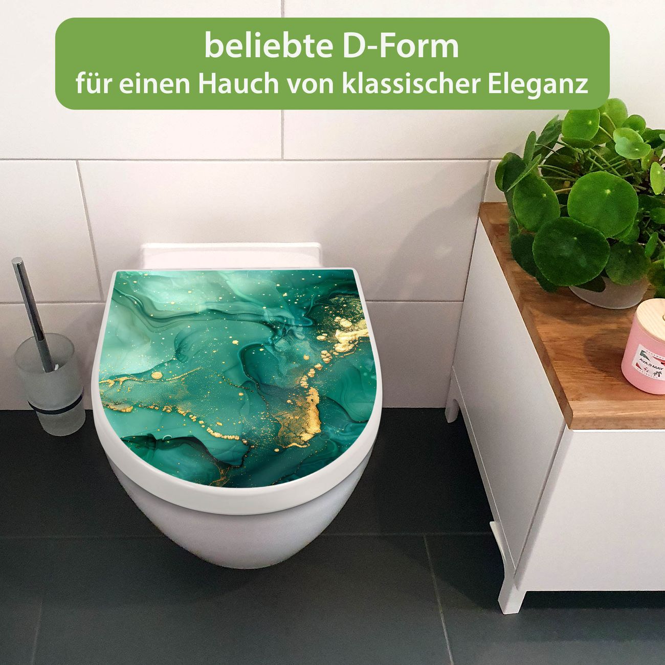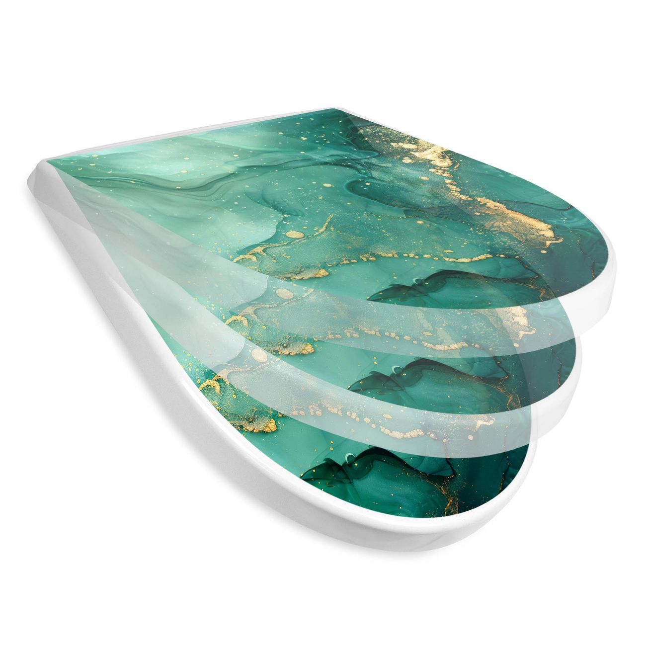 WC Sitz mit Absenkautomatik D Form Motiv Grüner Marmor mit Gold 1