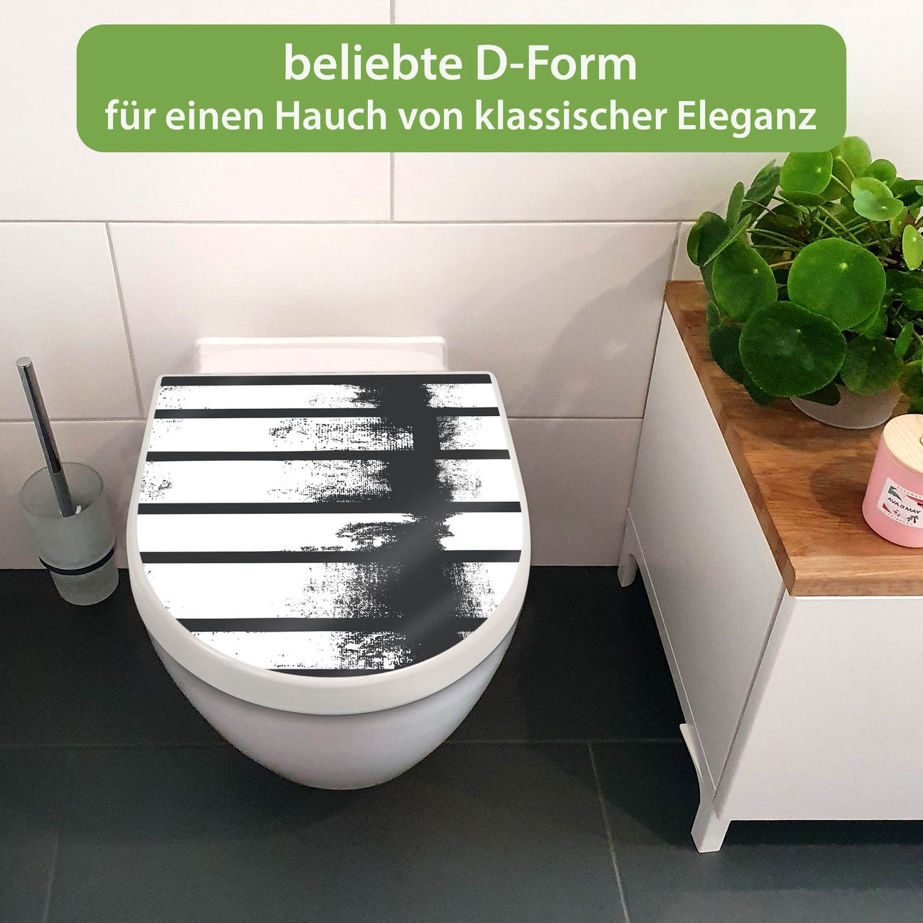 WC Sitz mit Absenkautomatik D Form Motiv Grunge Streifen