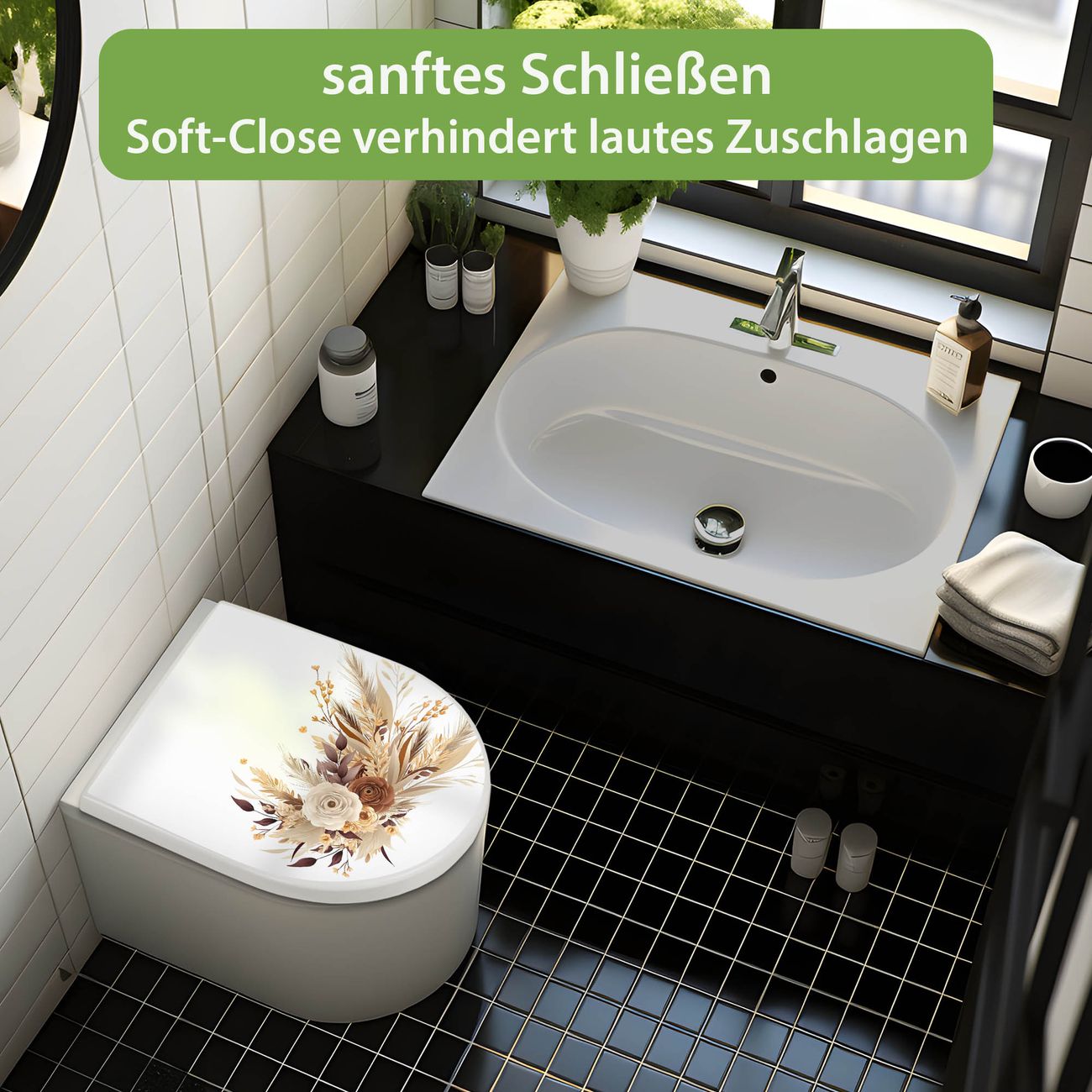 WC Sitz mit Absenkautomatik D Form Motiv Herbstlicher Blumenstrauß