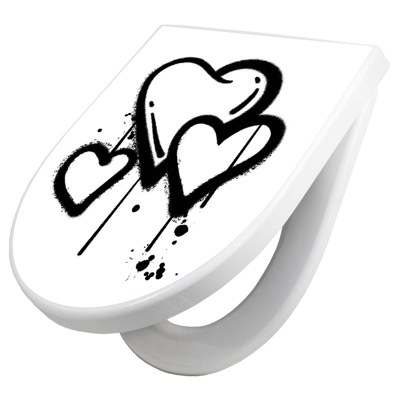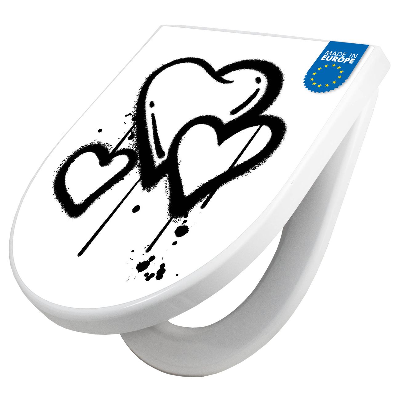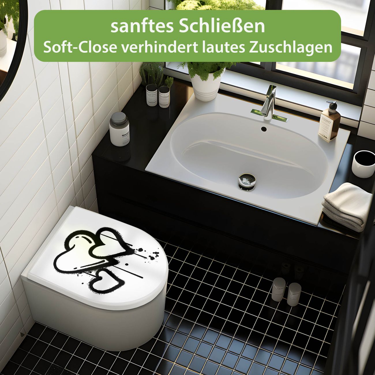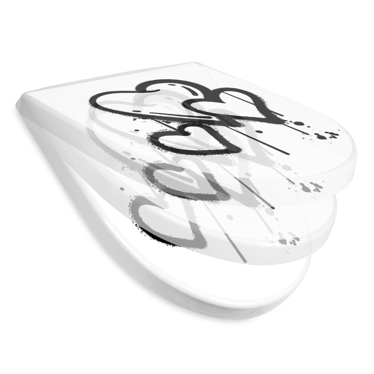 WC Sitz mit Absenkautomatik D Form Motiv Herzen Graffiti