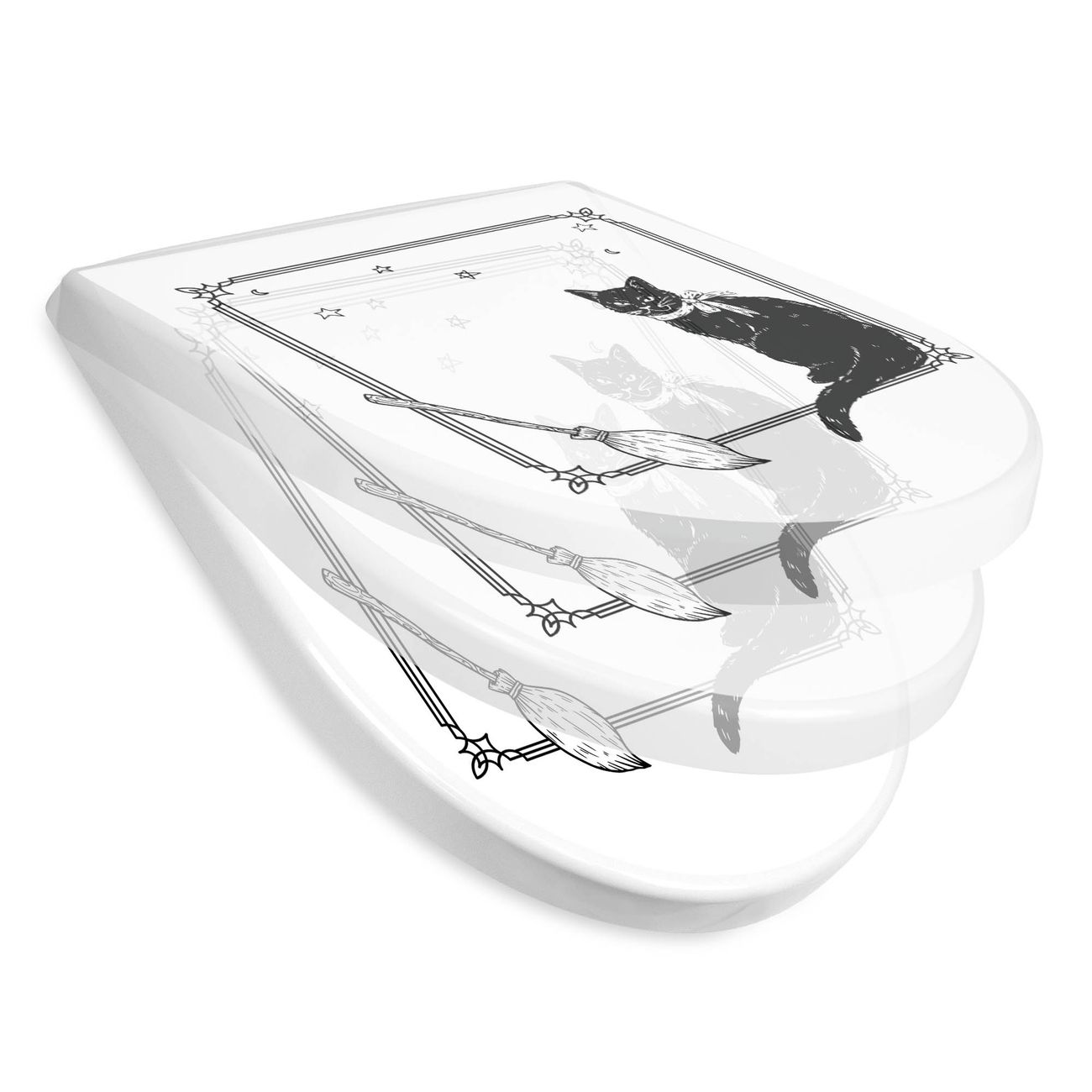 WC Sitz mit Absenkautomatik D Form Motiv Hexen und Kater