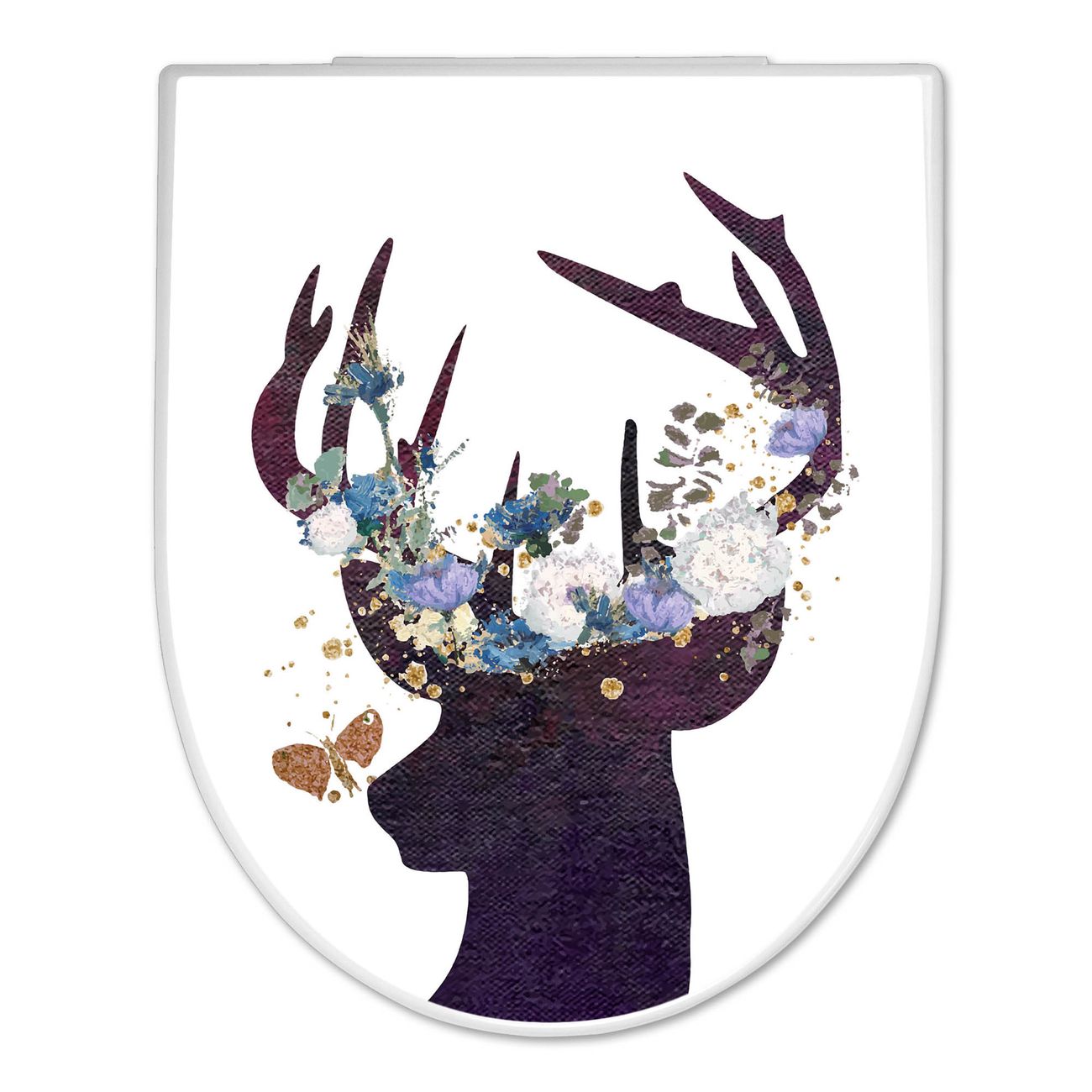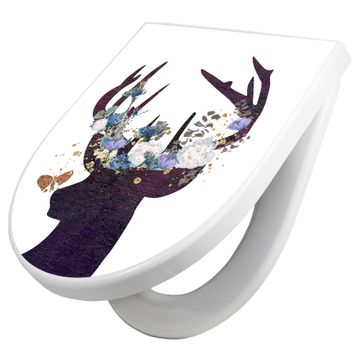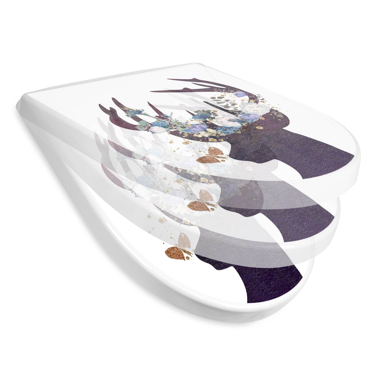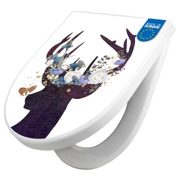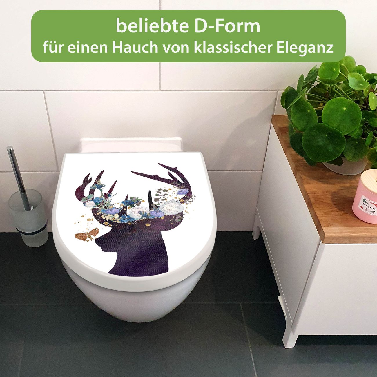 WC Sitz mit Absenkautomatik D Form Motiv Hirsch Blumengeweih