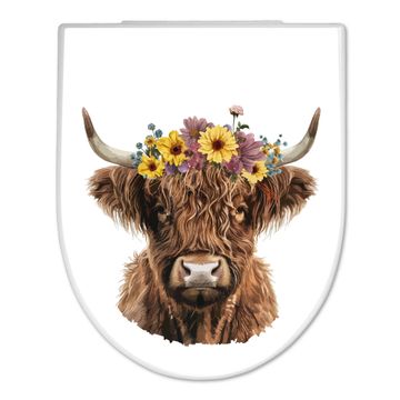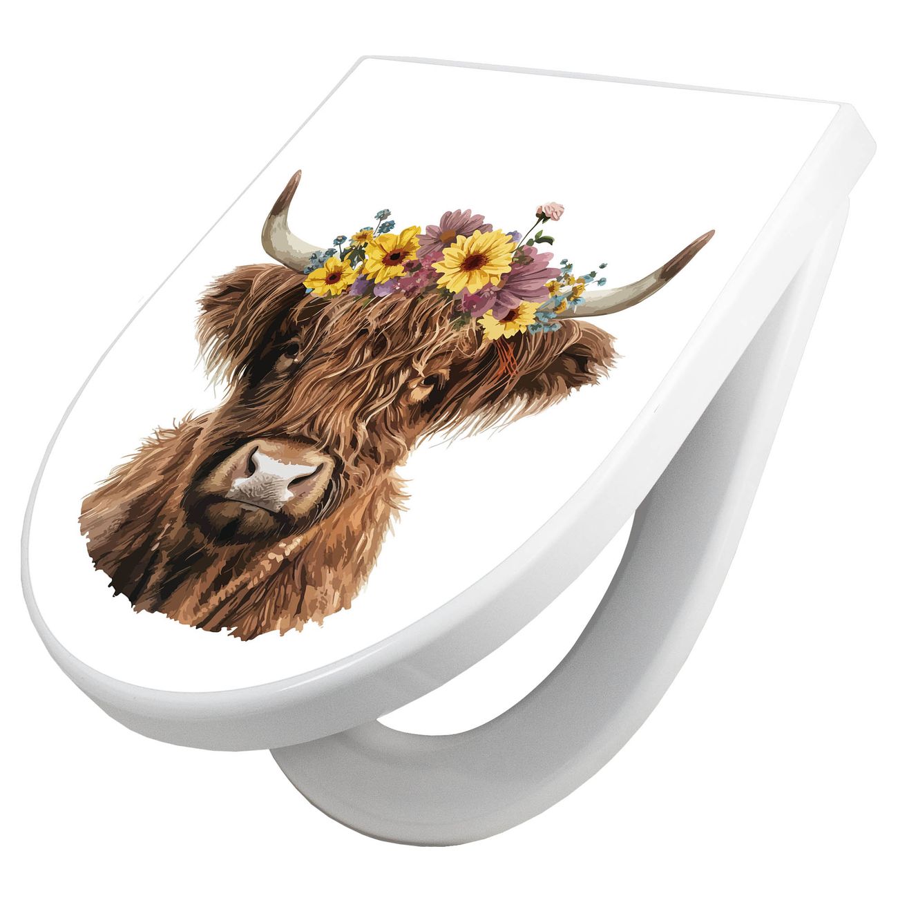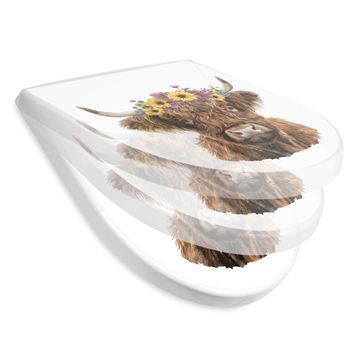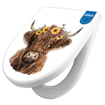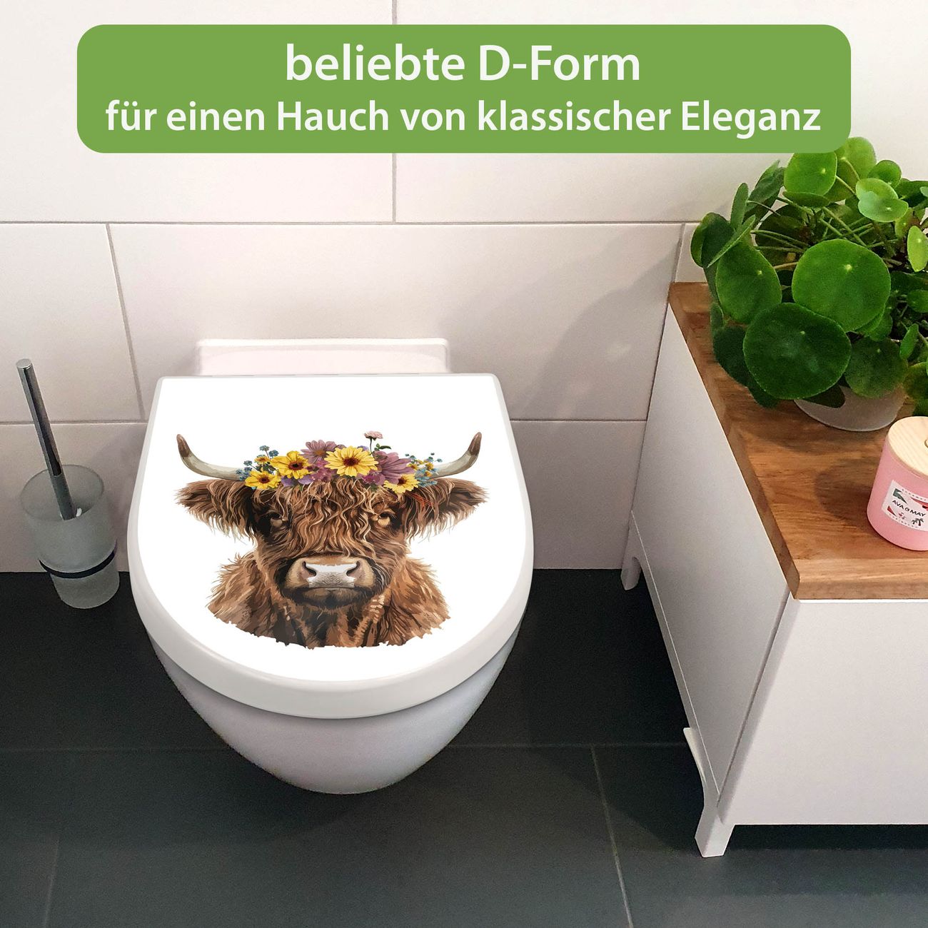 WC Sitz mit Absenkautomatik D Form Motiv Hochlandkuh mit Blumenkrone